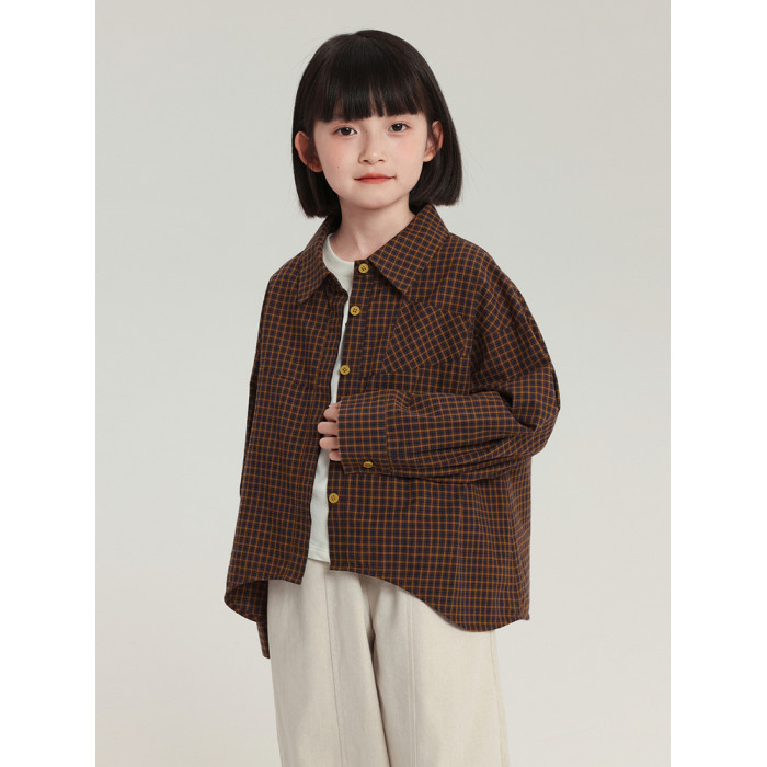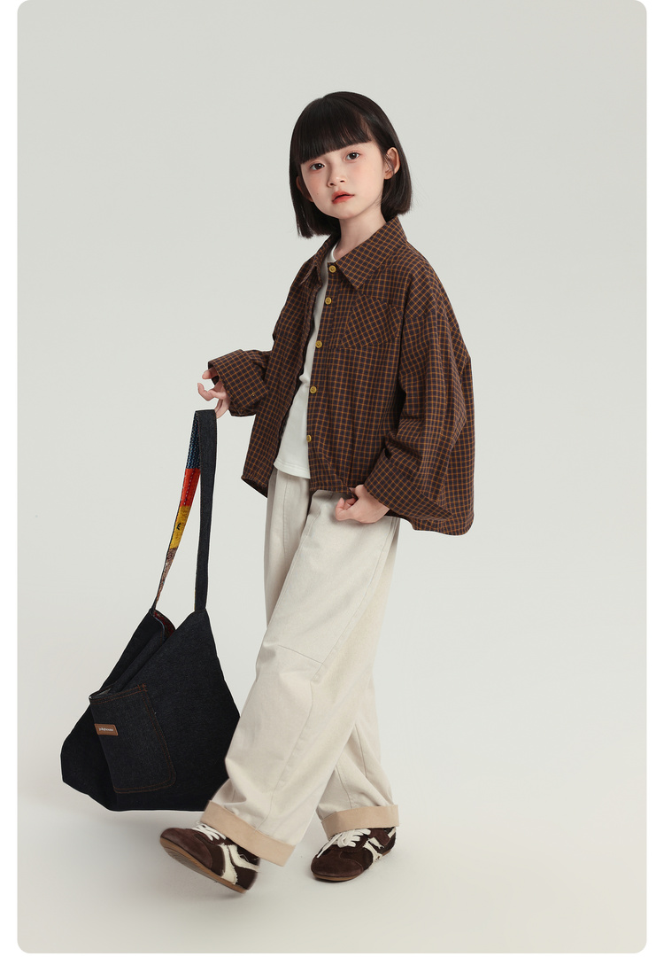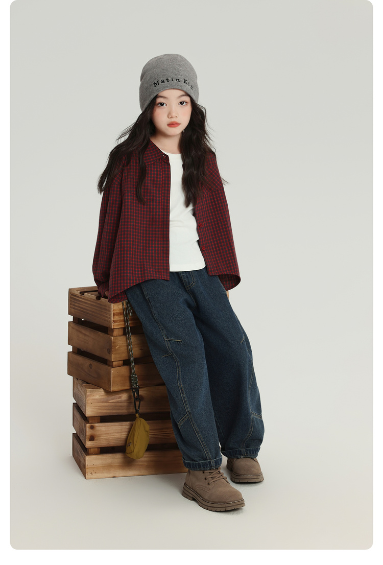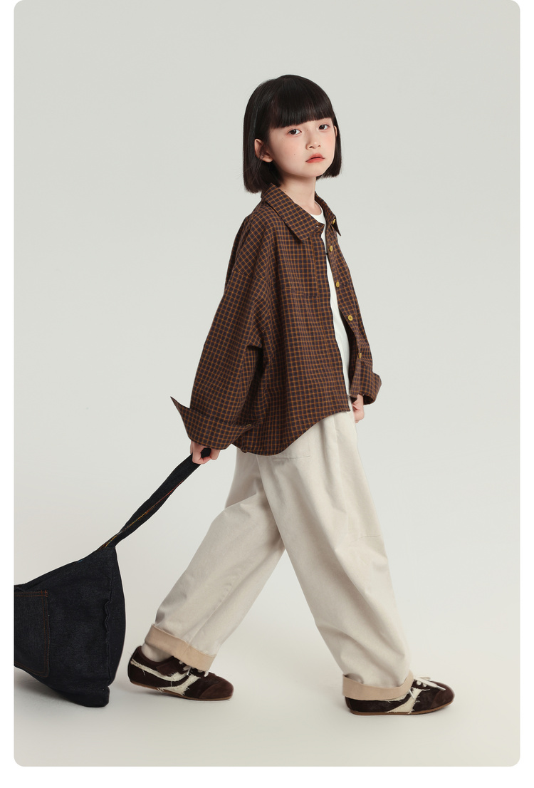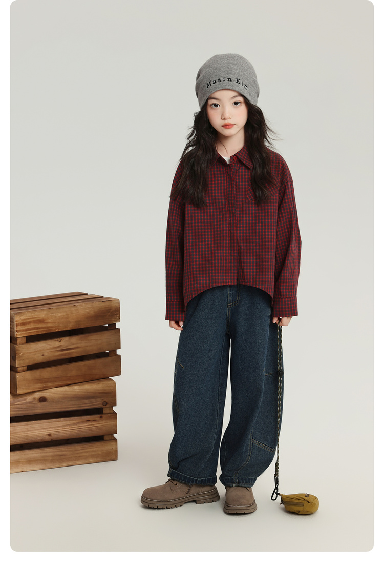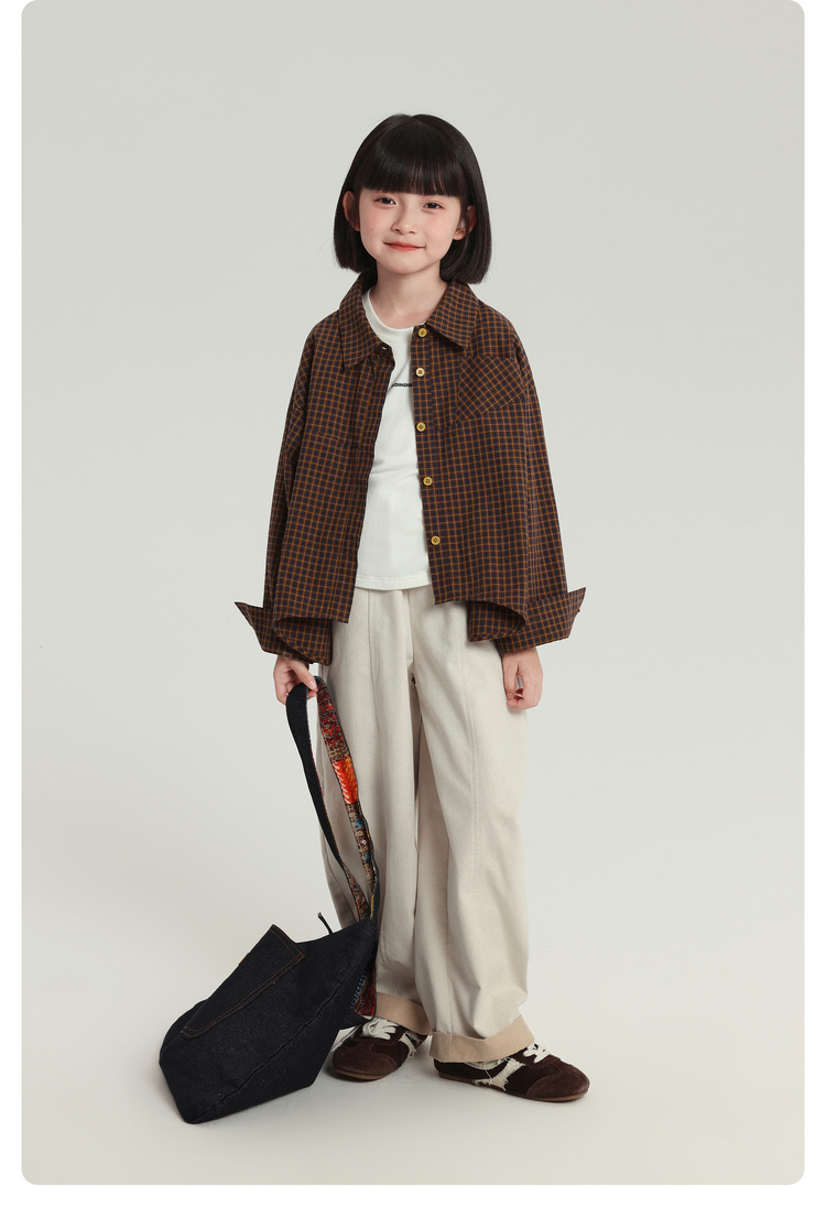 布丁哈魯春秋女童韓系外套2025秋裝新款兒童洋氣紅色格紋襯衫