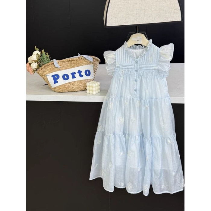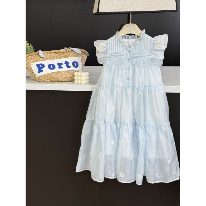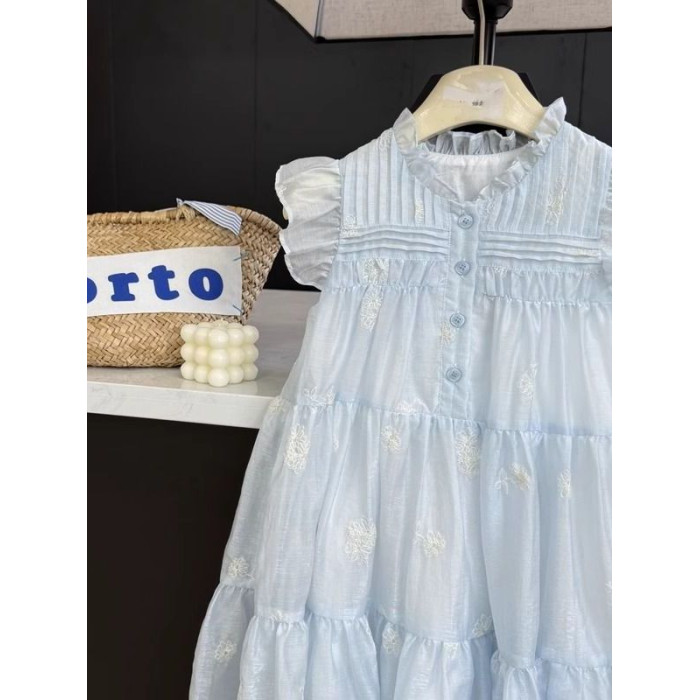 女童連衣裙夏季2025新款兒童裙子女大童女孩夏裝公主超仙薄款飛袖