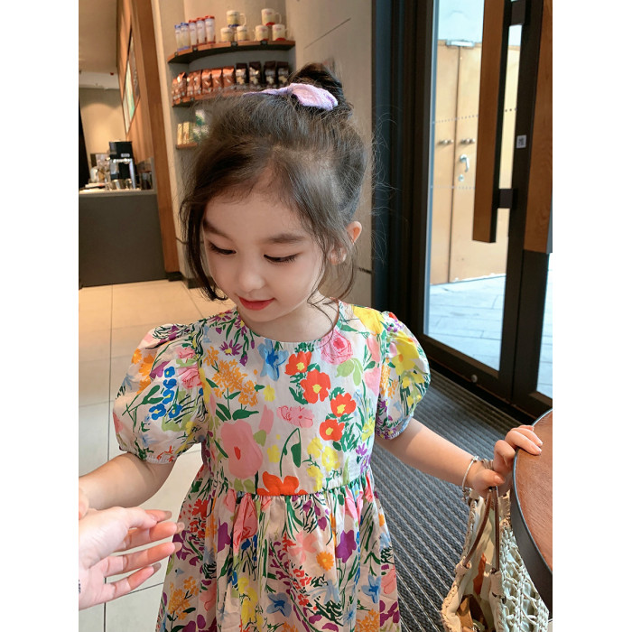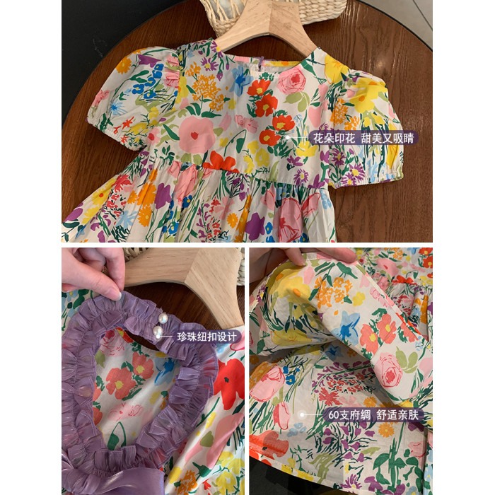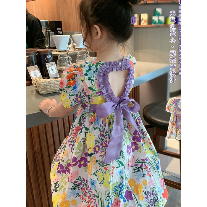 女童夏季短袖連衣裙2025年洋氣兒童愛心鏤空碎花棉布裙小女孩裙子