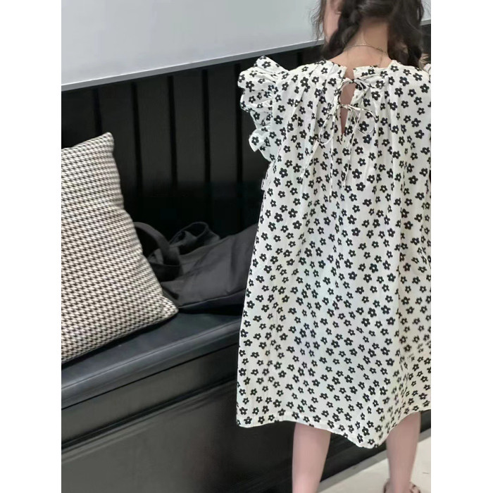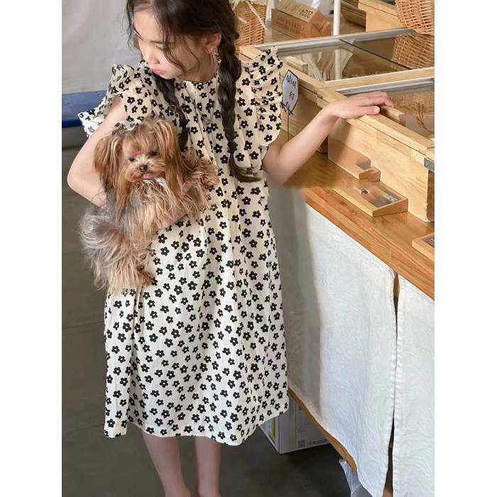 波拉韓童裝女童短袖連衣裙2025夏季兒童小飛袖裙子中大童背心裙