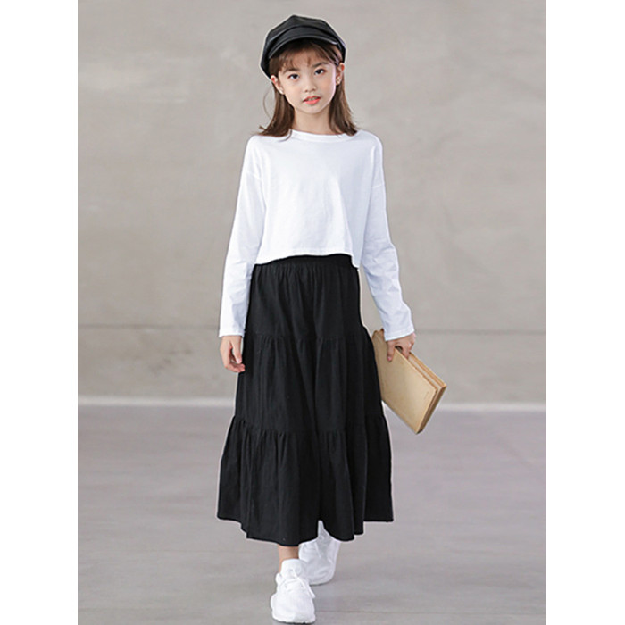 女童夏季半身裙純棉兒童中長款裙子蓬蓬裙中大童親子洋氣秋款半截