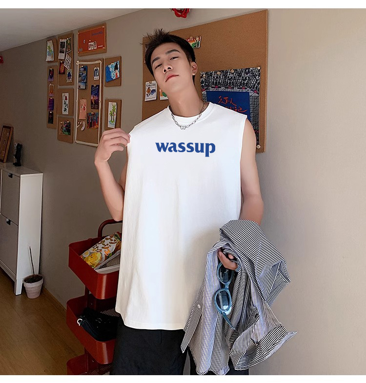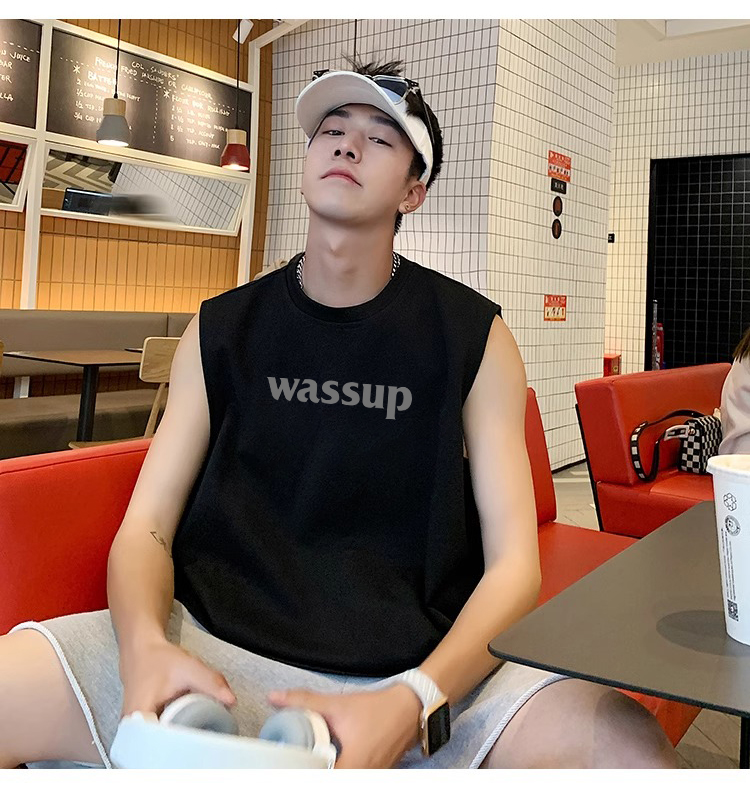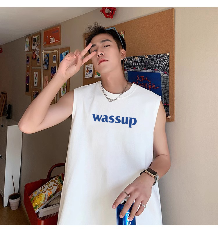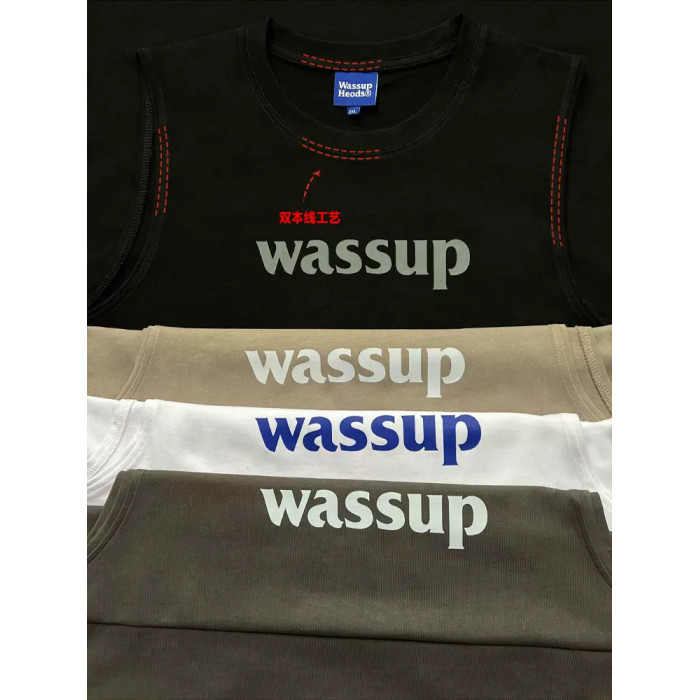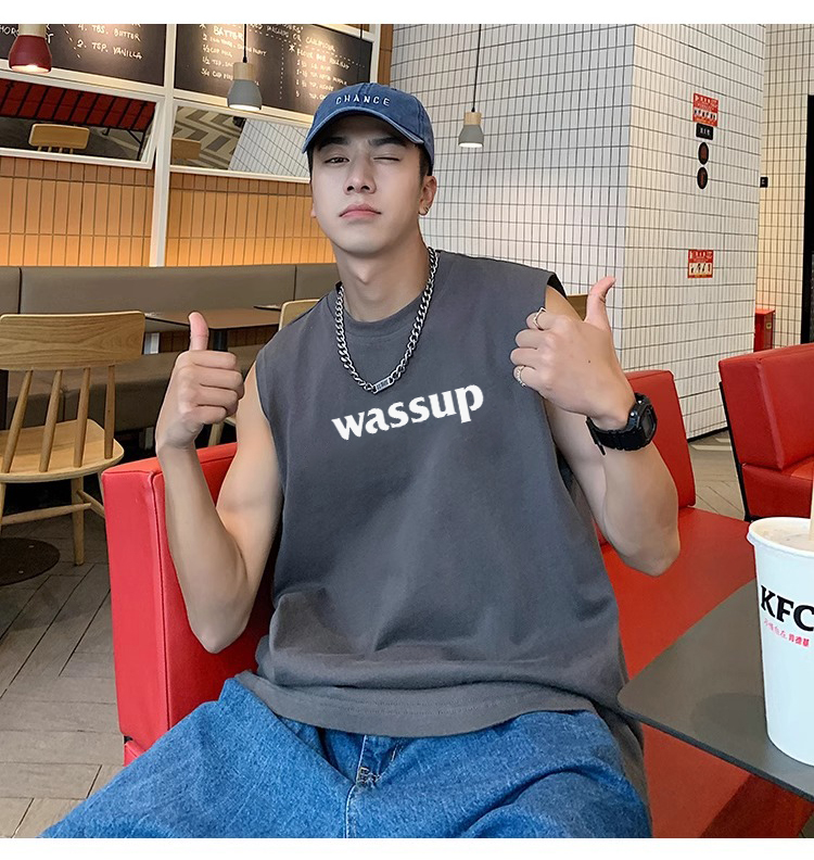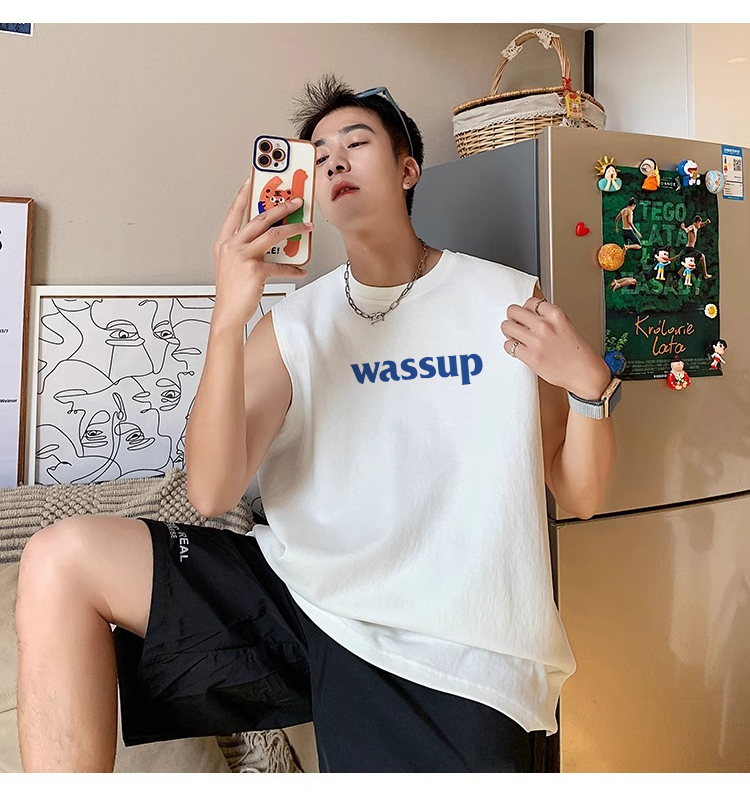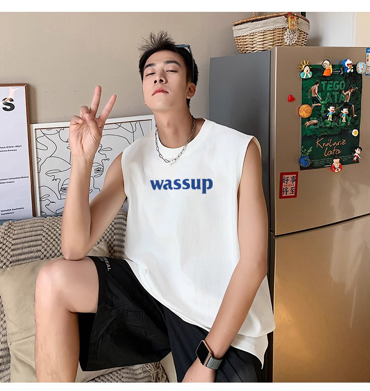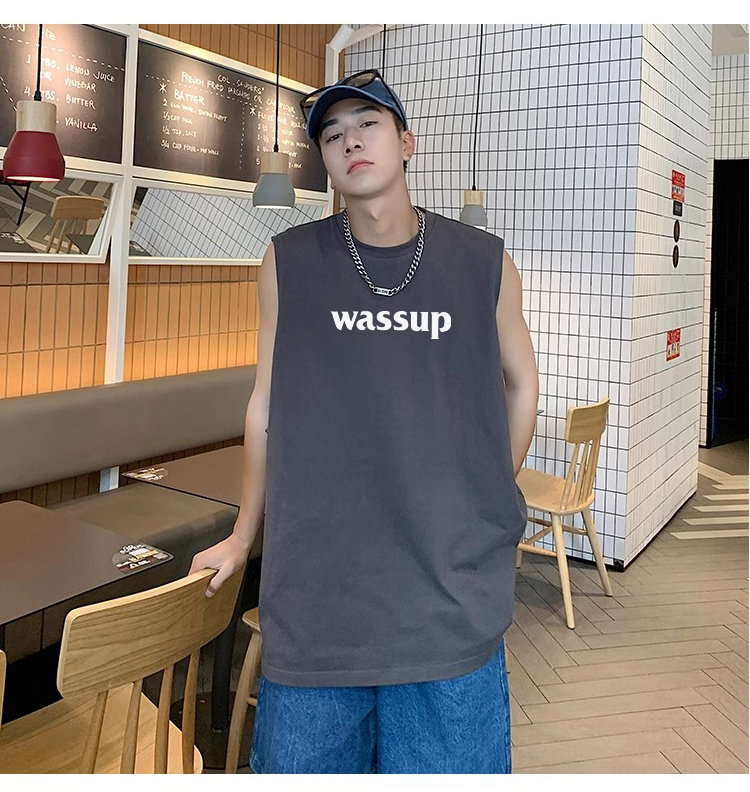 WASSUP HEODS美式休閒字母印花背心潮牌男寬松無袖T恤坎肩夏
