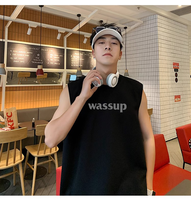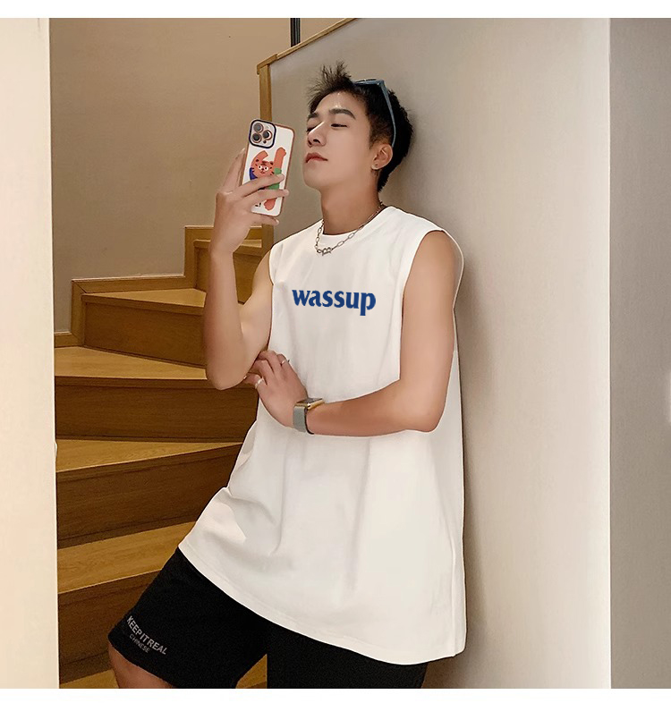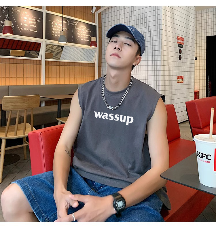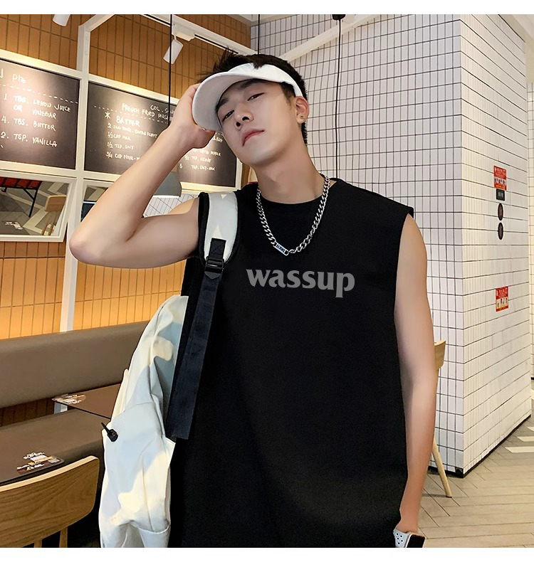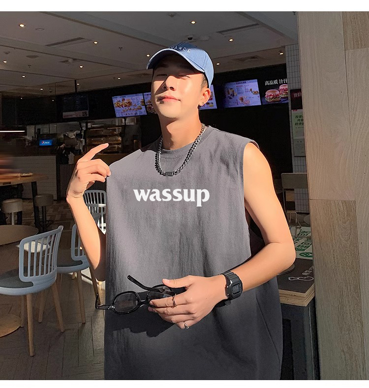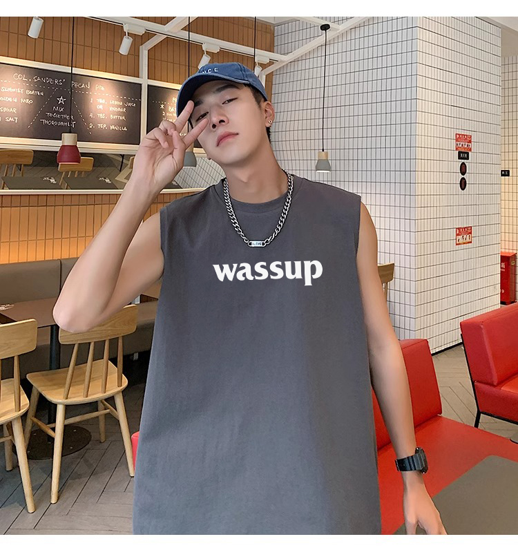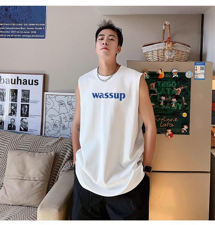 WASSUP HEODS美式休閒字母印花背心潮牌男寬松無袖T恤坎肩夏
