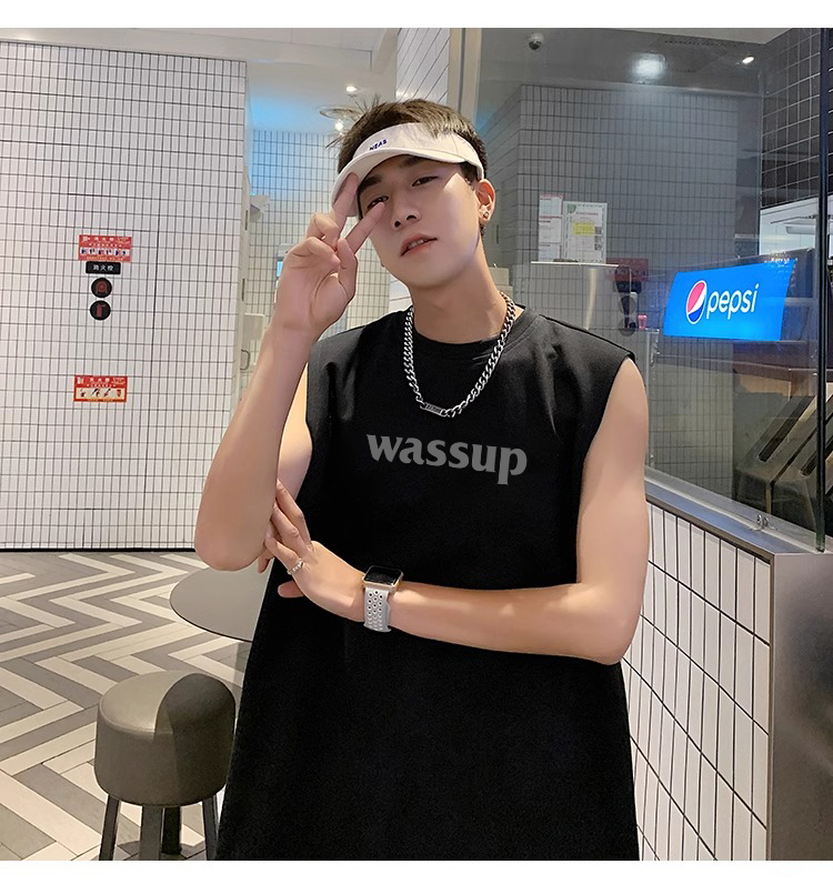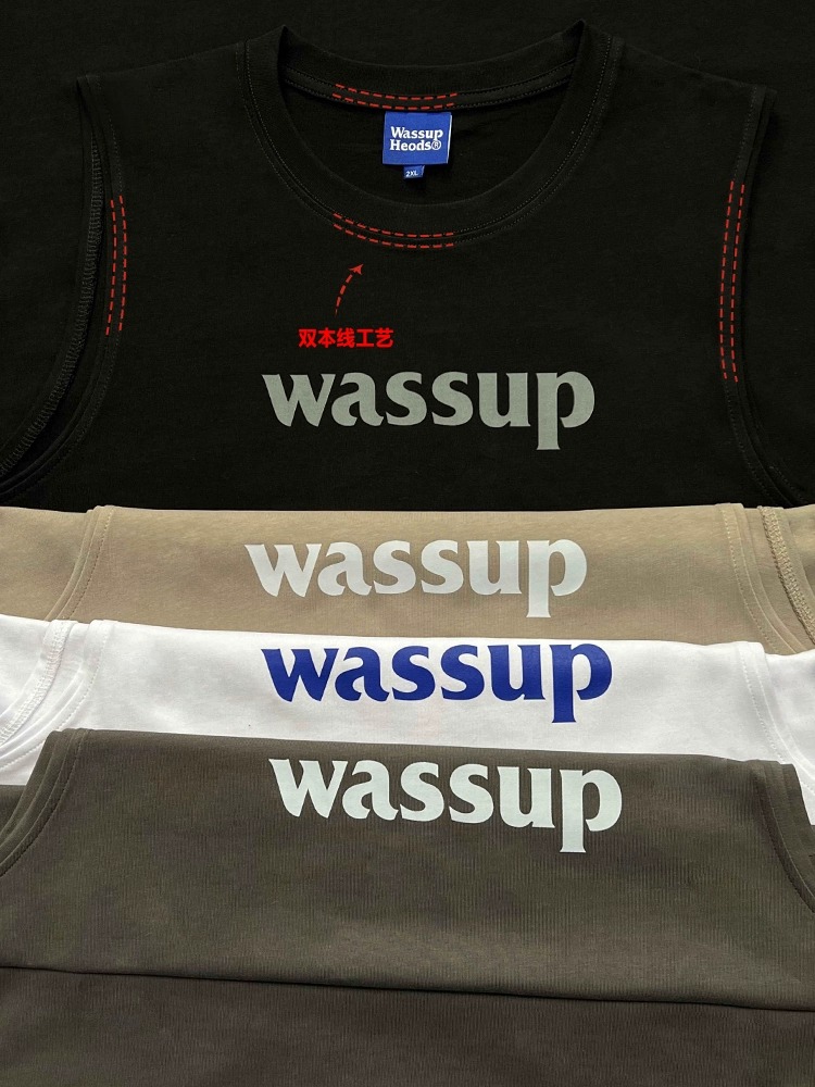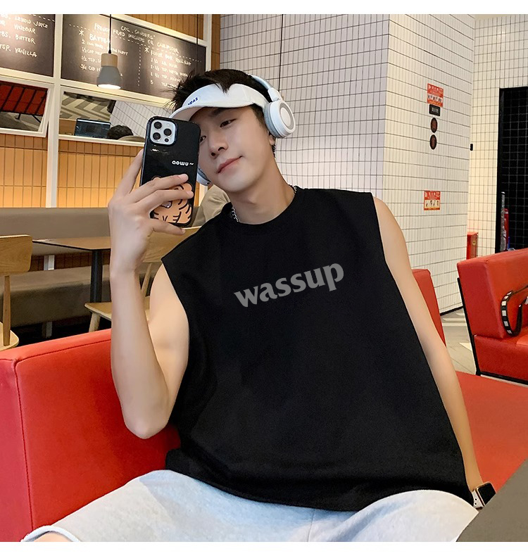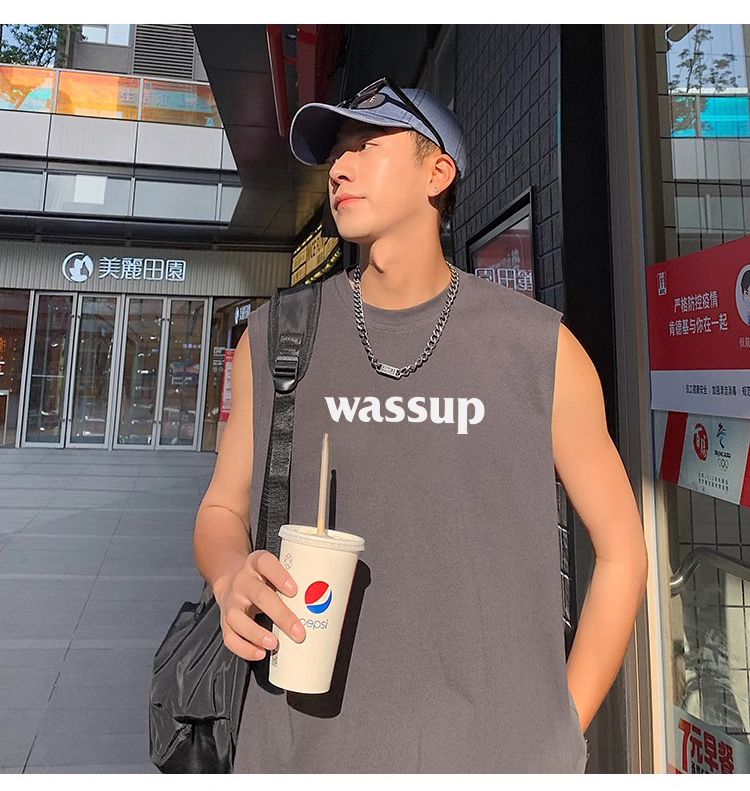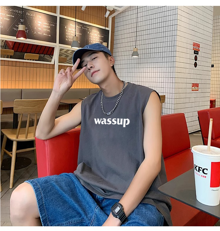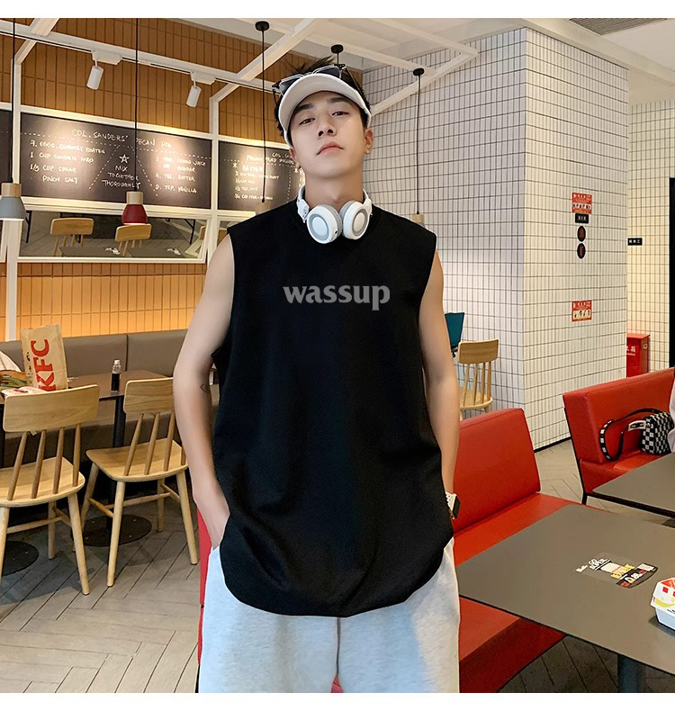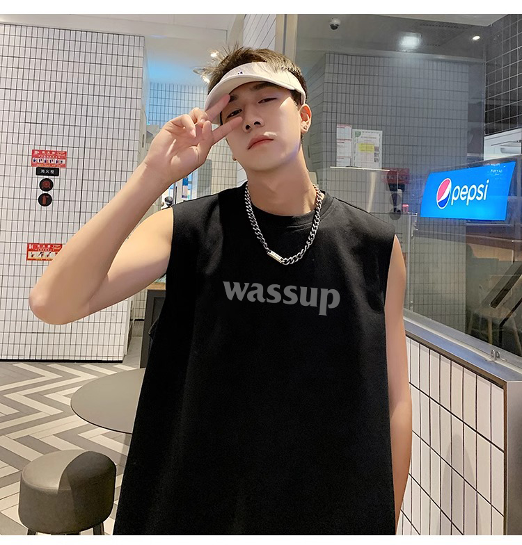 WASSUP HEODS美式休閒字母印花背心潮牌男寬松無袖T恤坎肩夏