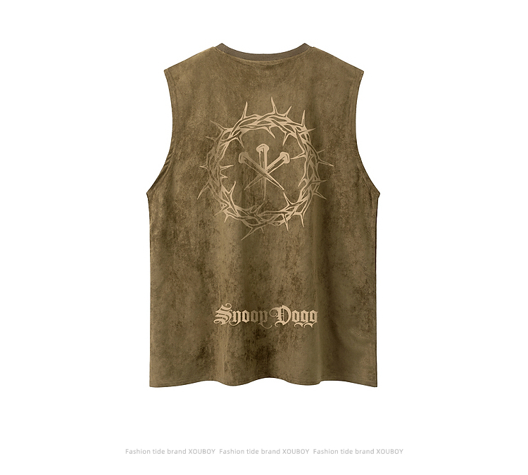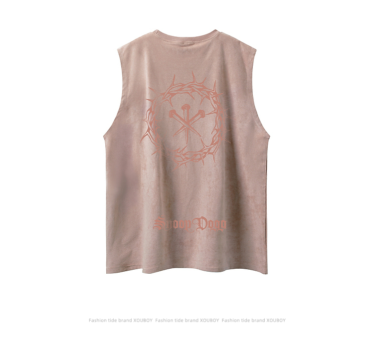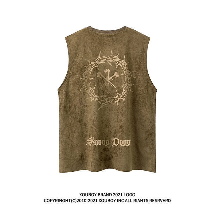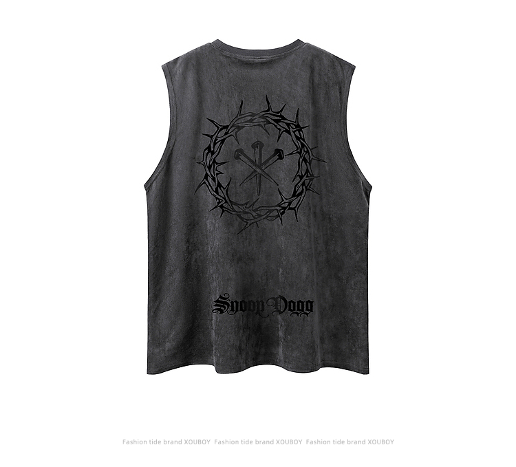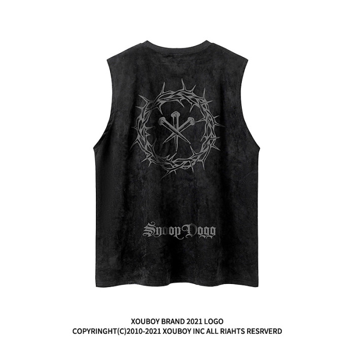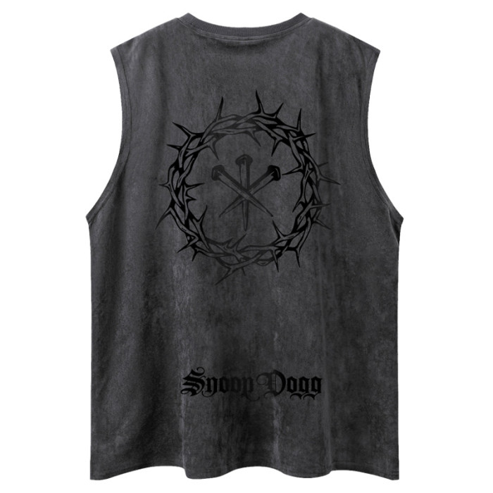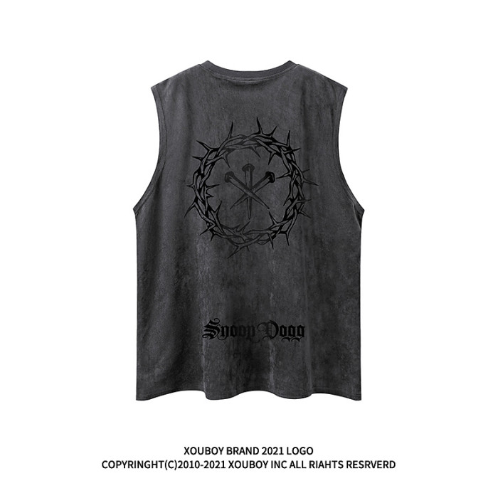 美式嘻哈創意印花做舊水洗背心男健身籃球ins潮牌寬松坎肩無袖T恤