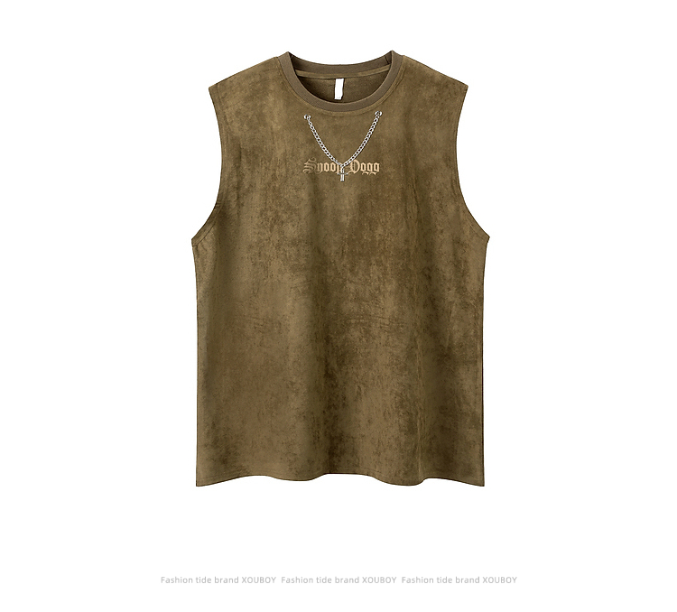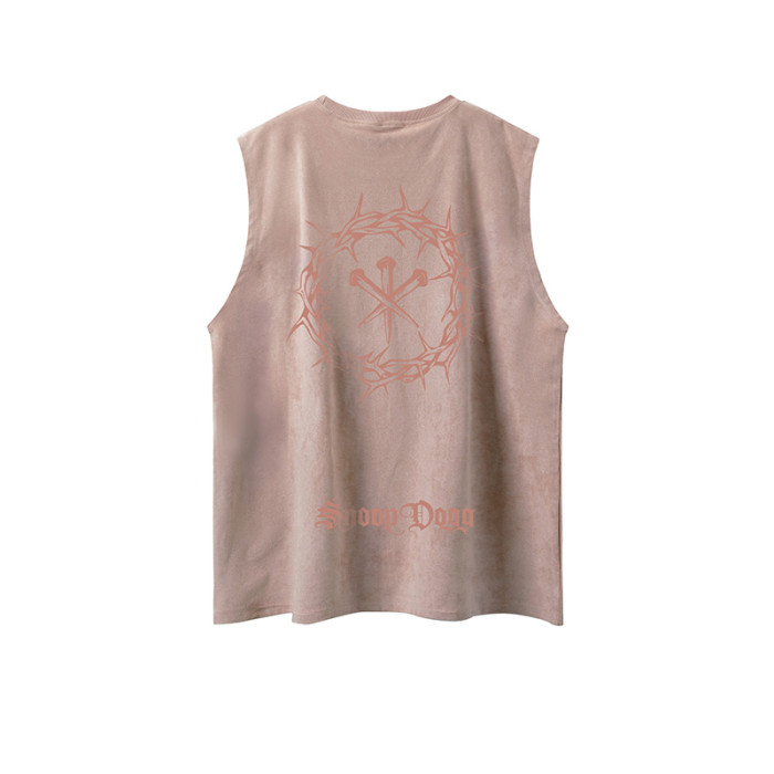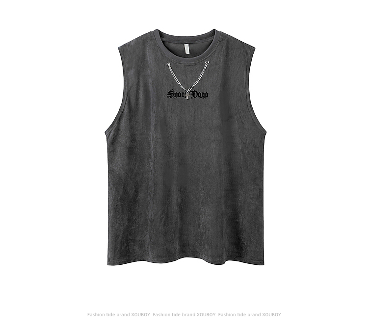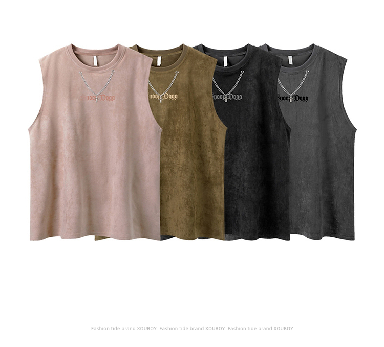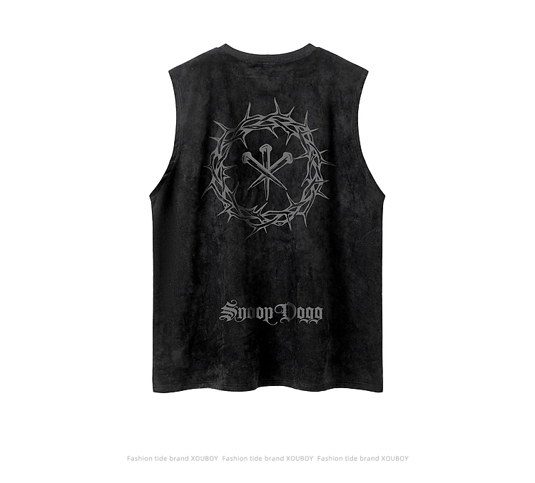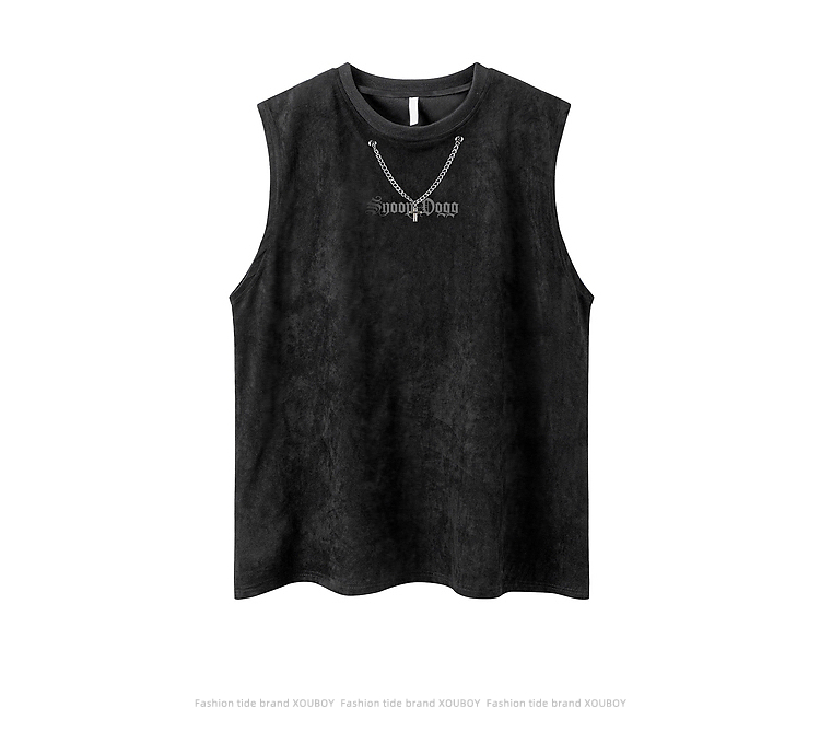 美式嘻哈創意印花做舊水洗背心男健身籃球ins潮牌寬松坎肩無袖T恤