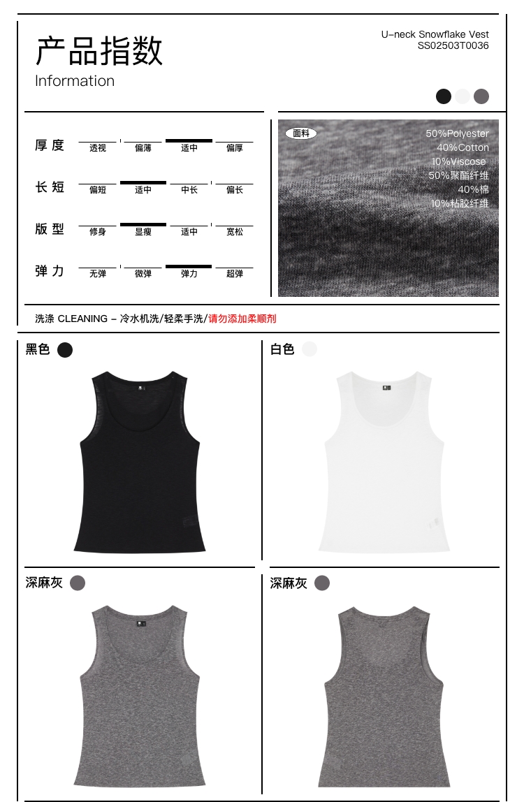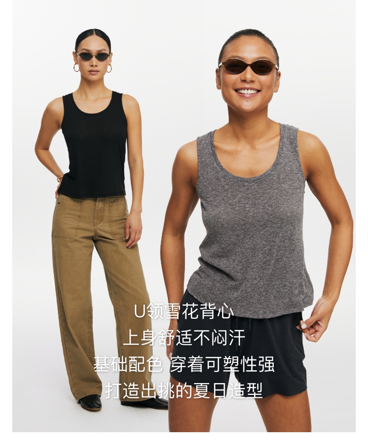 Oneup麻感U領吊帶背心女2025夏季新款純色百搭彈力透氣無袖內搭衫