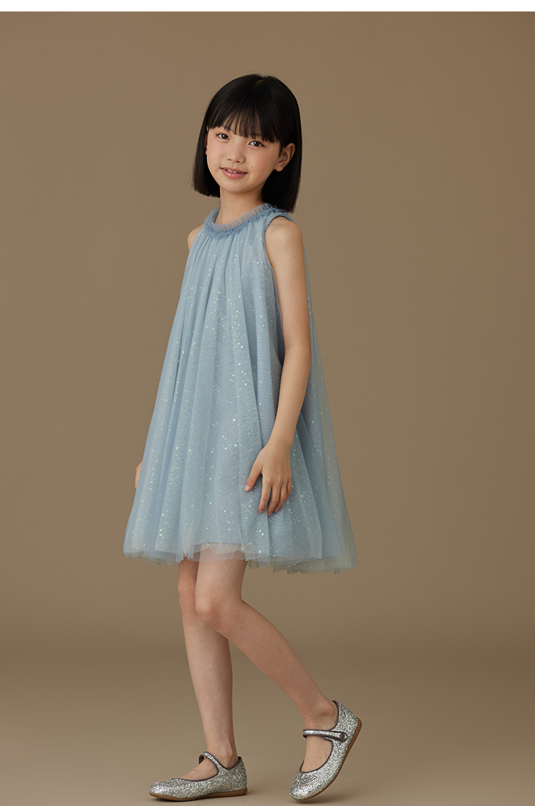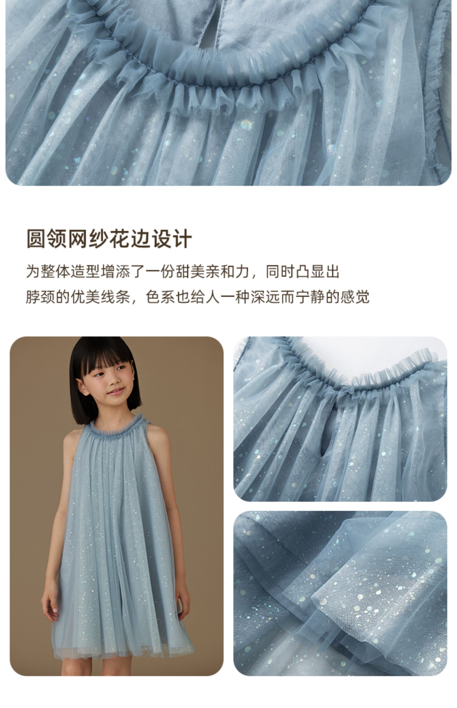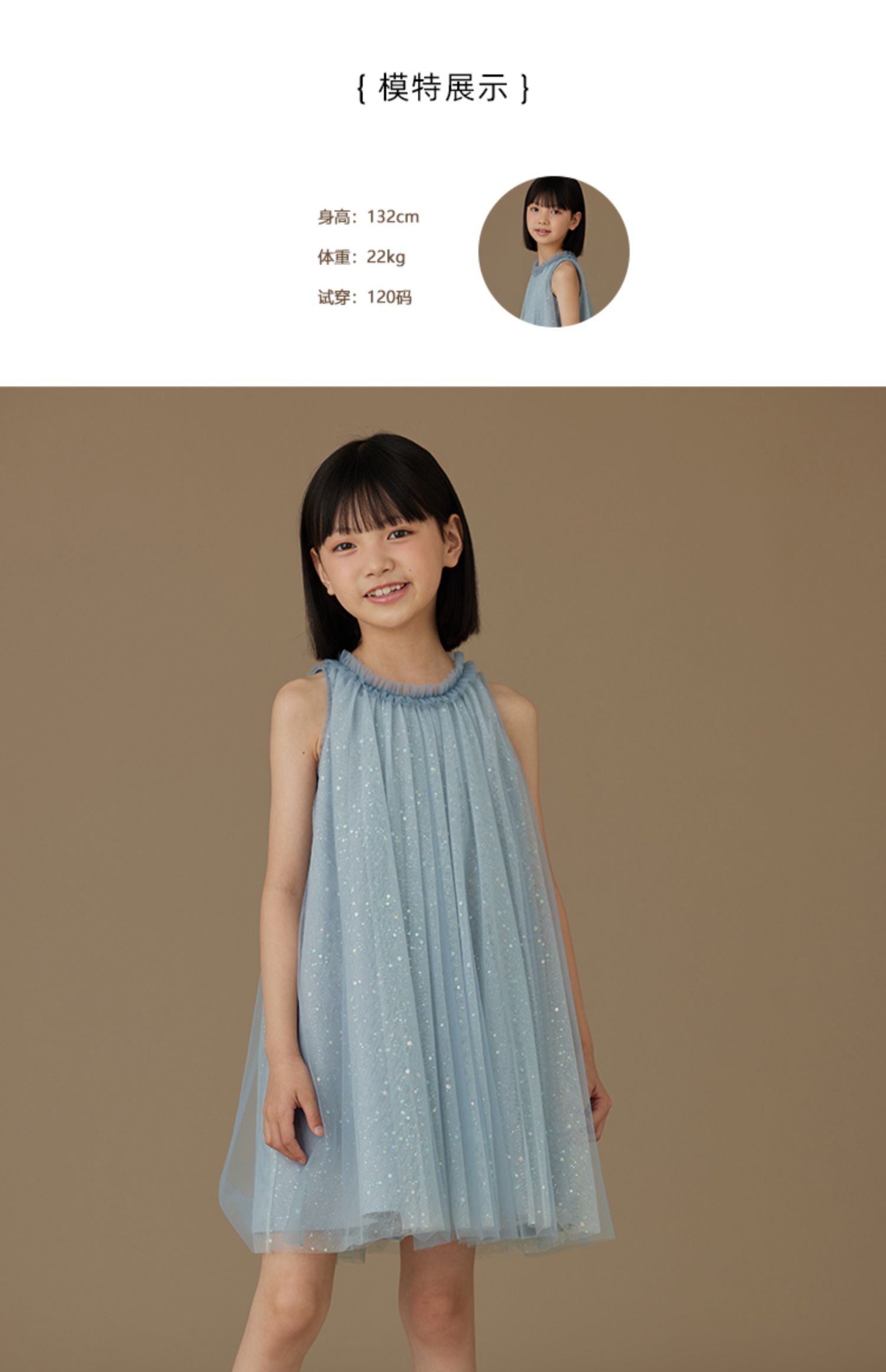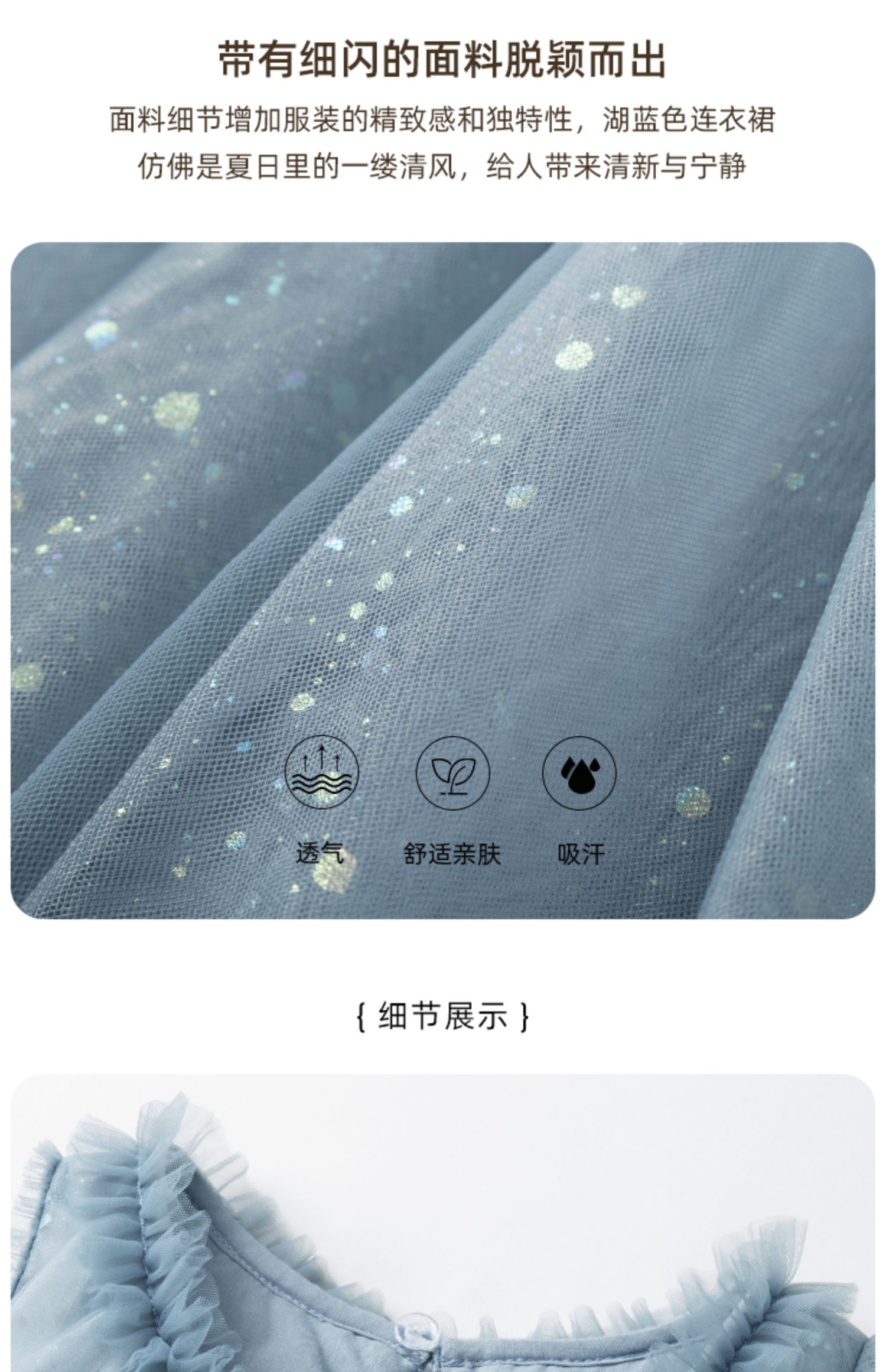 哈齒童裝兒童湖藍色連衣裙夏季薄款公主裙紗裙女孩背心裙女童洋氣