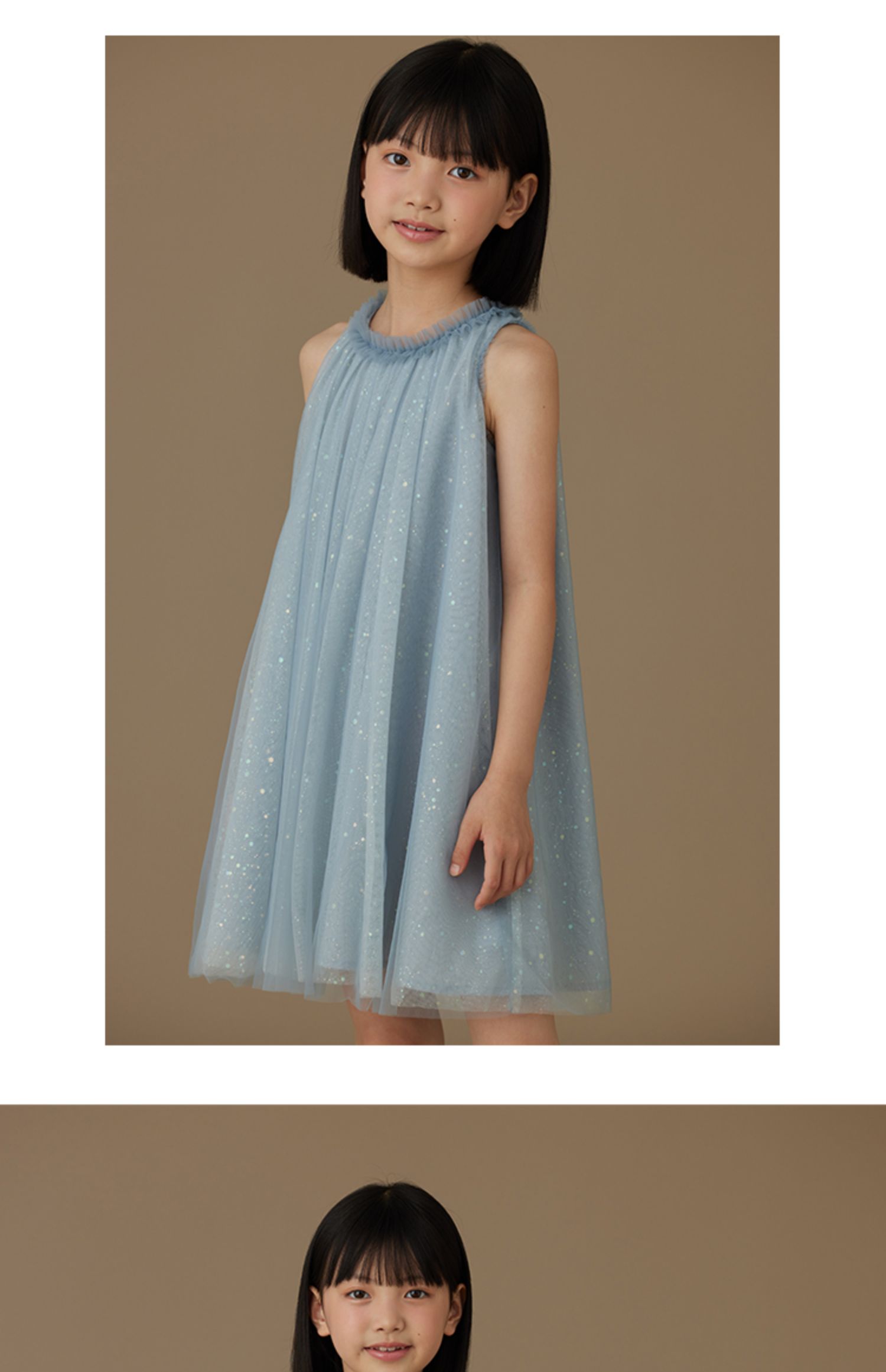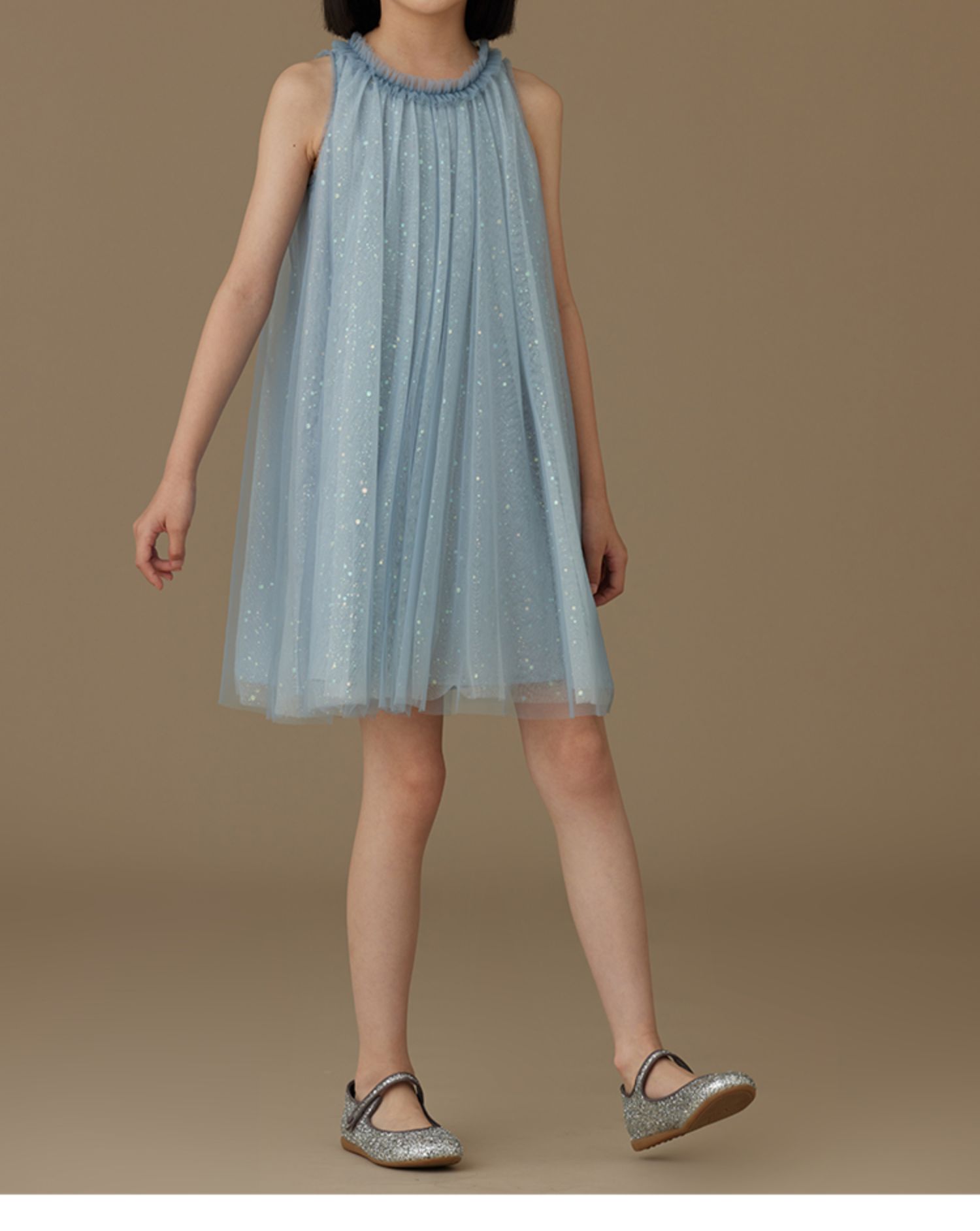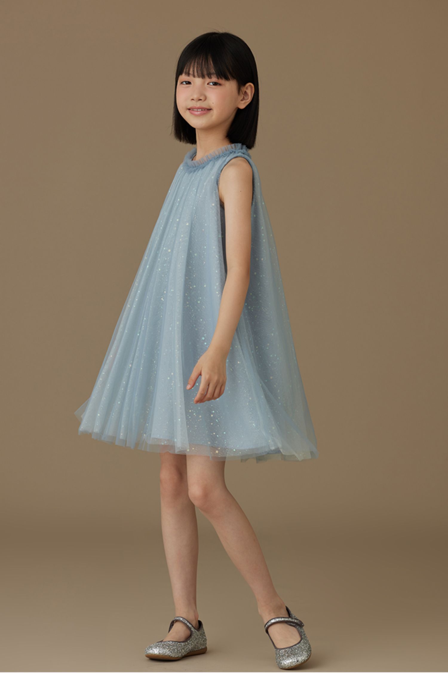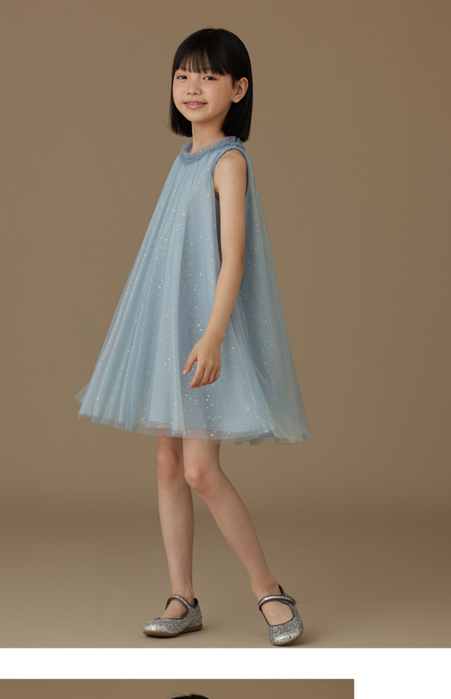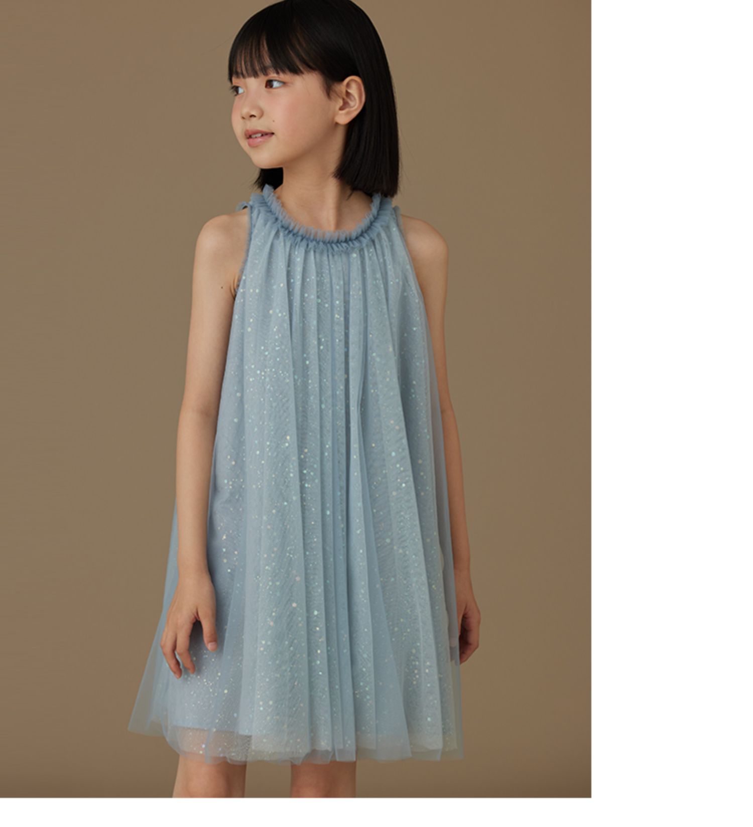 哈齒童裝兒童湖藍色連衣裙夏季薄款公主裙紗裙女孩背心裙女童洋氣
