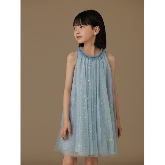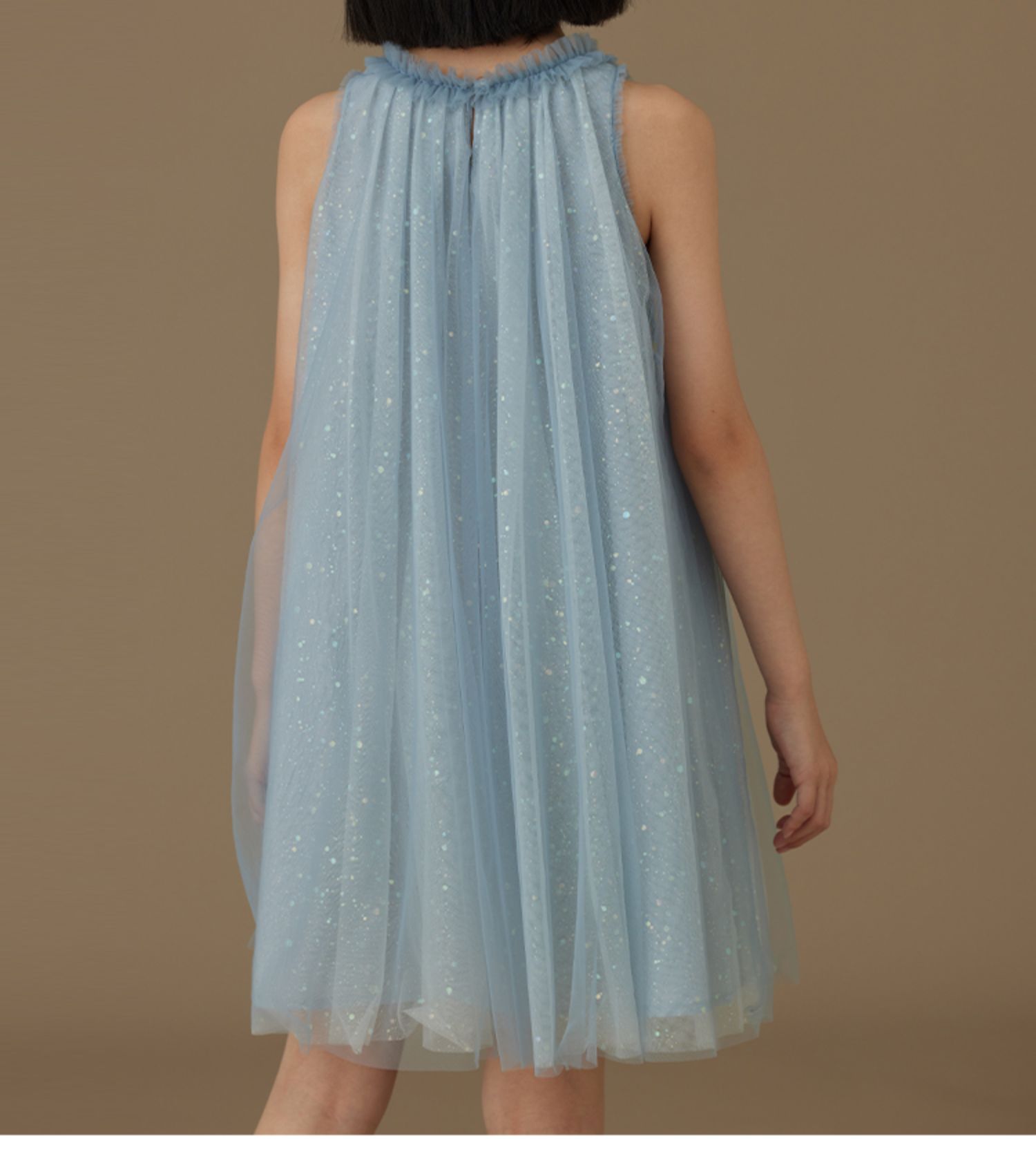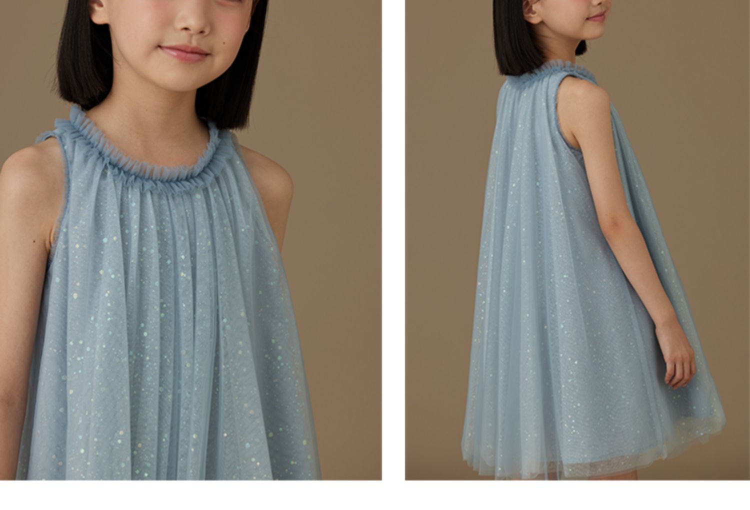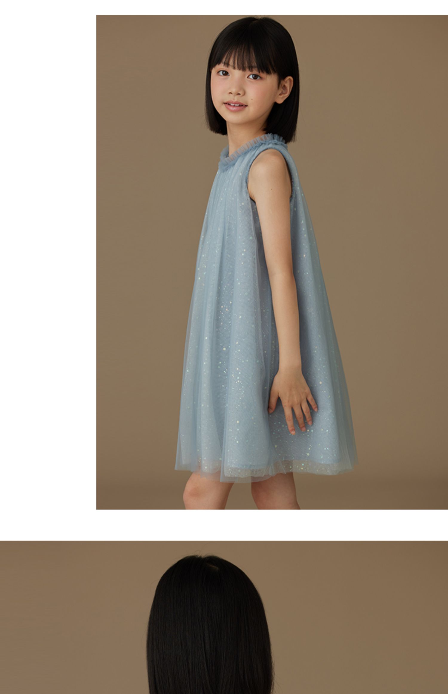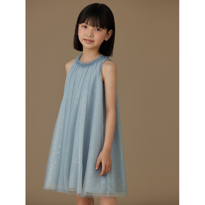 哈齒童裝兒童湖藍色連衣裙夏季薄款公主裙紗裙女孩背心裙女童洋氣