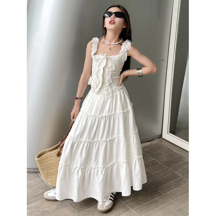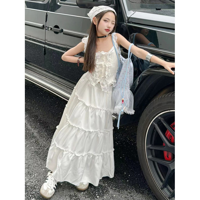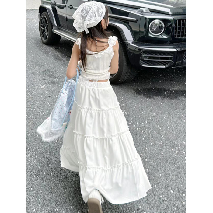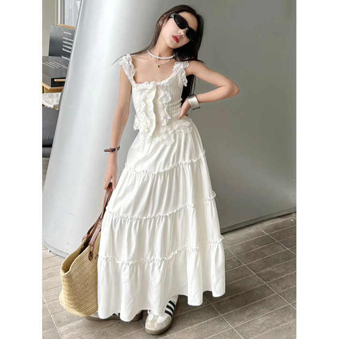 女童夏季半身裙兒童法式白色長裙12嵗女孩夏天蛋糕裙大童森系裙子