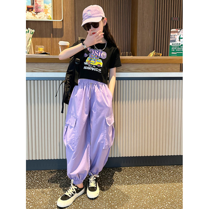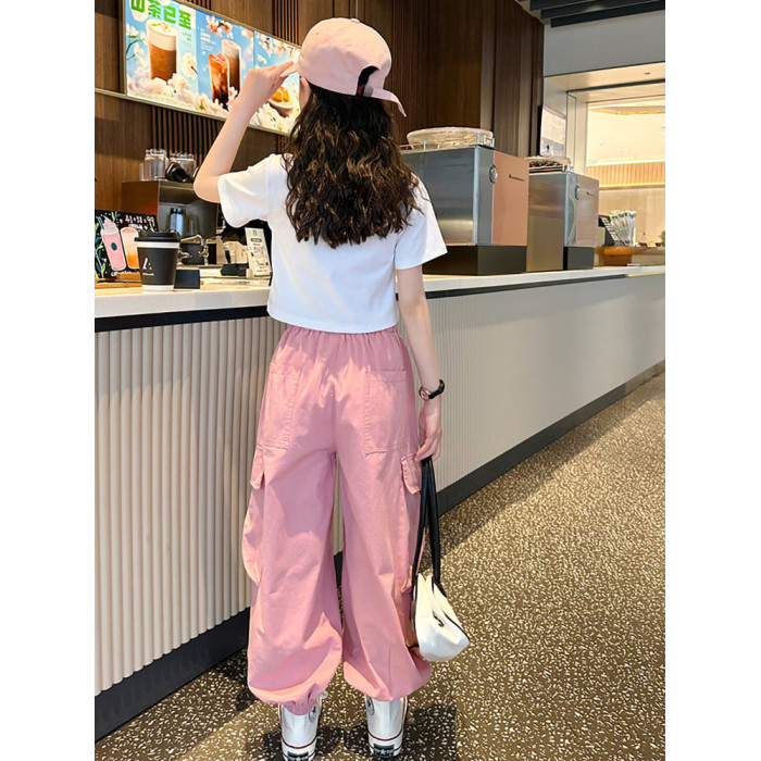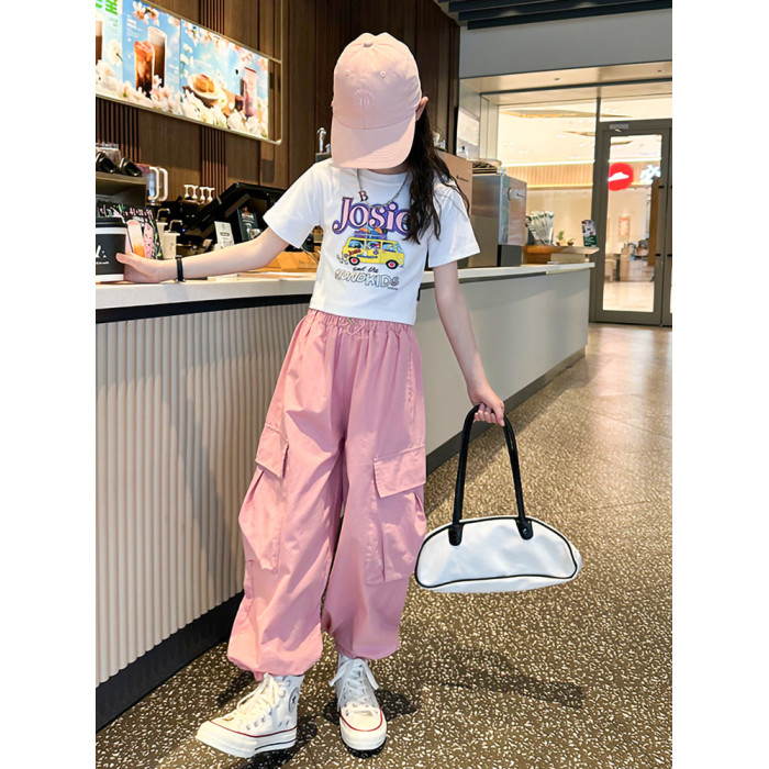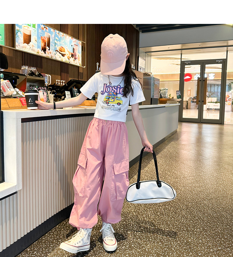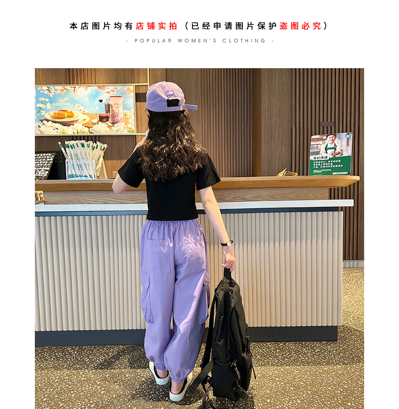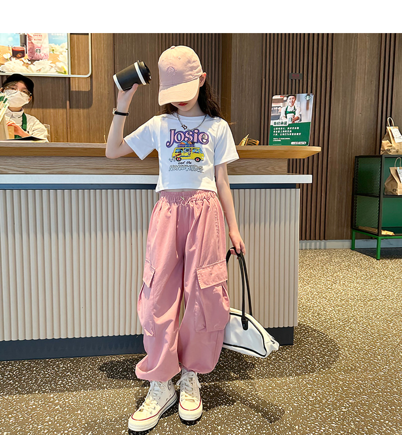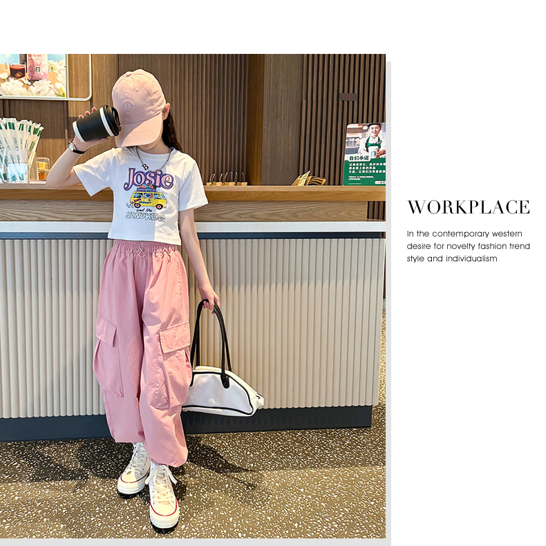 女童短袖t恤夏季2025新款兒童純棉體恤修身女大童運動短款上衣潮