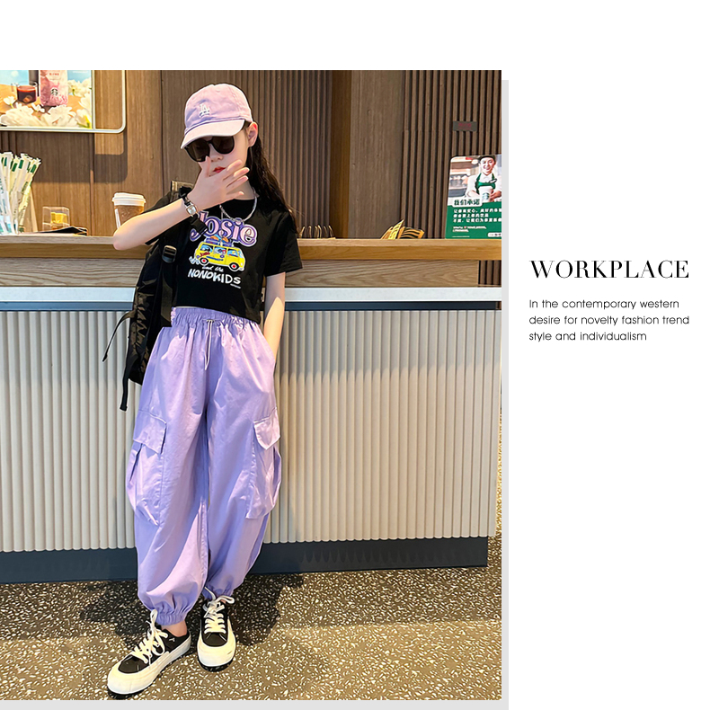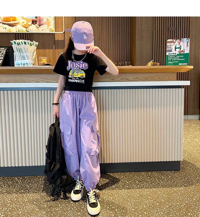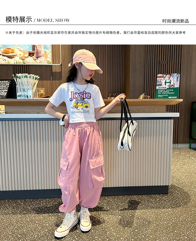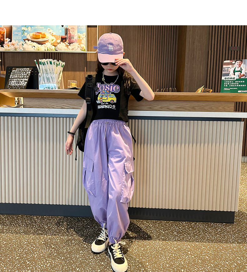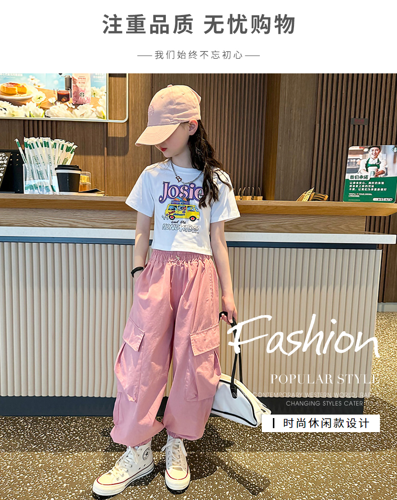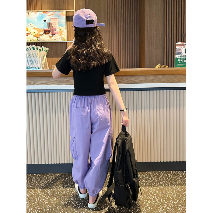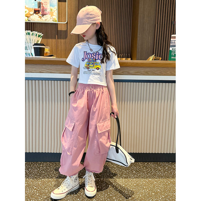 女童短袖t恤夏季2025新款兒童純棉體恤修身女大童運動短款上衣潮