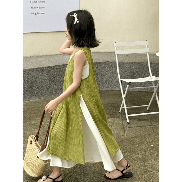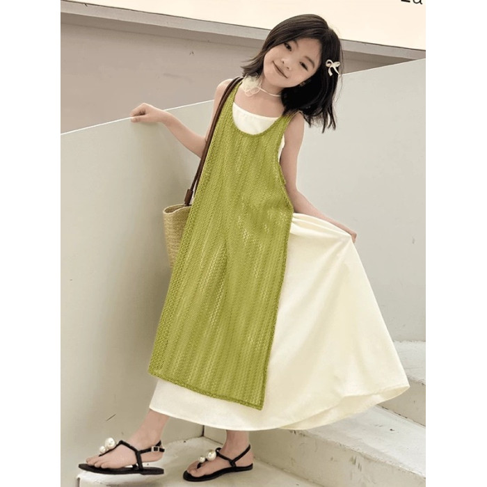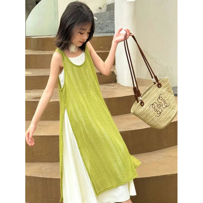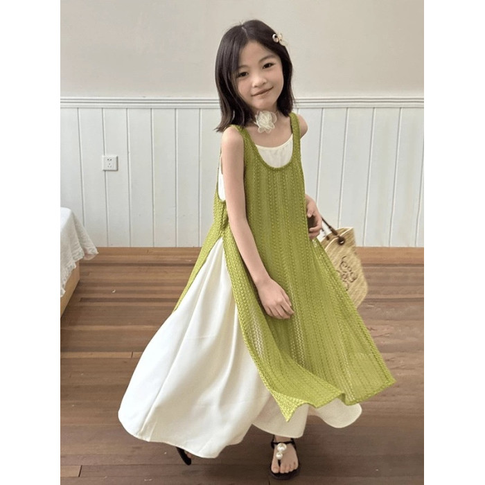 女童連衣裙夏季新款兒童時髦夏裝洋氣度假裙子大童夏天海邊吊帶裙