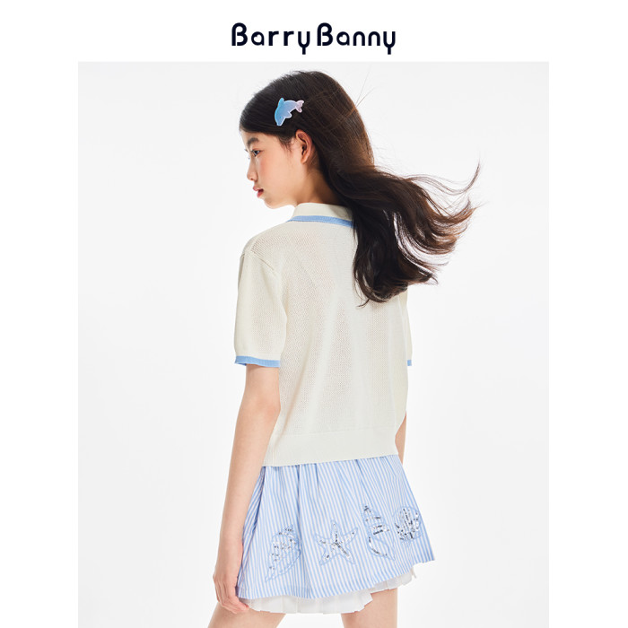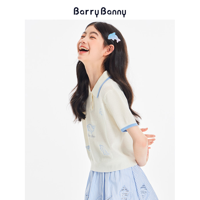 BarryBanny女童海豚Polo衫2025夏季新款兒童透氣翻領上衣短袖T恤