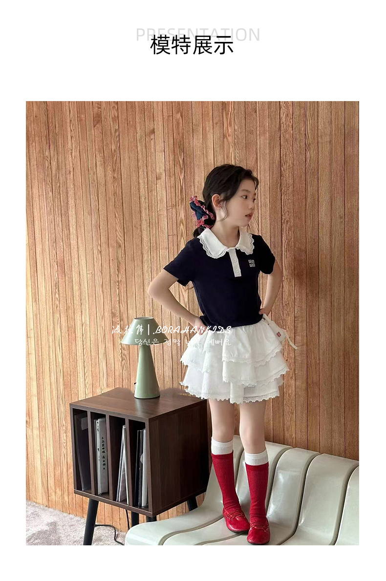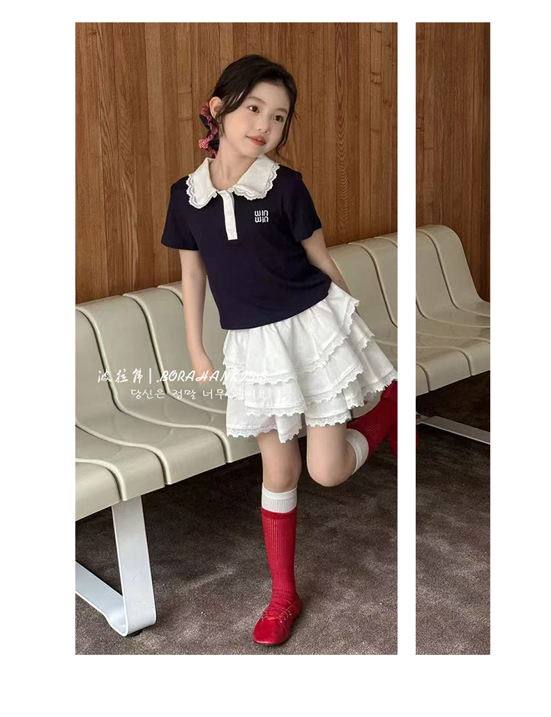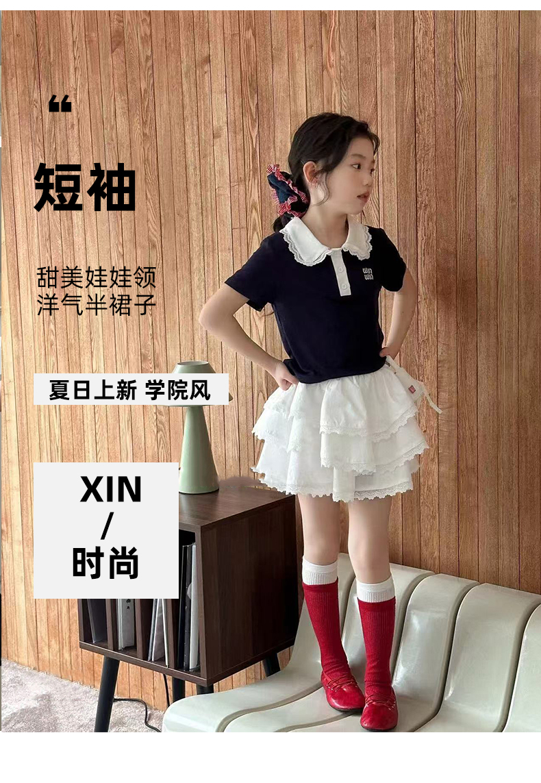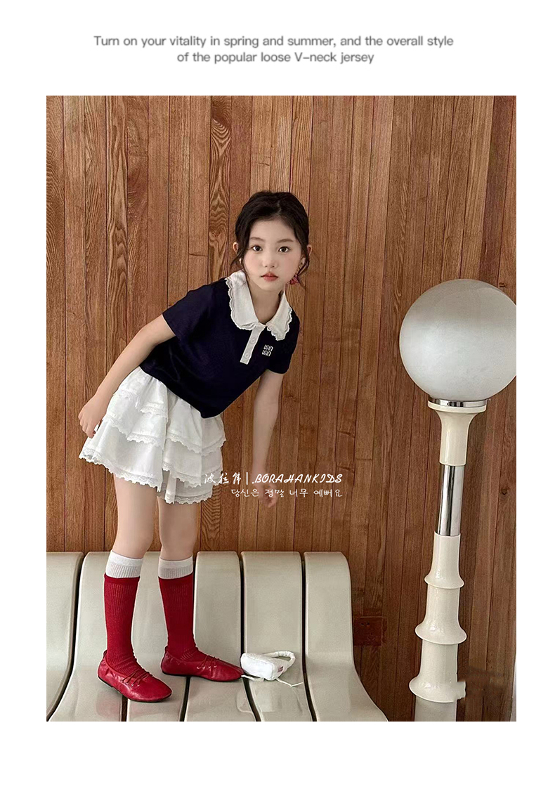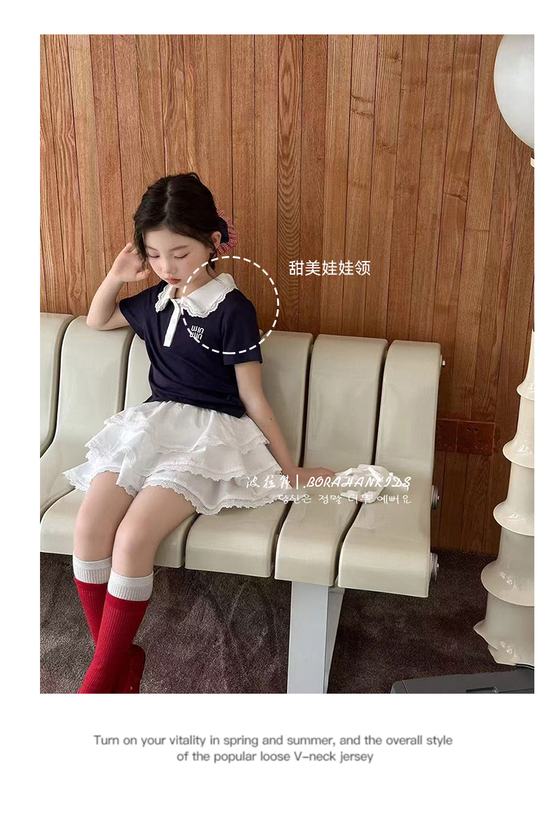 波拉韓女童短袖T恤夏季小女孩學院風POLO2025新款兒童甜美半袖t恤