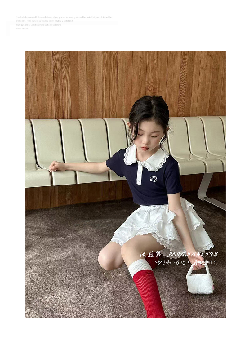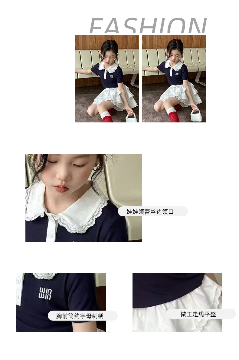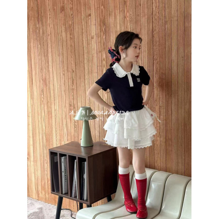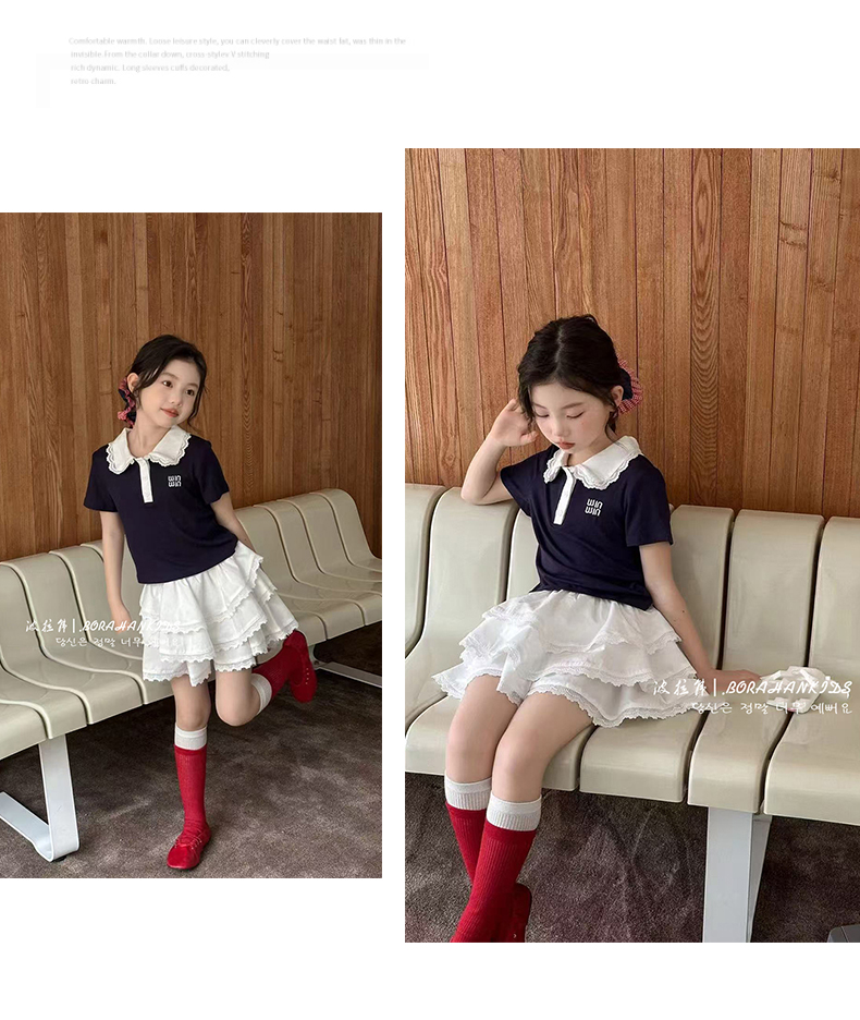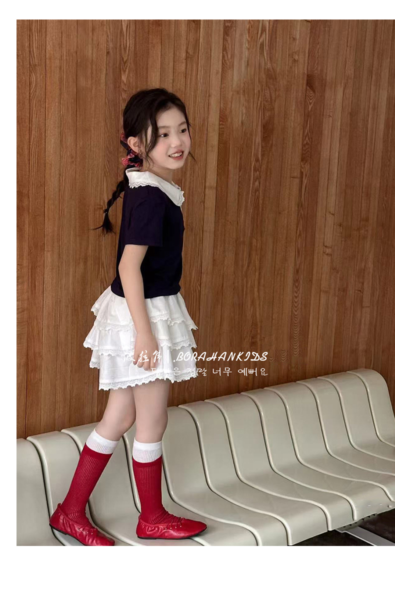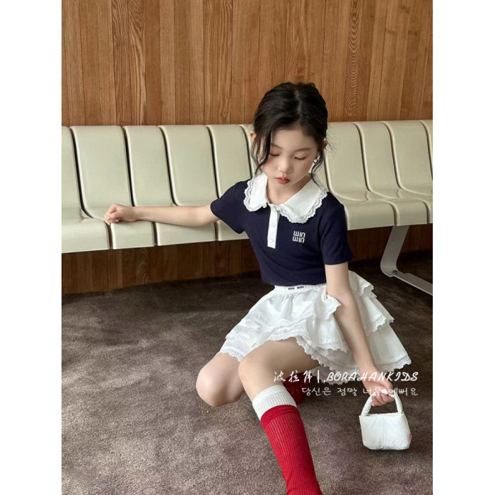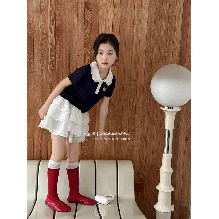 波拉韓女童短袖T恤夏季小女孩學院風POLO2025新款兒童甜美半袖t恤