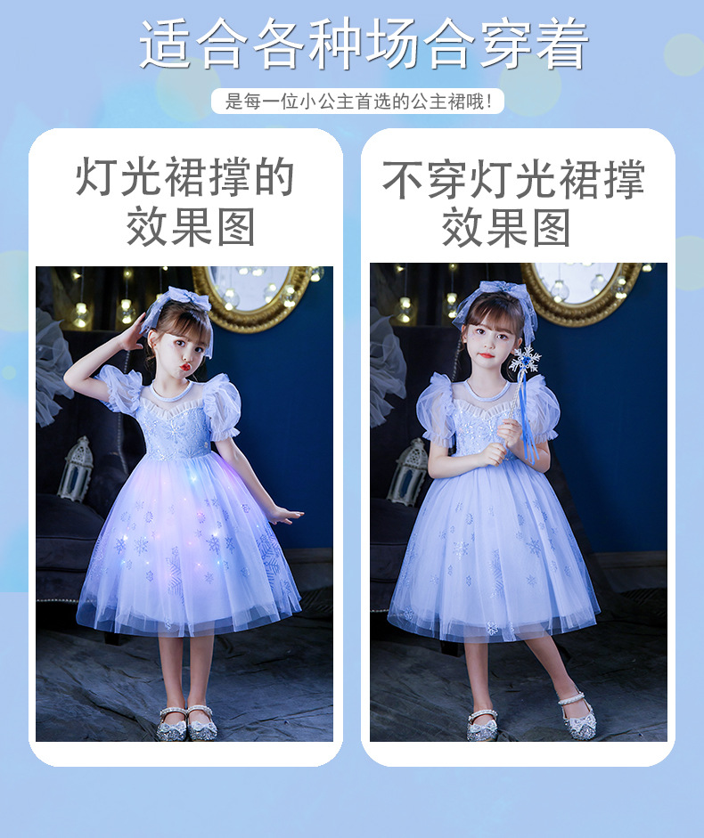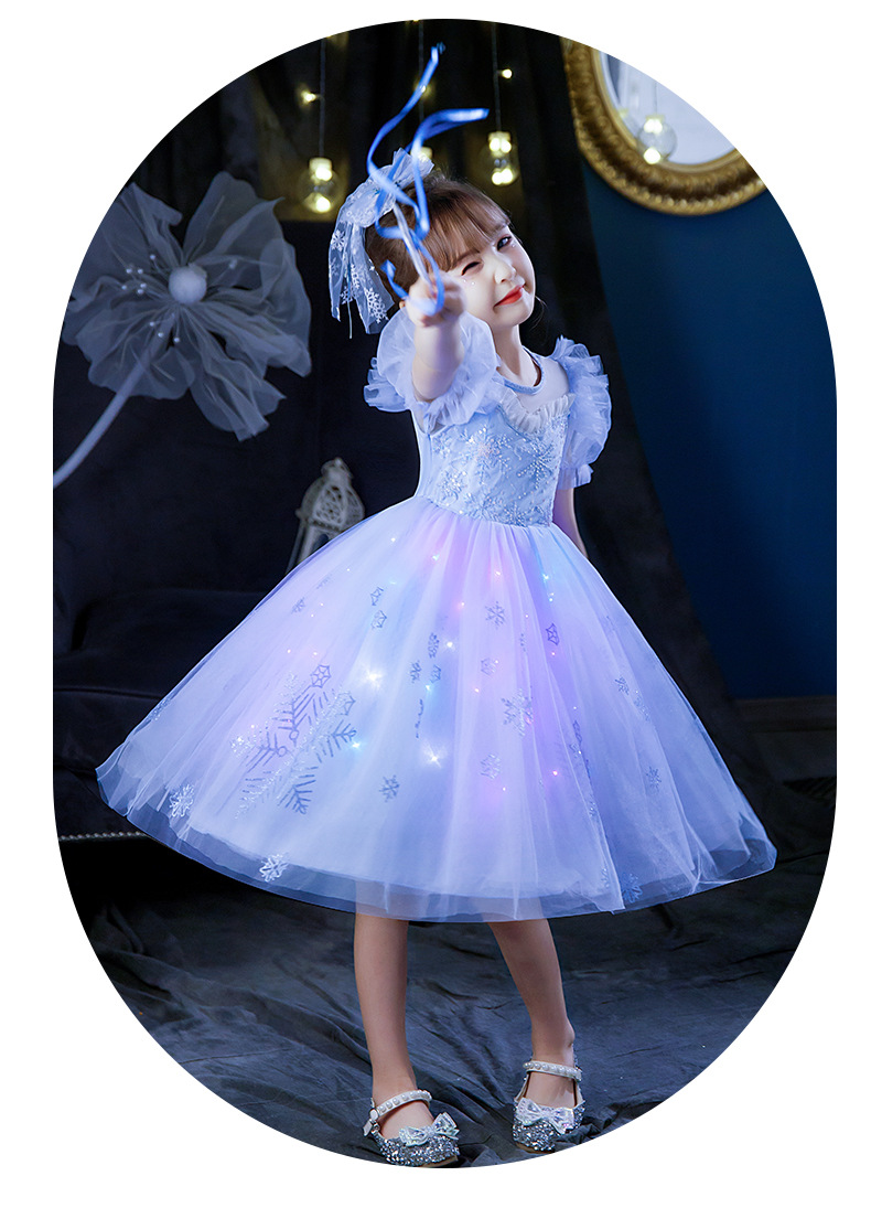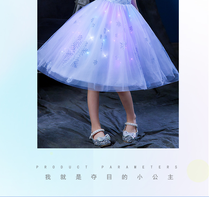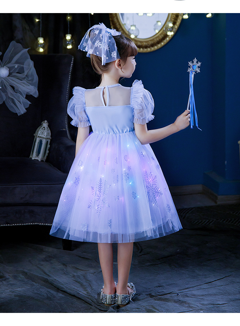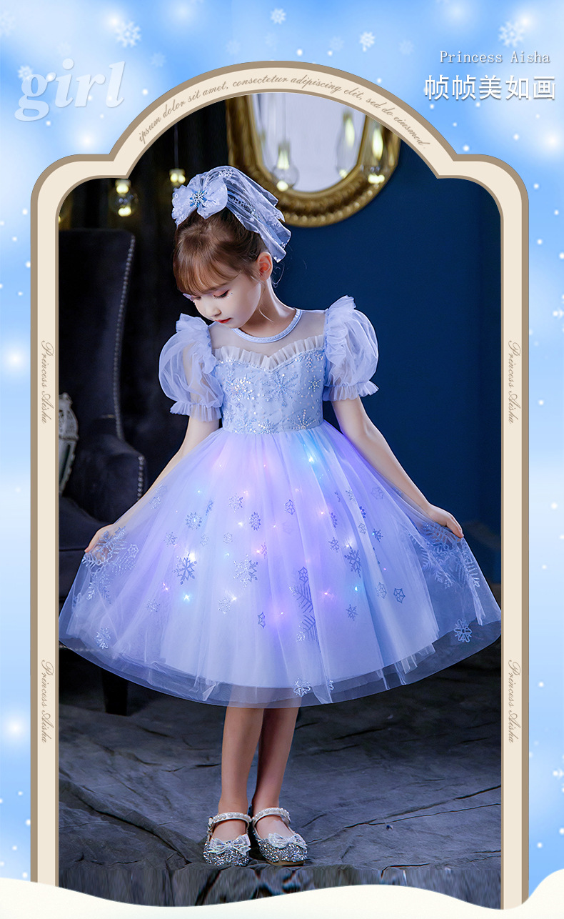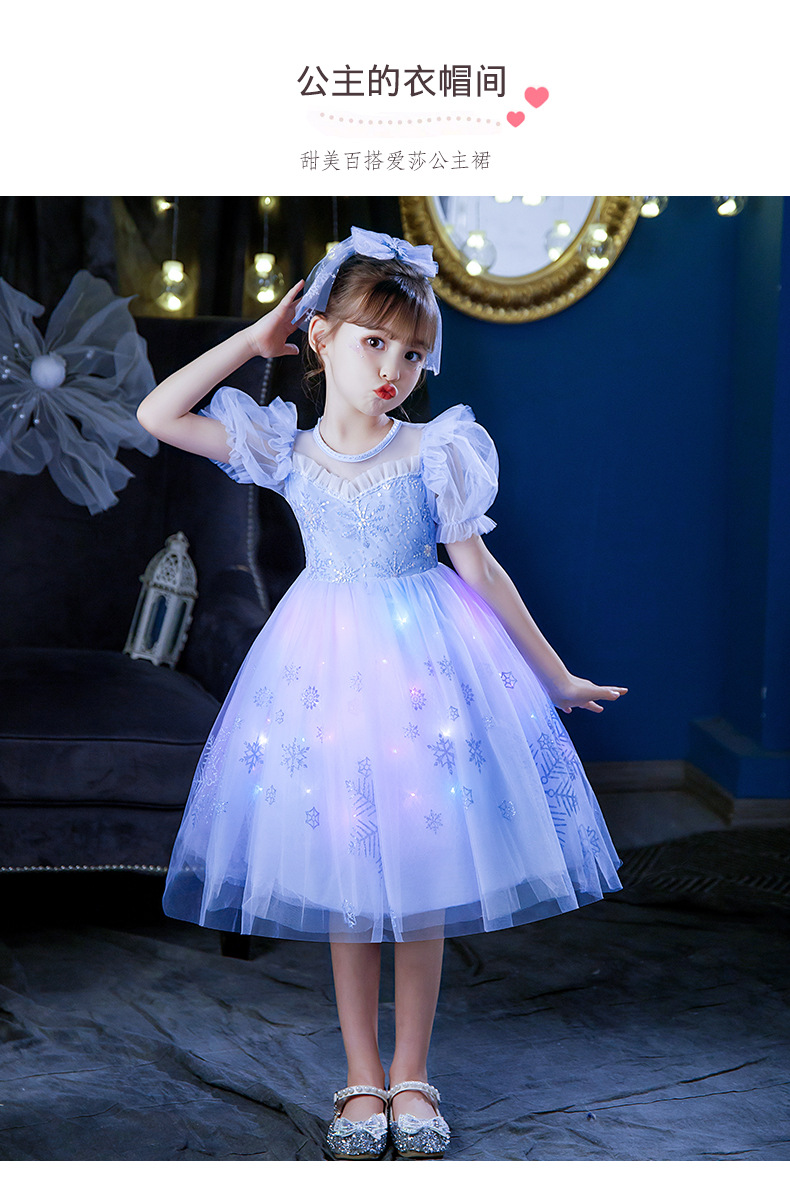 Next Kiss女童發光愛莎公主裙子夏季新款冰雪兒童女孩生日連衣裙
