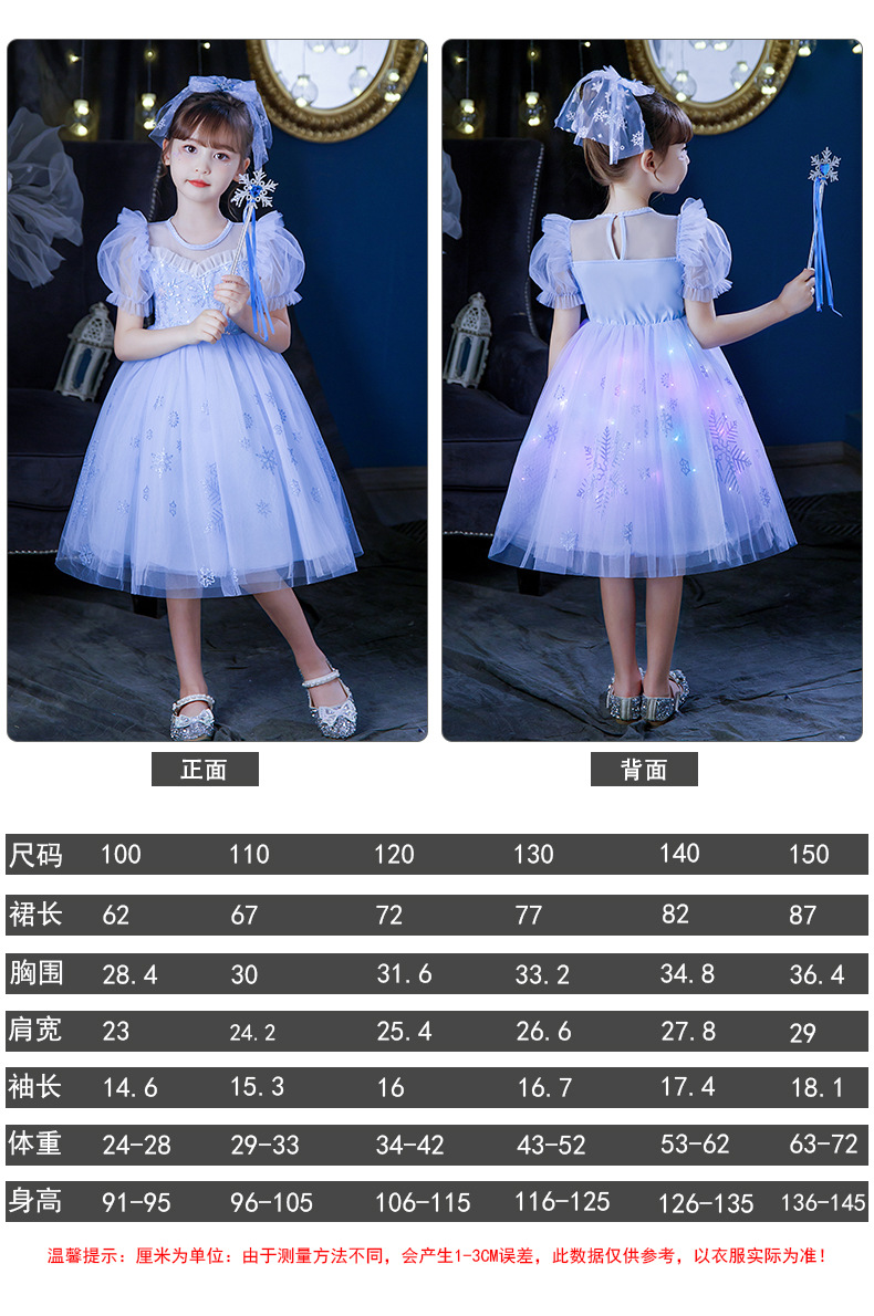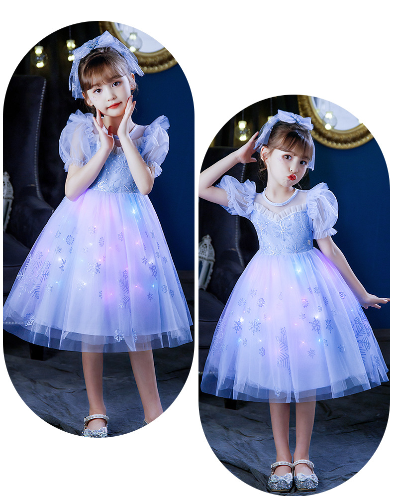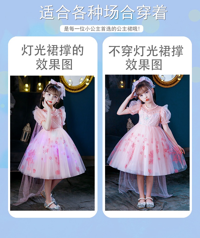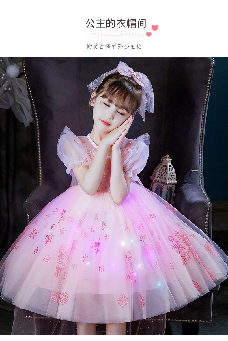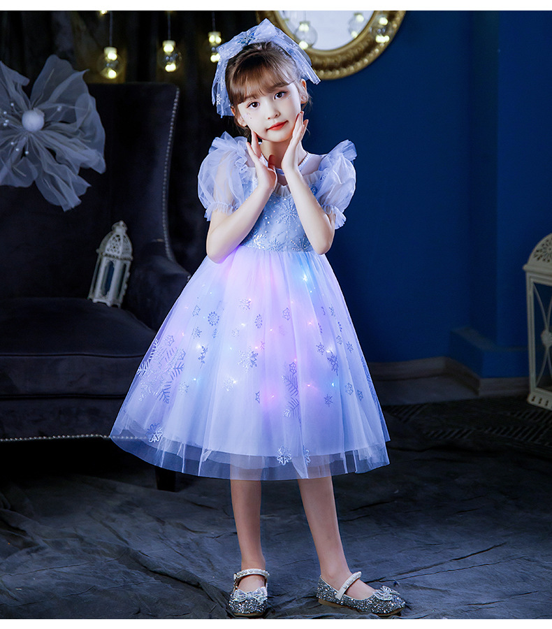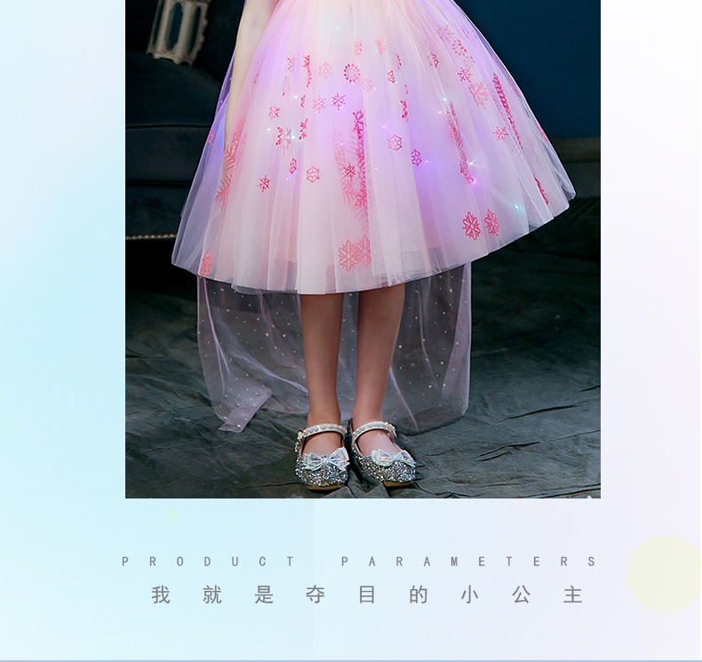 Next Kiss女童發光愛莎公主裙子夏季新款冰雪兒童女孩生日連衣裙