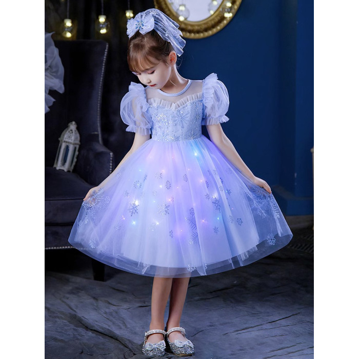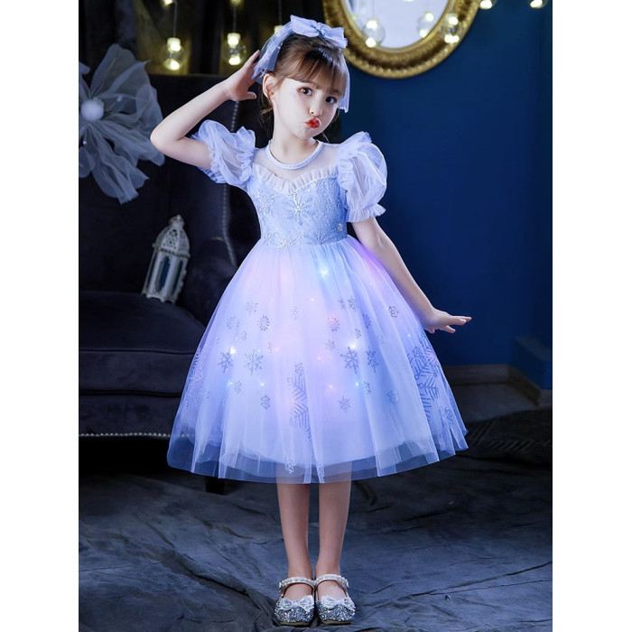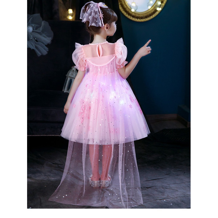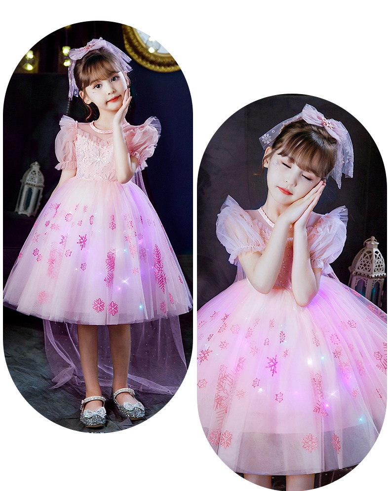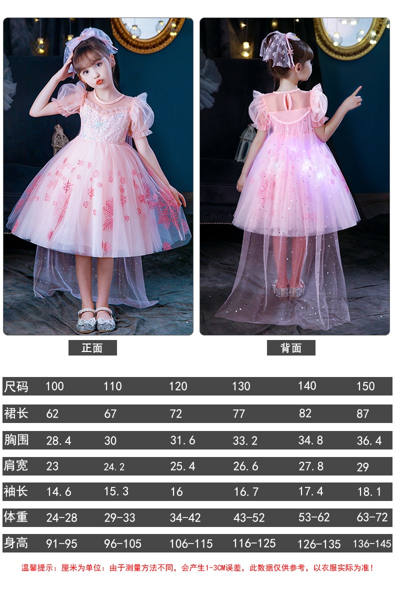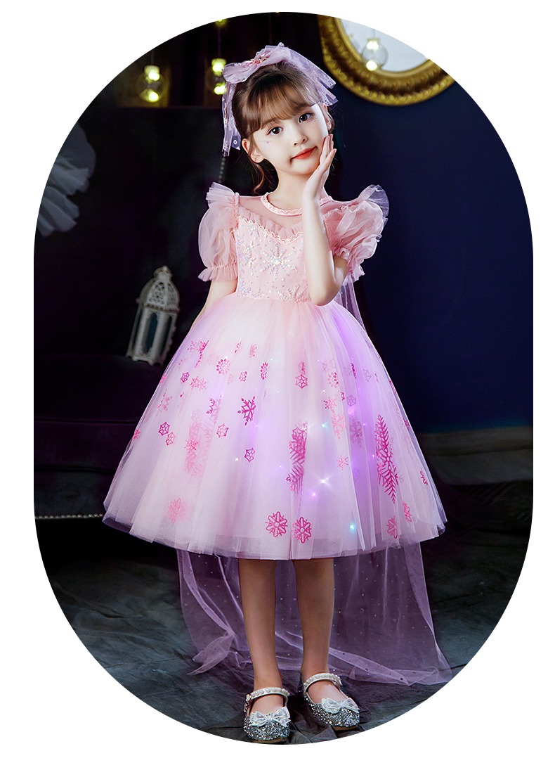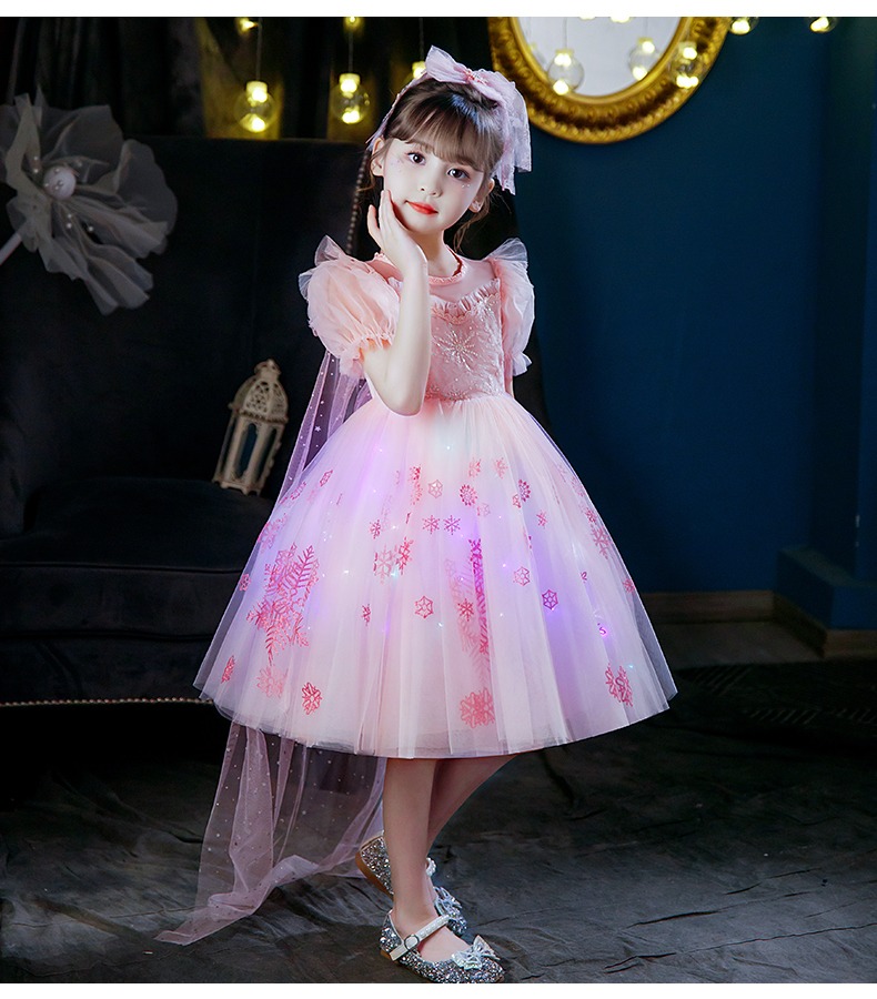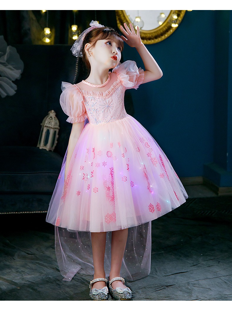 Next Kiss女童發光愛莎公主裙子夏季新款冰雪兒童女孩生日連衣裙