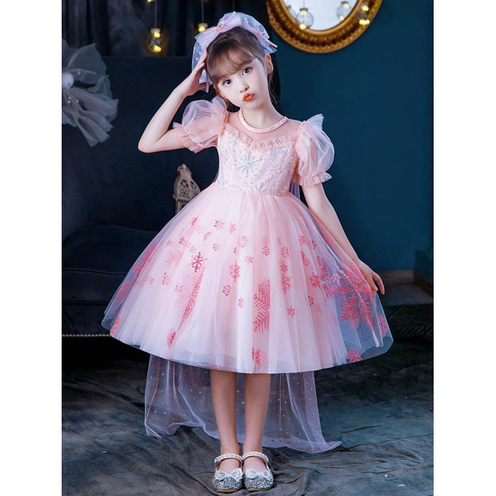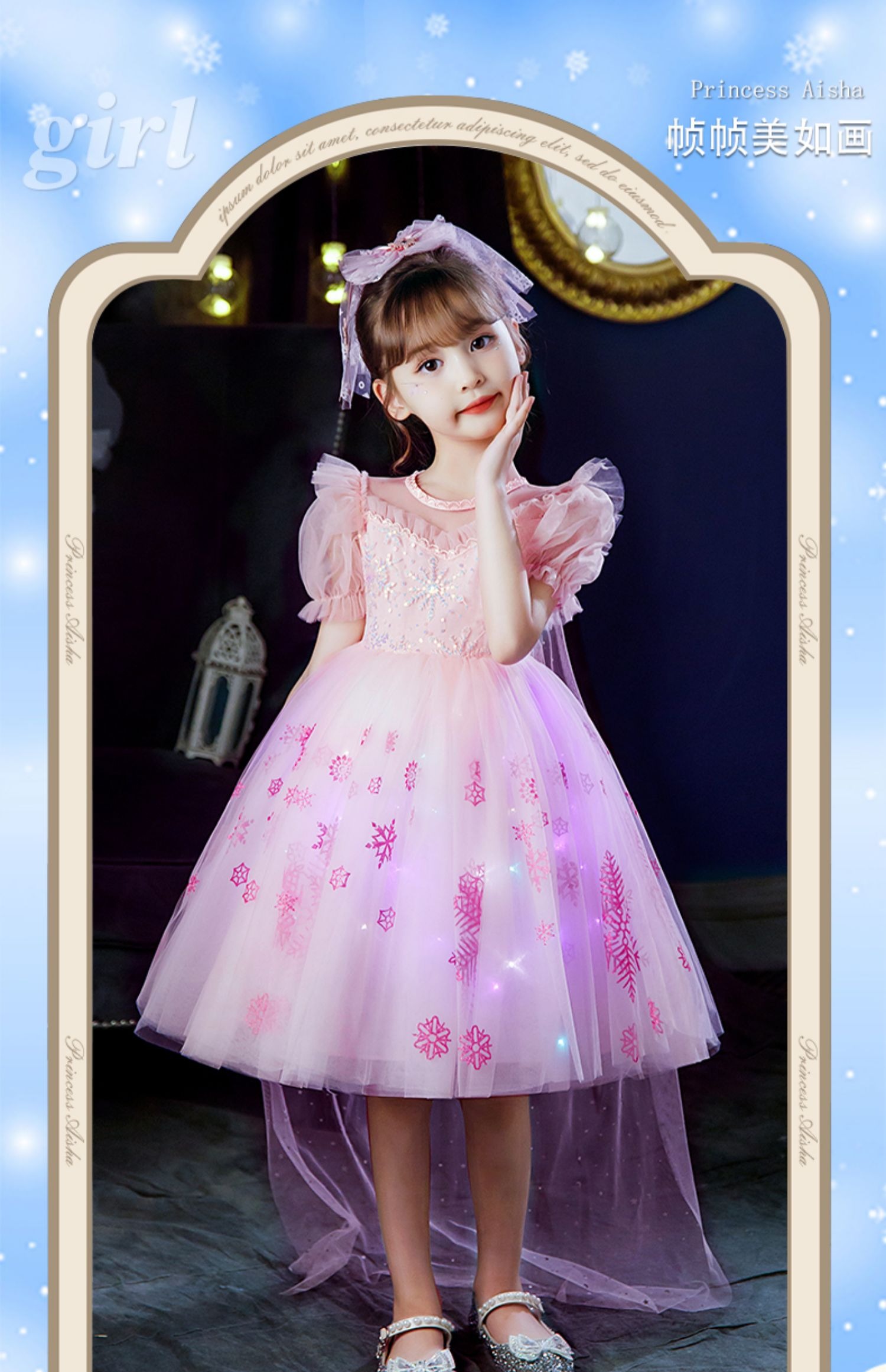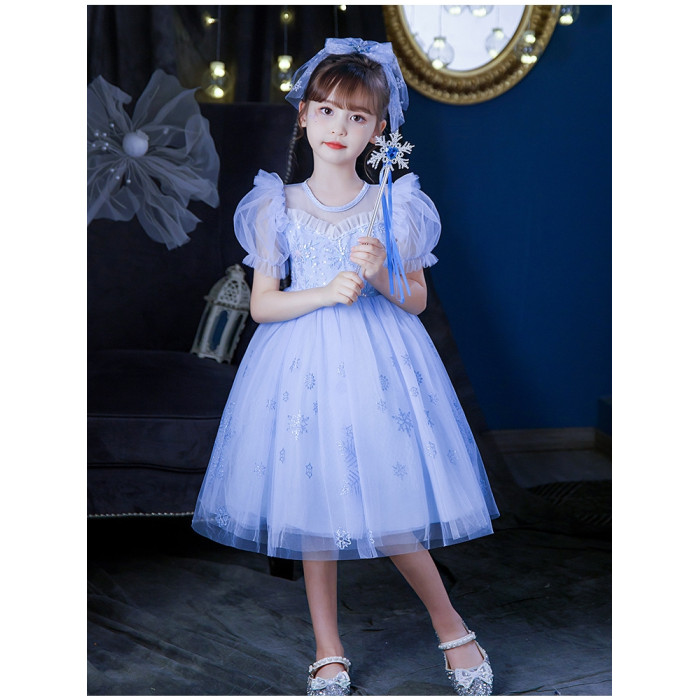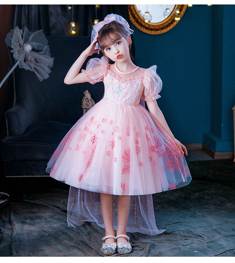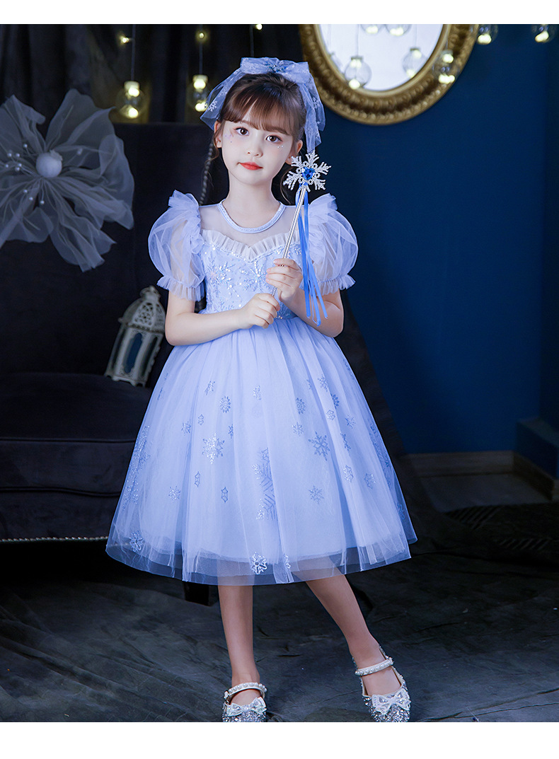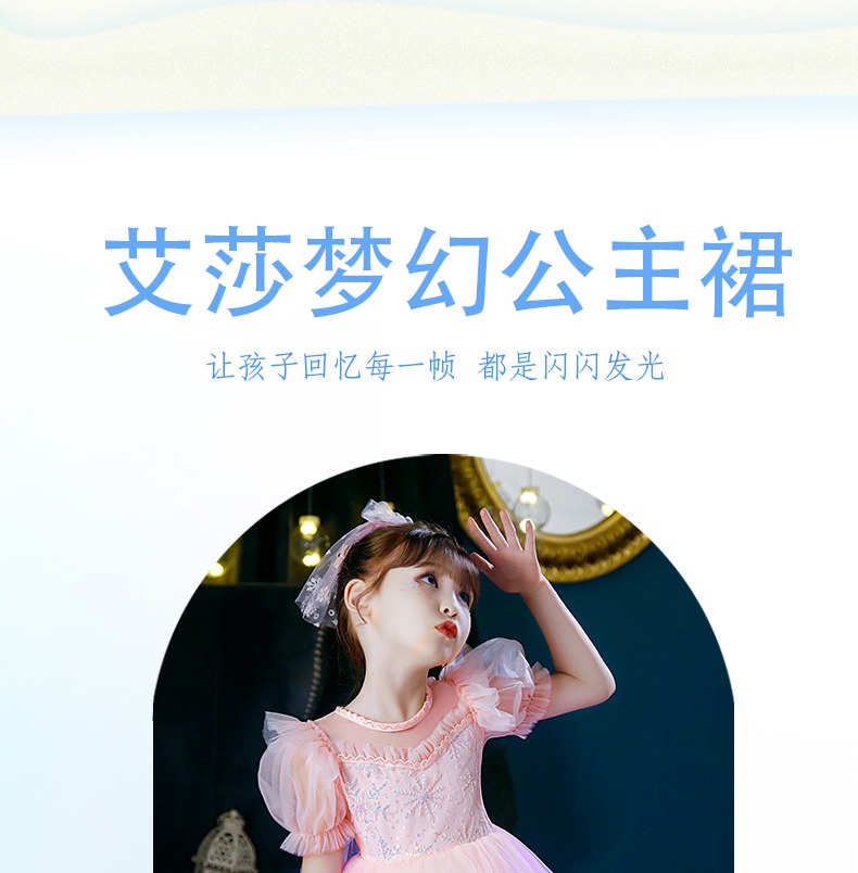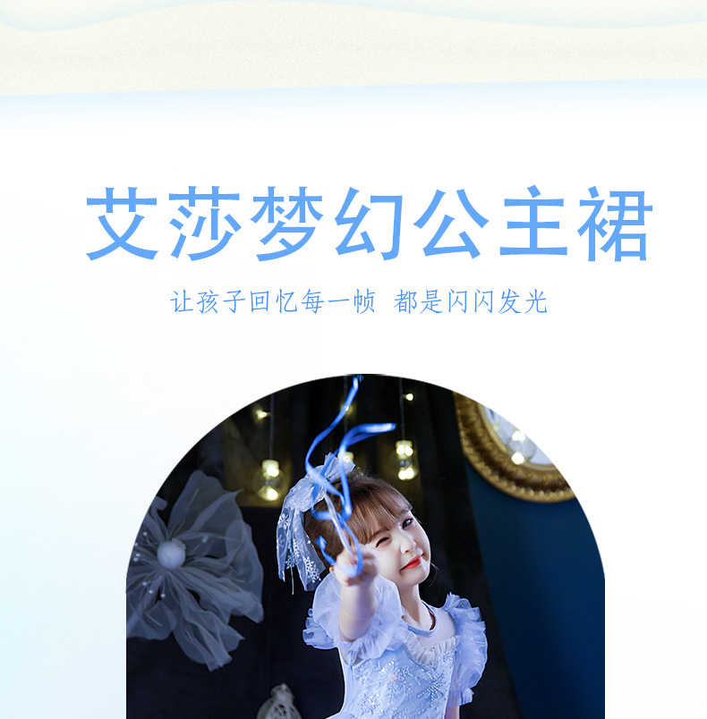 Next Kiss女童發光愛莎公主裙子夏季新款冰雪兒童女孩生日連衣裙