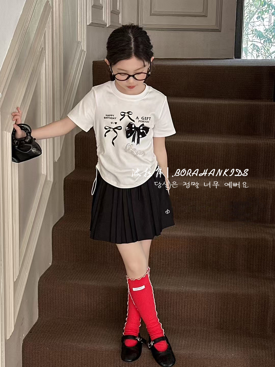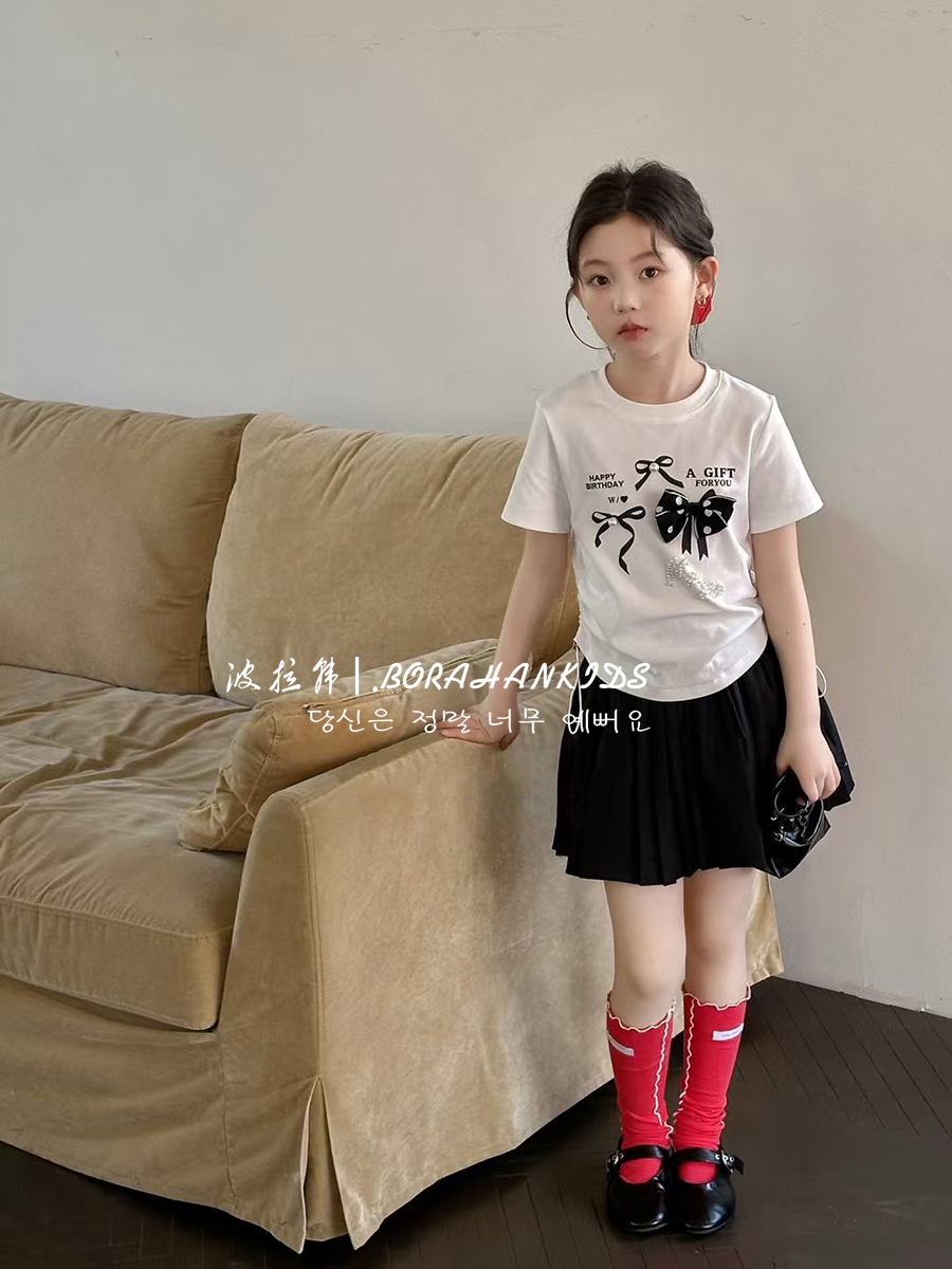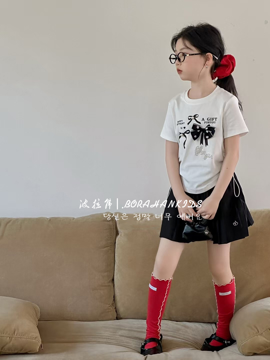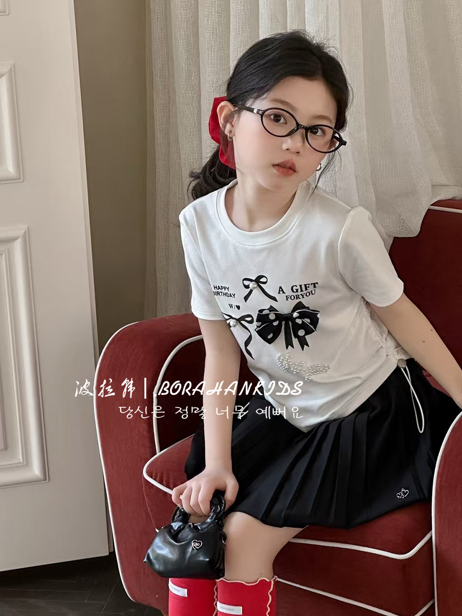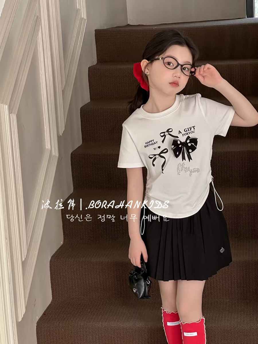 波拉韓女童短袖夏季新款T恤兒童2025短款半袖小女孩時髦體恤上衣