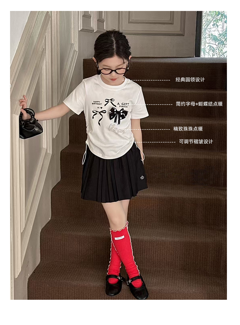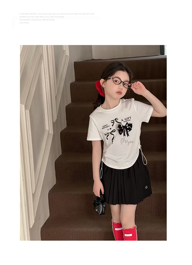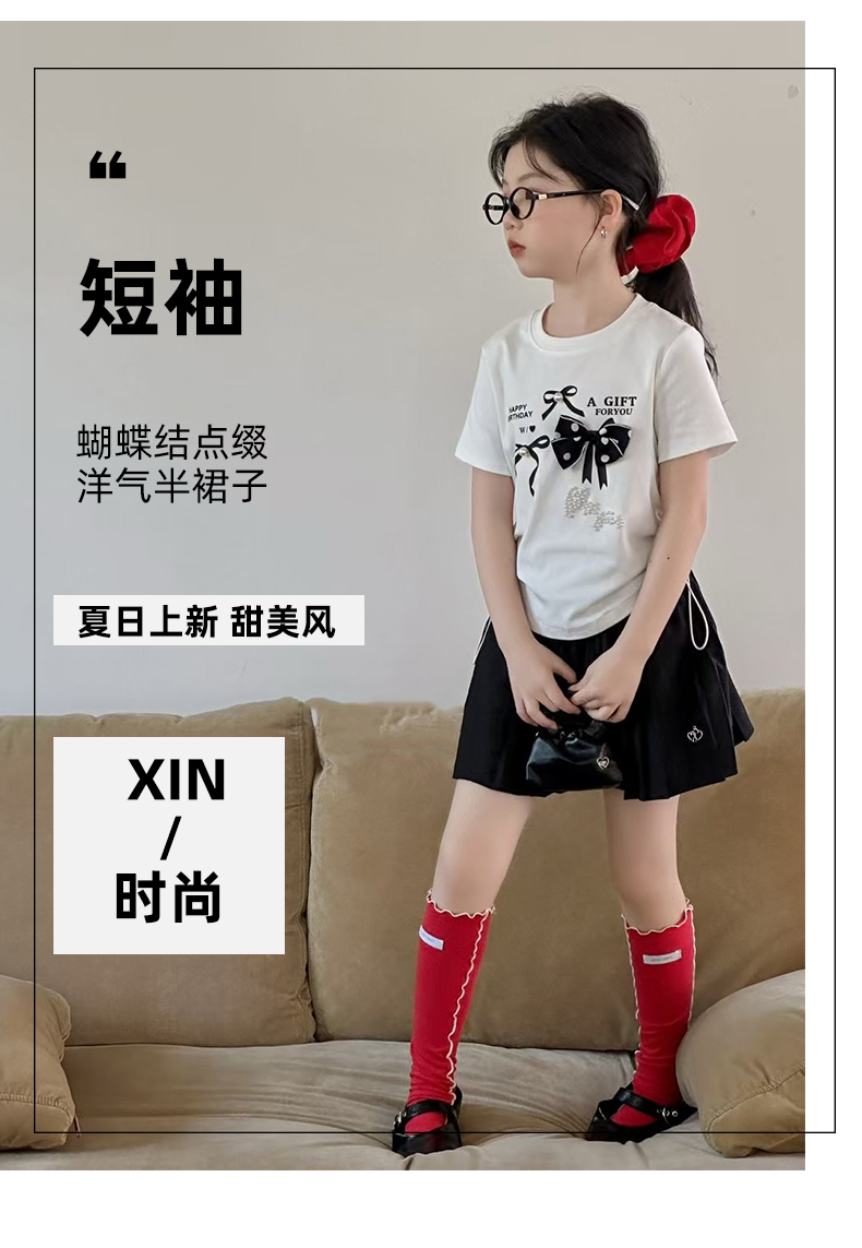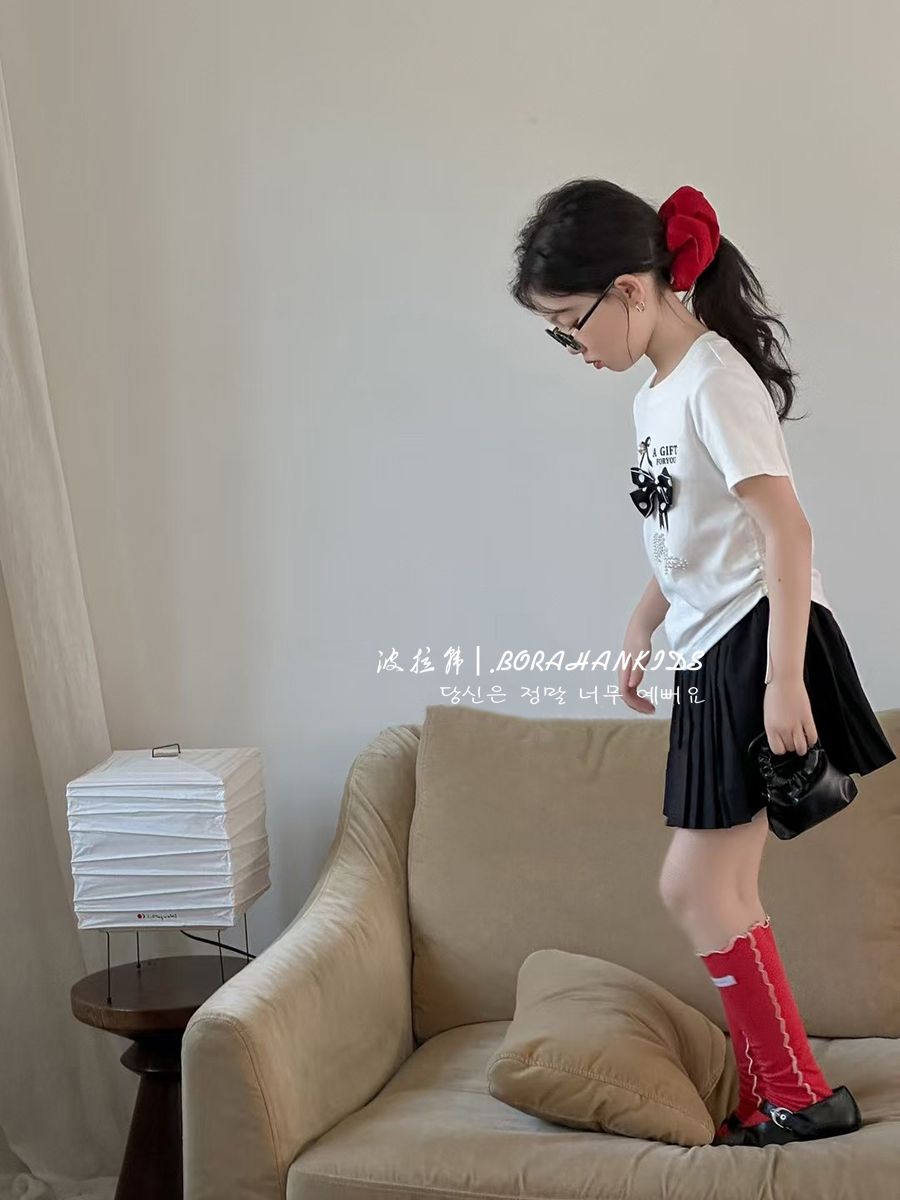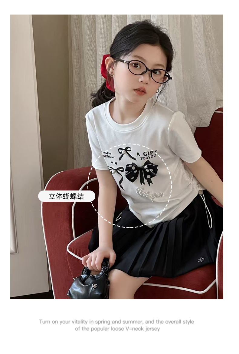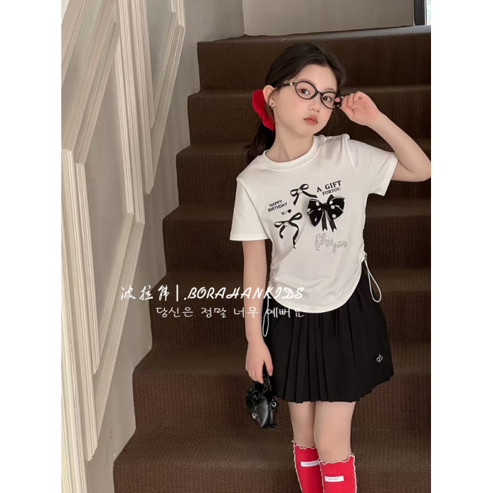 波拉韓女童短袖夏季新款T恤兒童2025短款半袖小女孩時髦體恤上衣