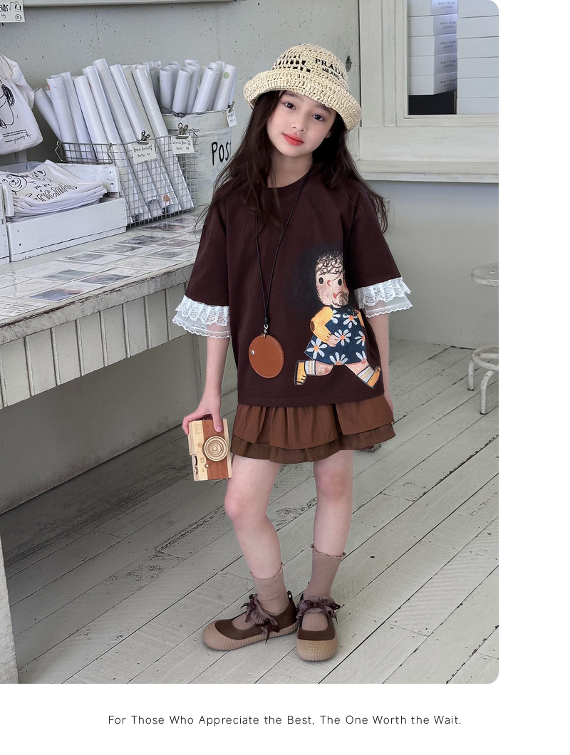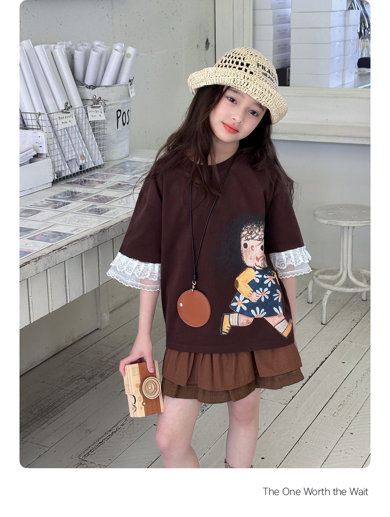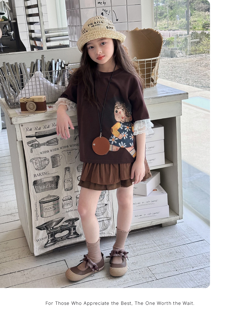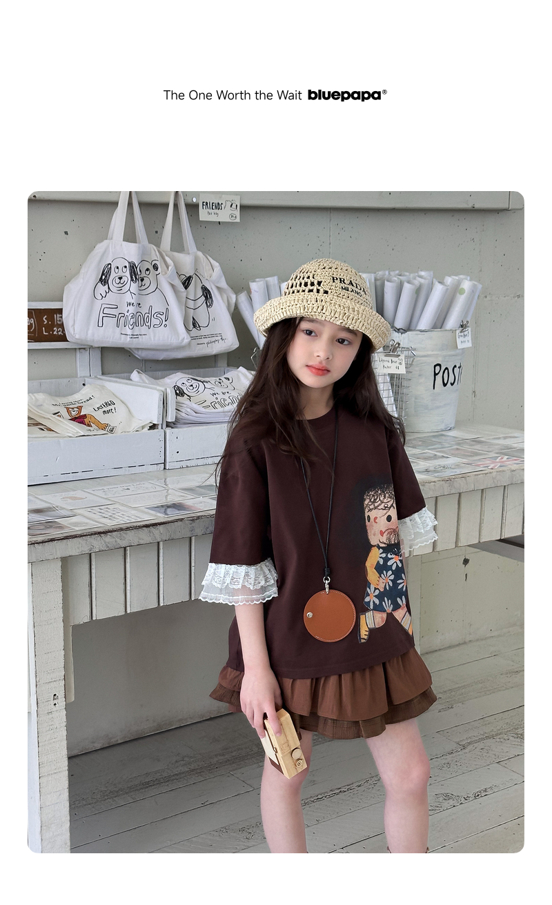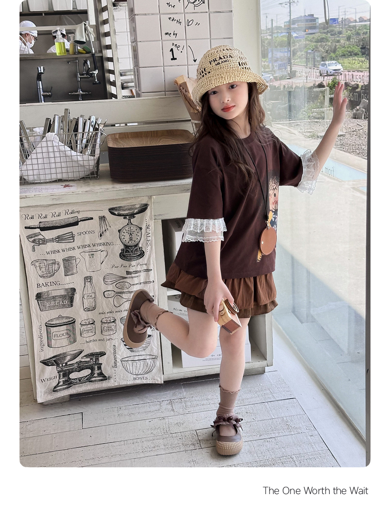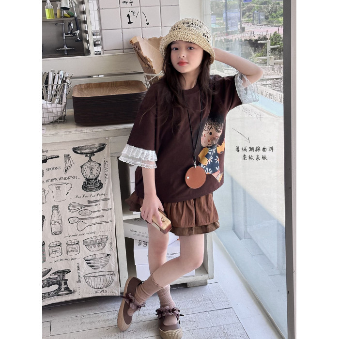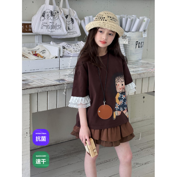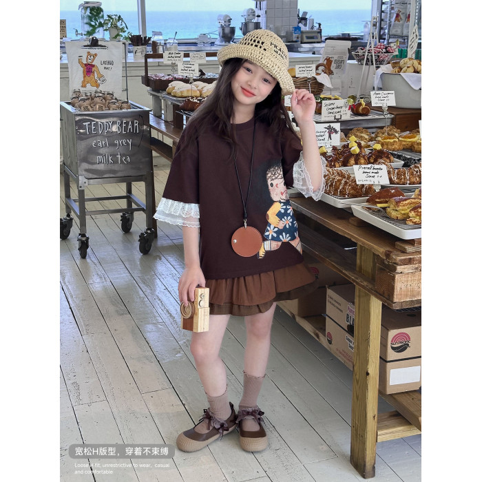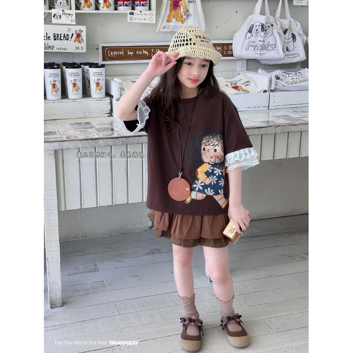 【繪影】藍小爸童裝女童蕾絲拼接短袖夏季新款可愛印花休閒T恤