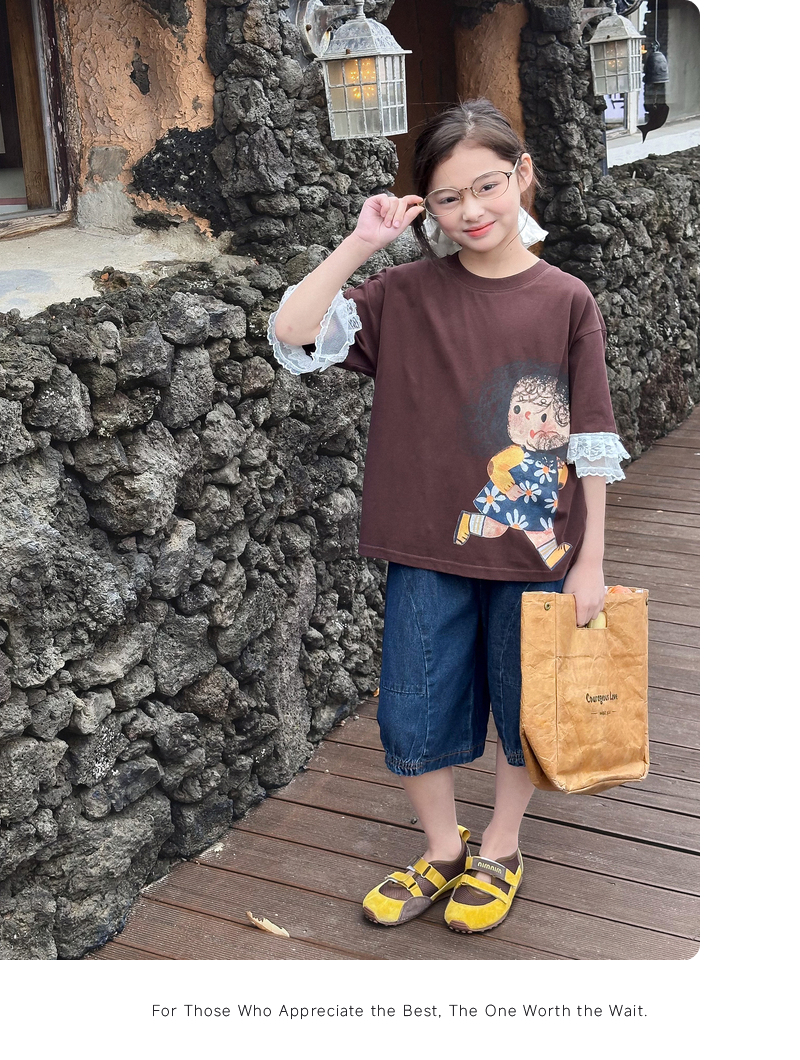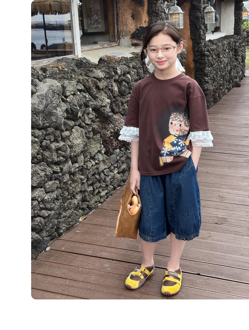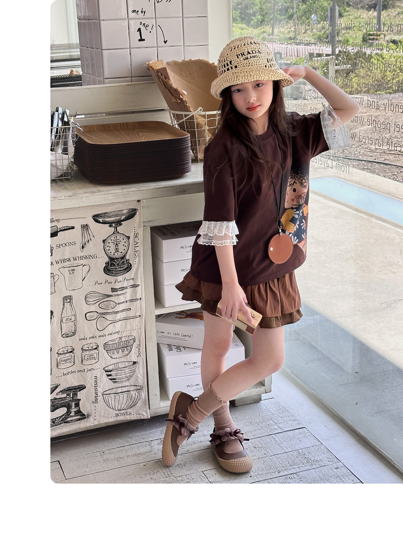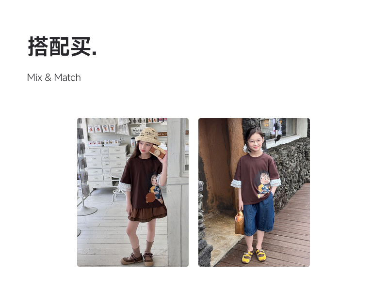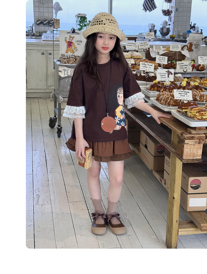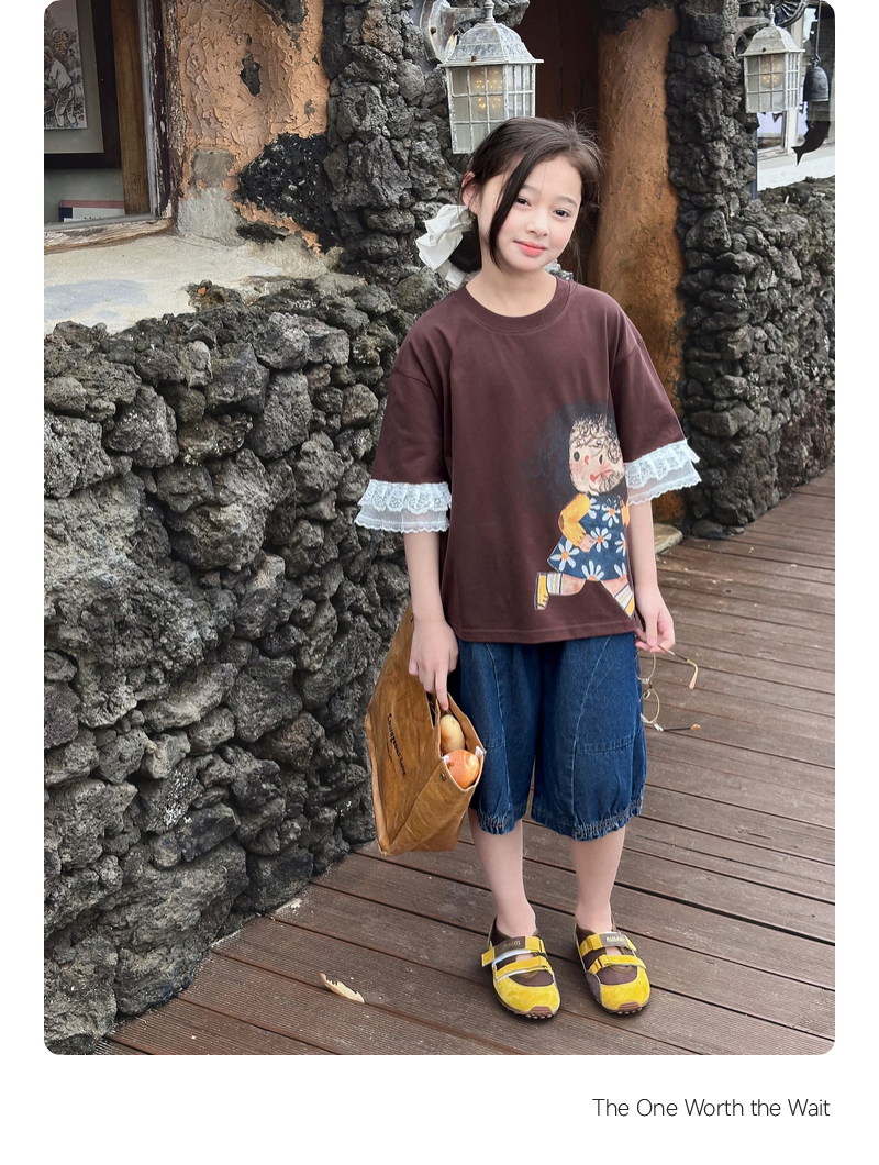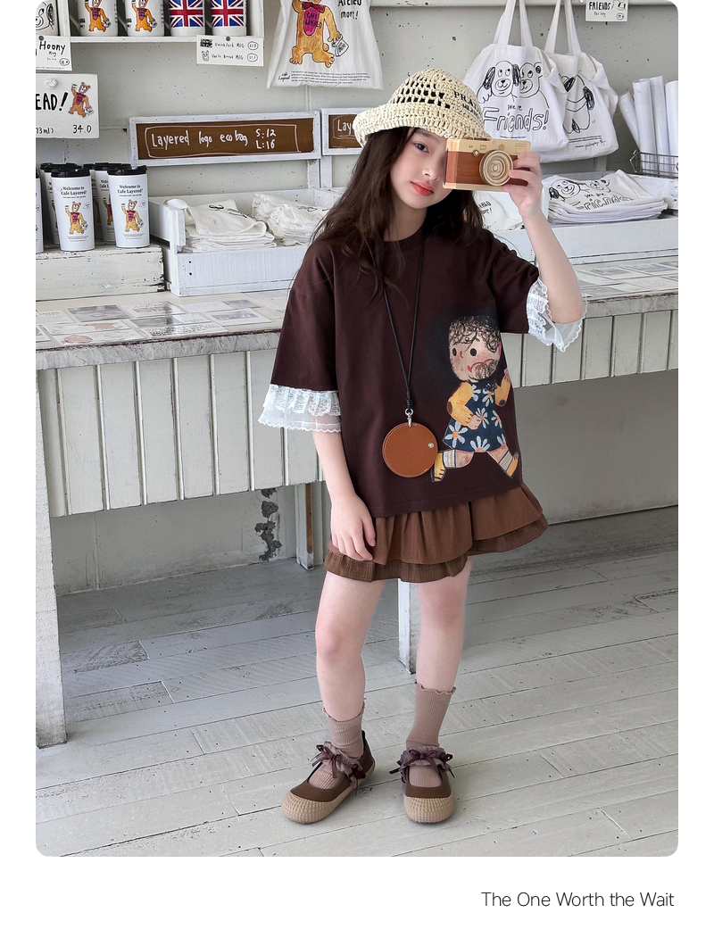 【繪影】藍小爸童裝女童蕾絲拼接短袖夏季新款可愛印花休閒T恤