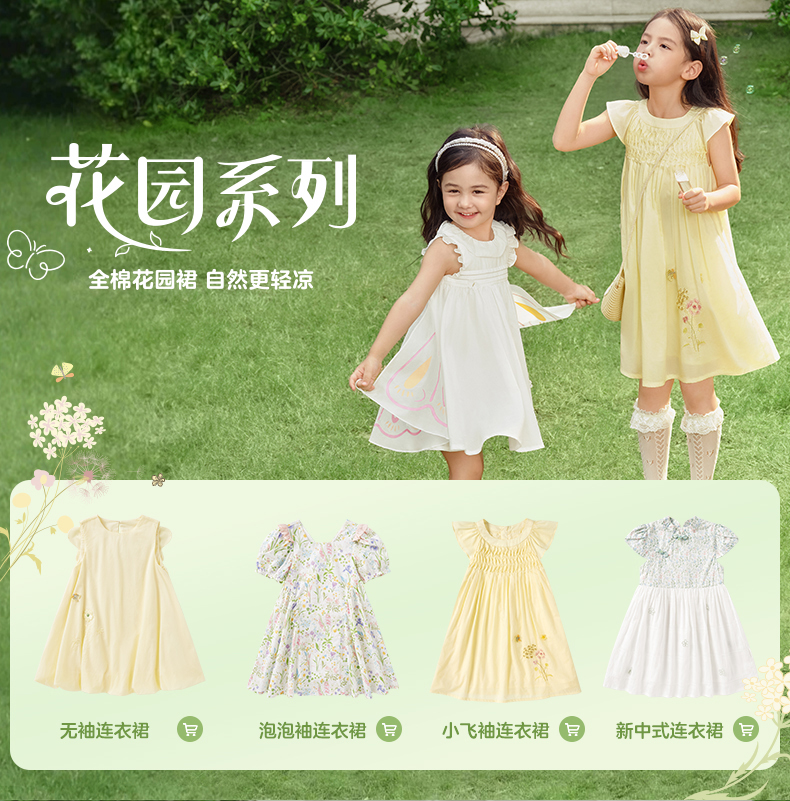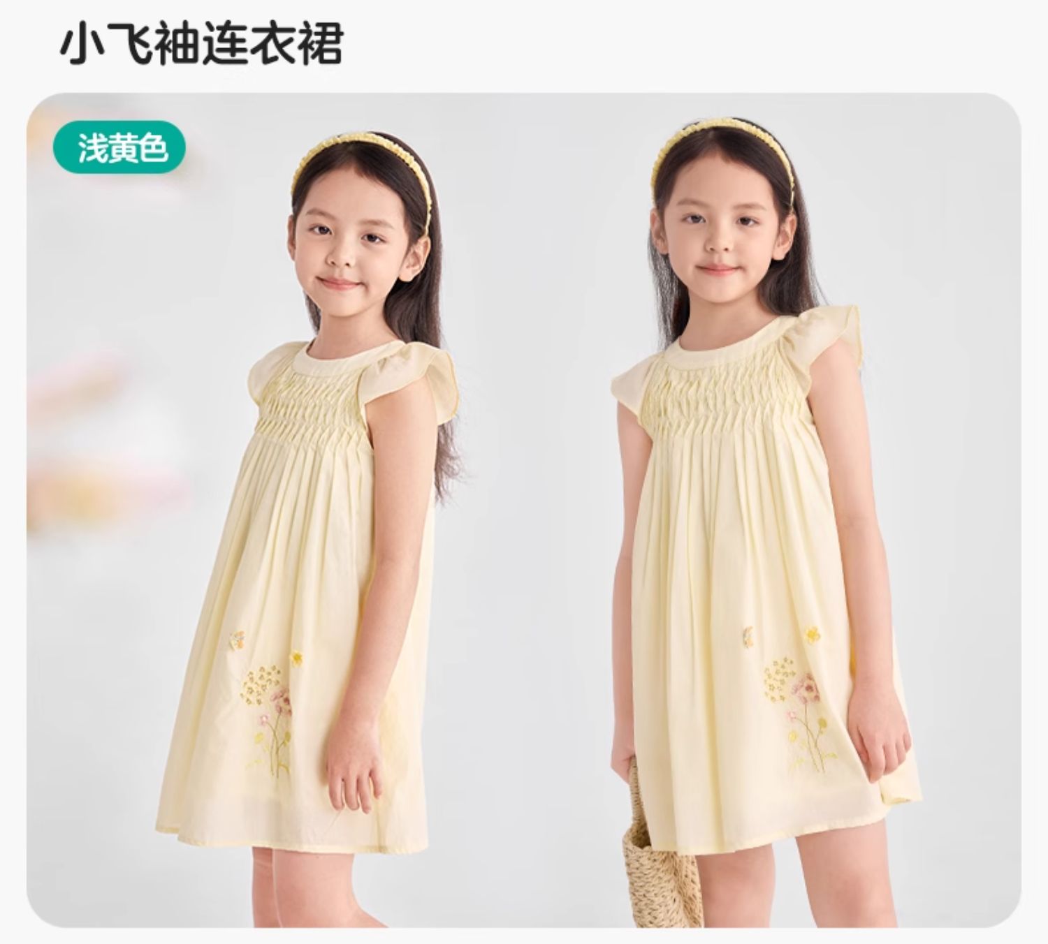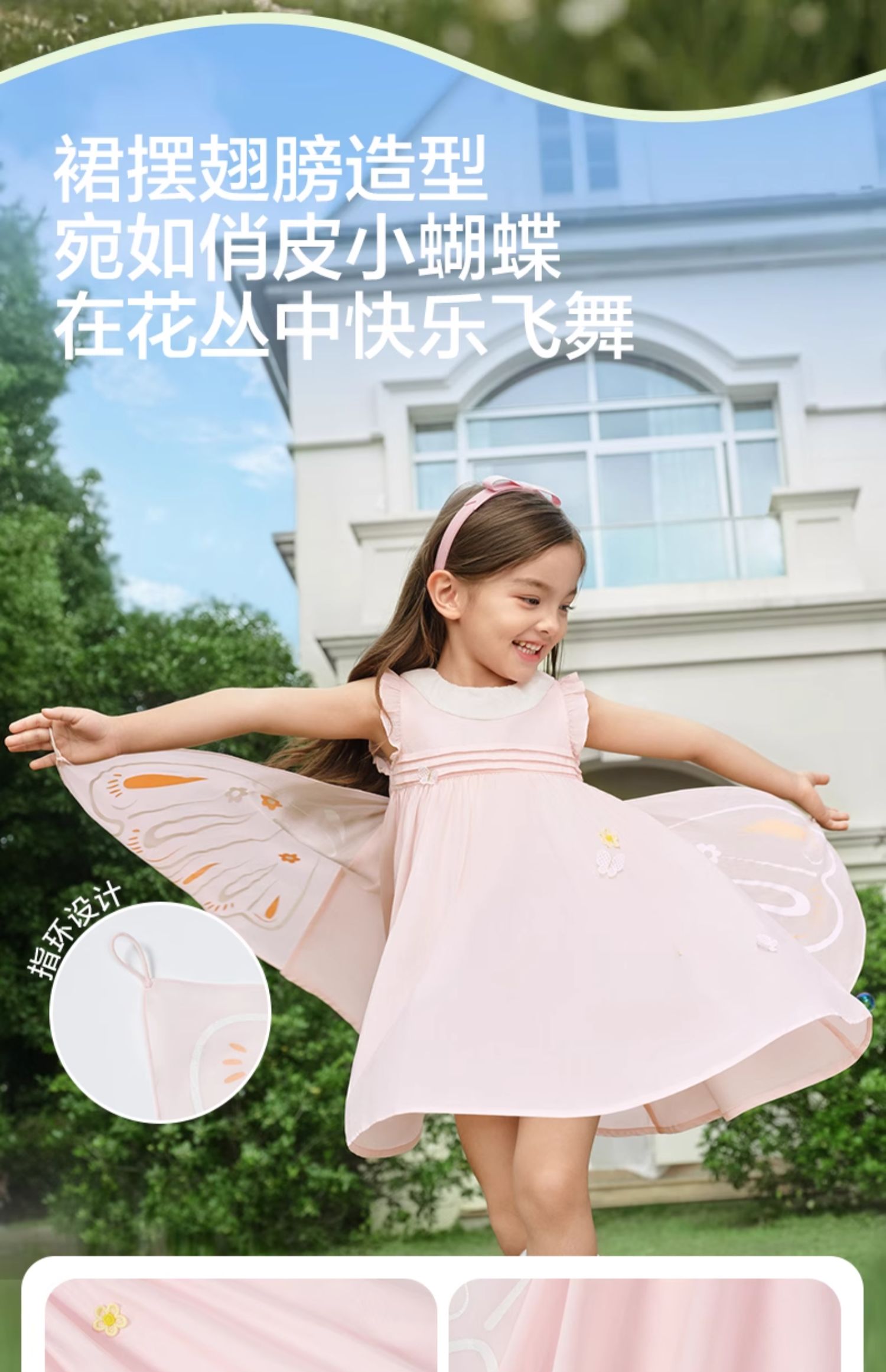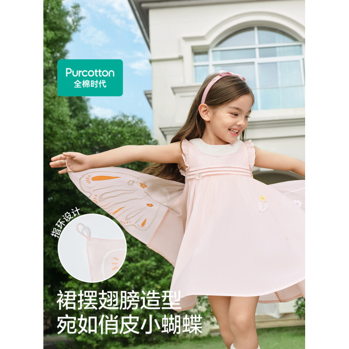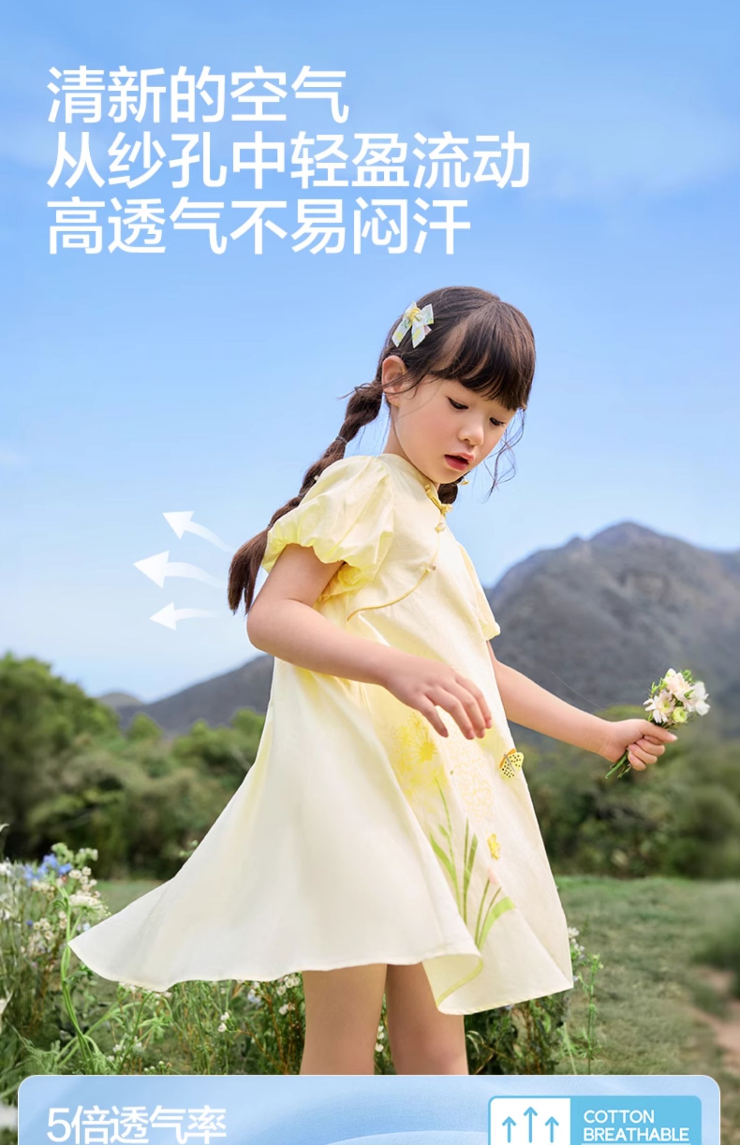 全棉時代女童連衣裙短袖25夏季新款女孩涼感裙子短袖公主裙A字裙