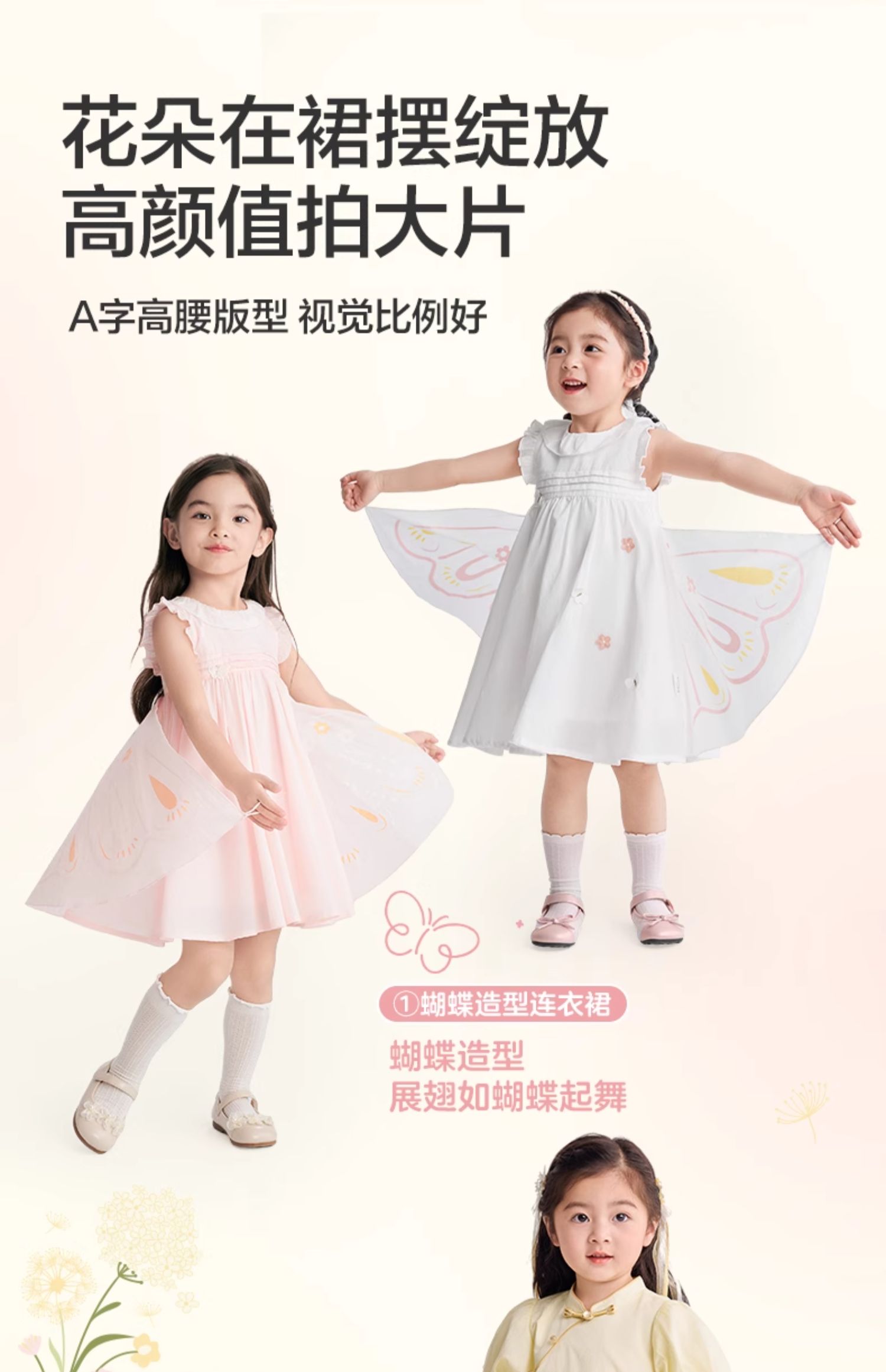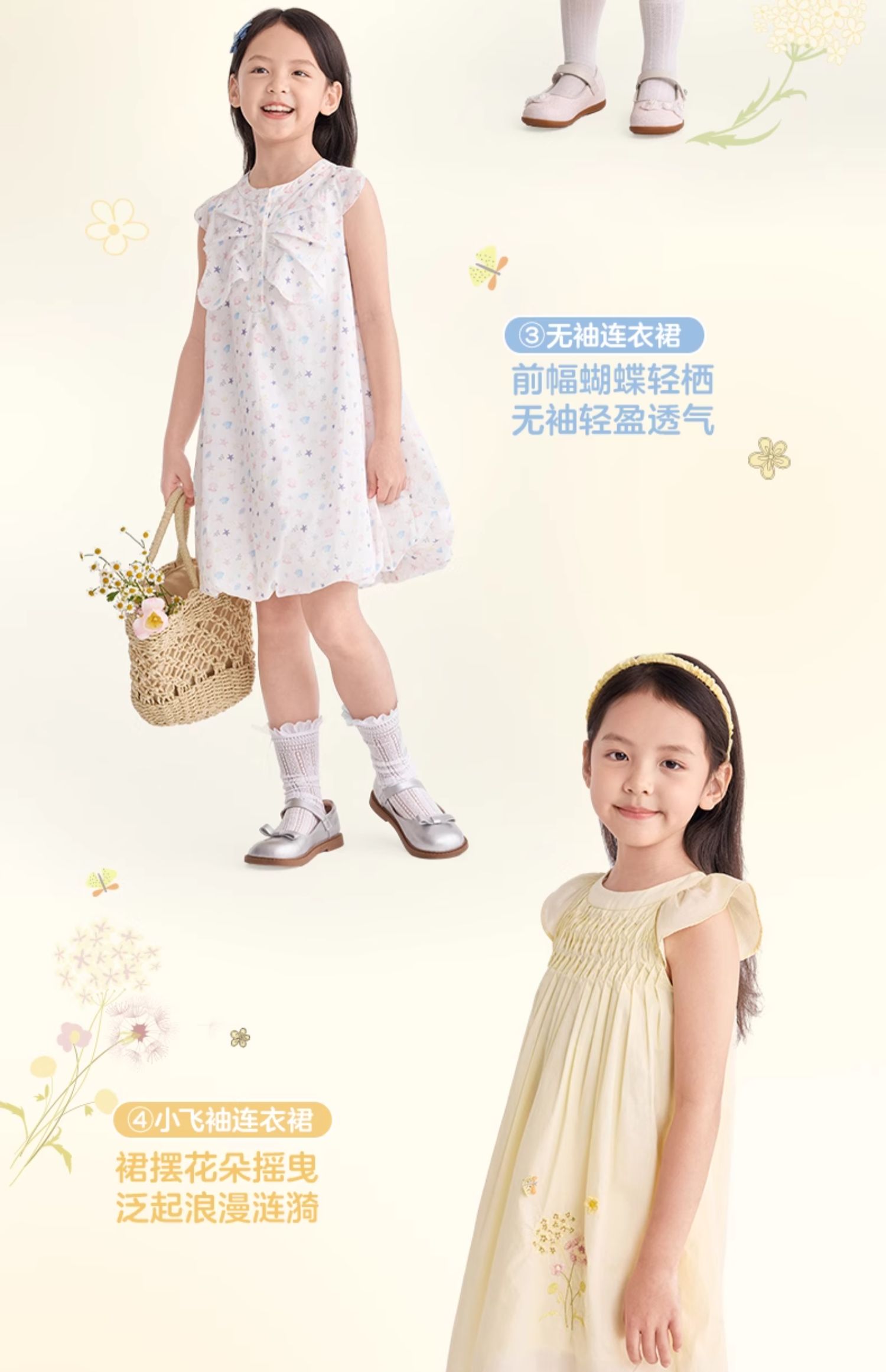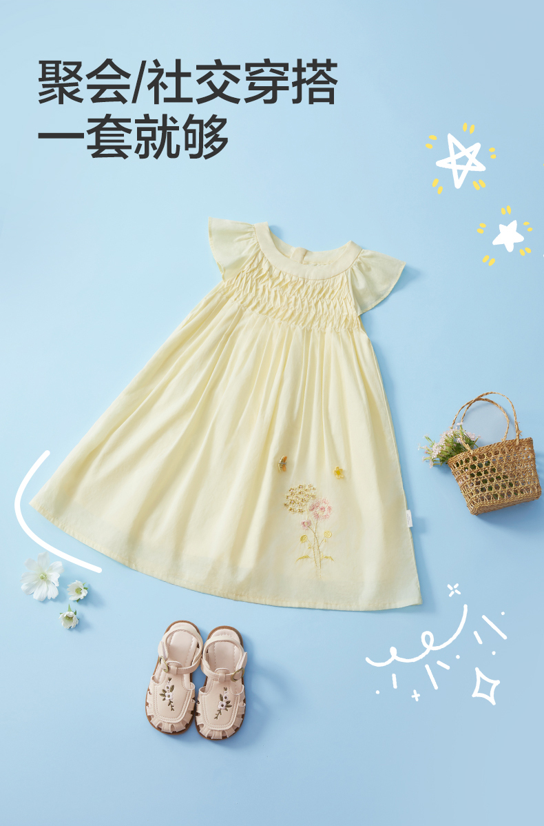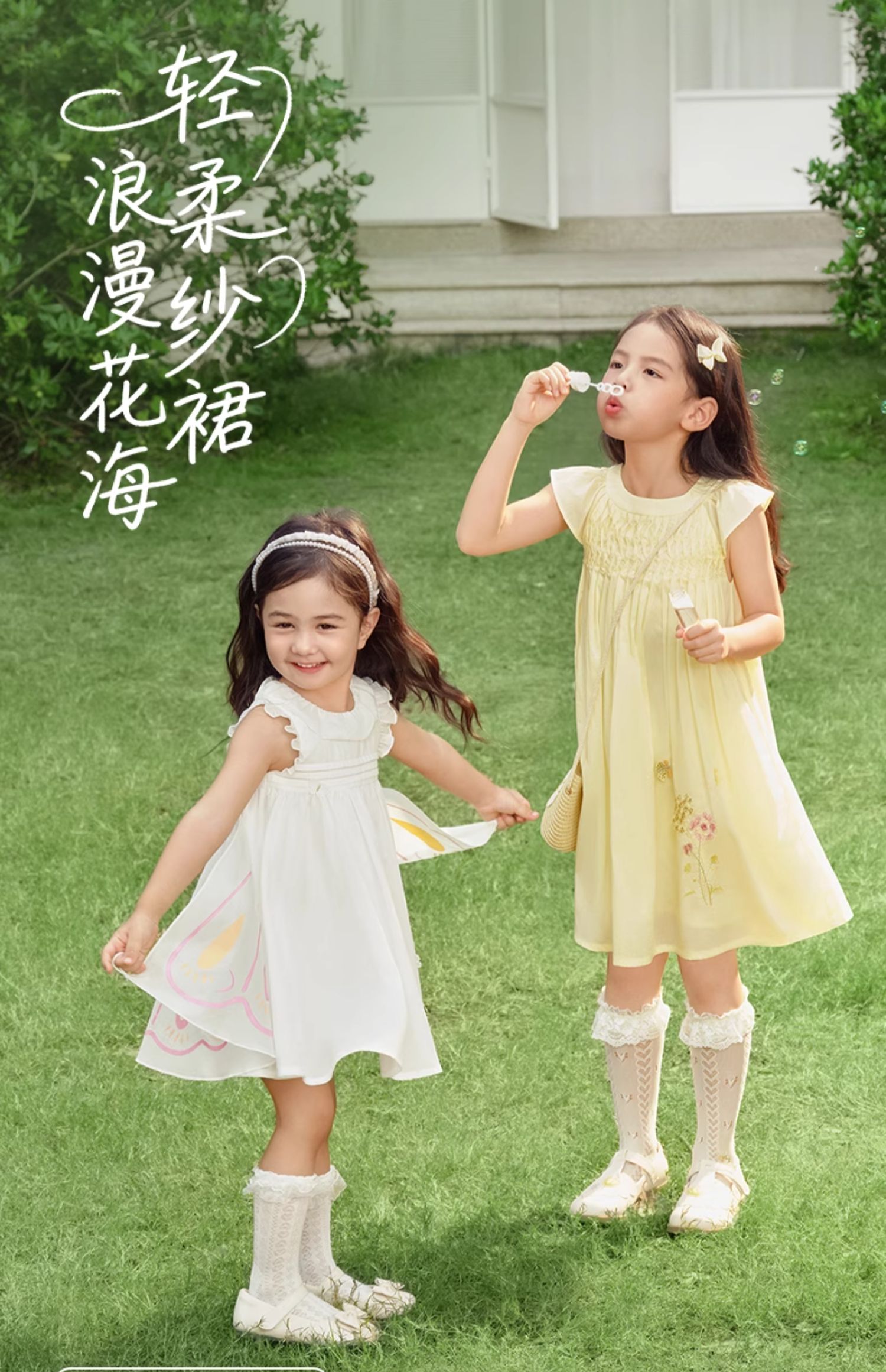 全棉時代女童連衣裙短袖25夏季新款女孩涼感裙子短袖公主裙A字裙
