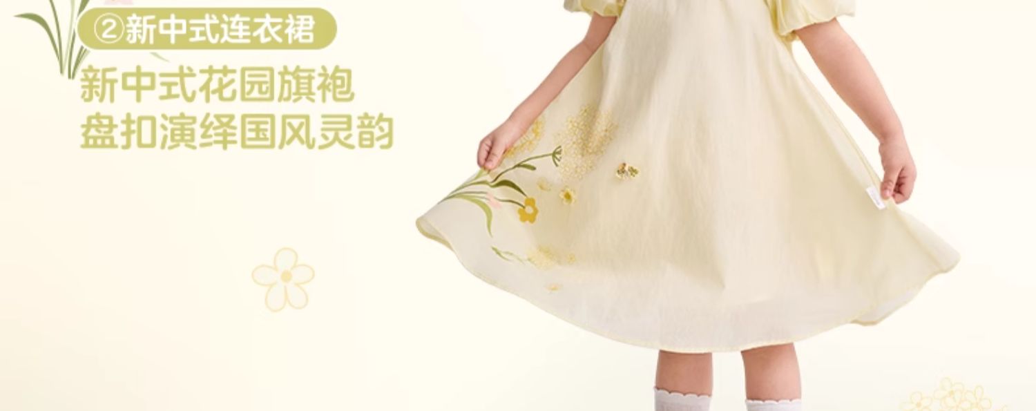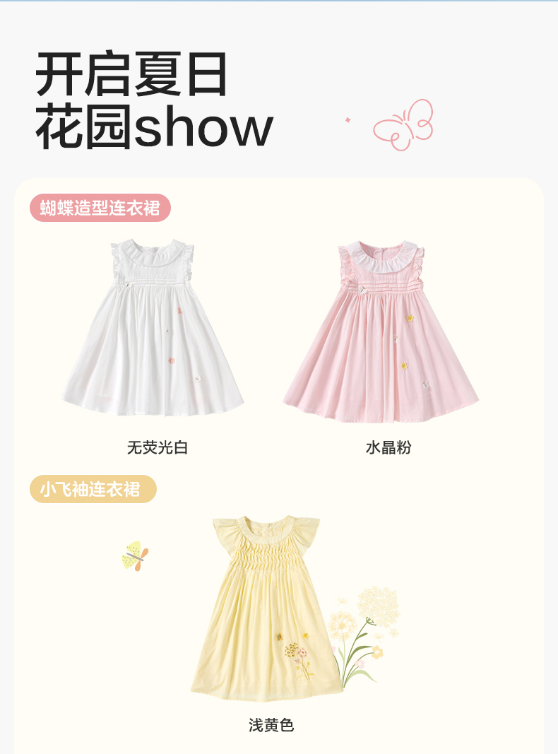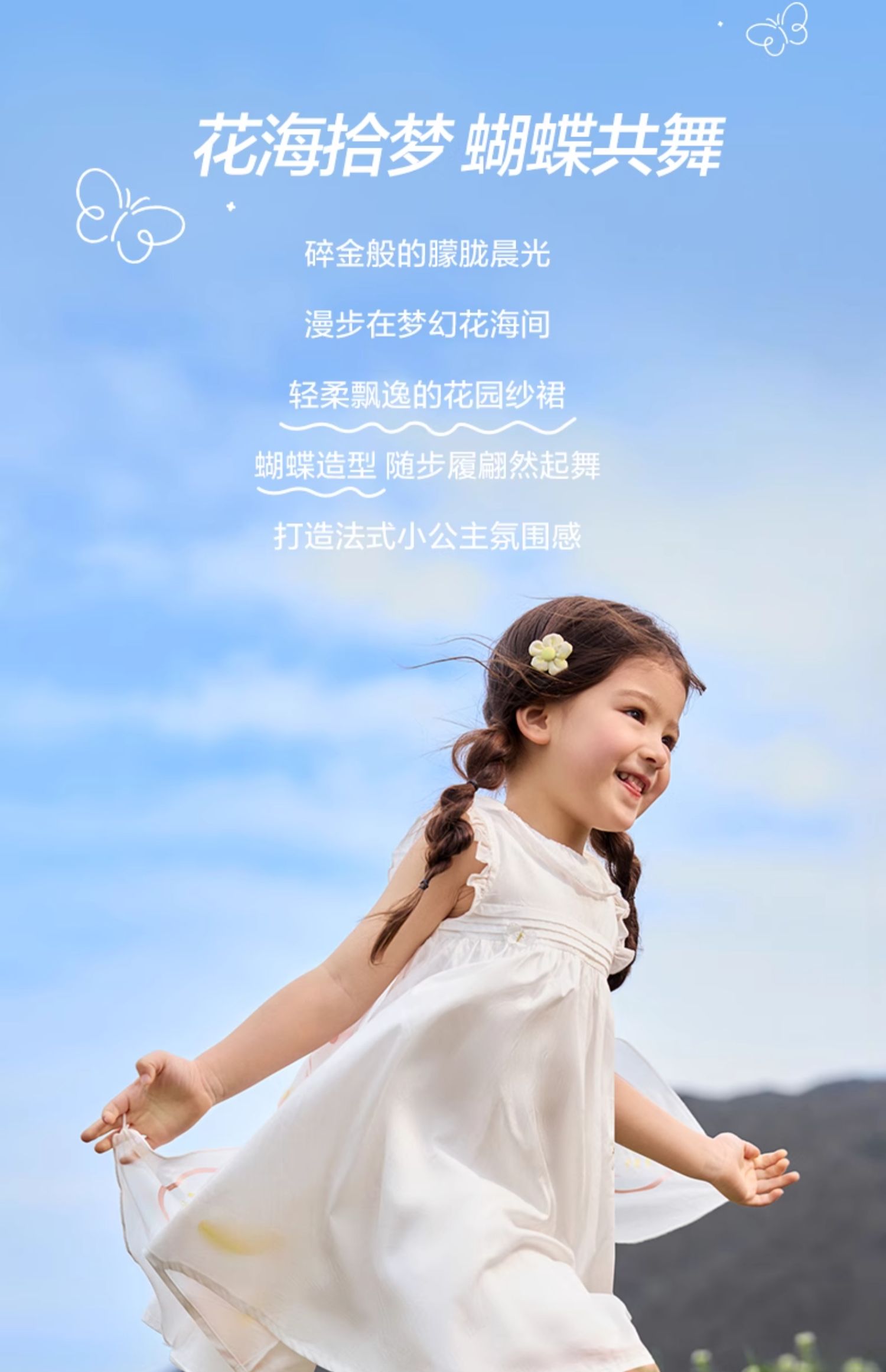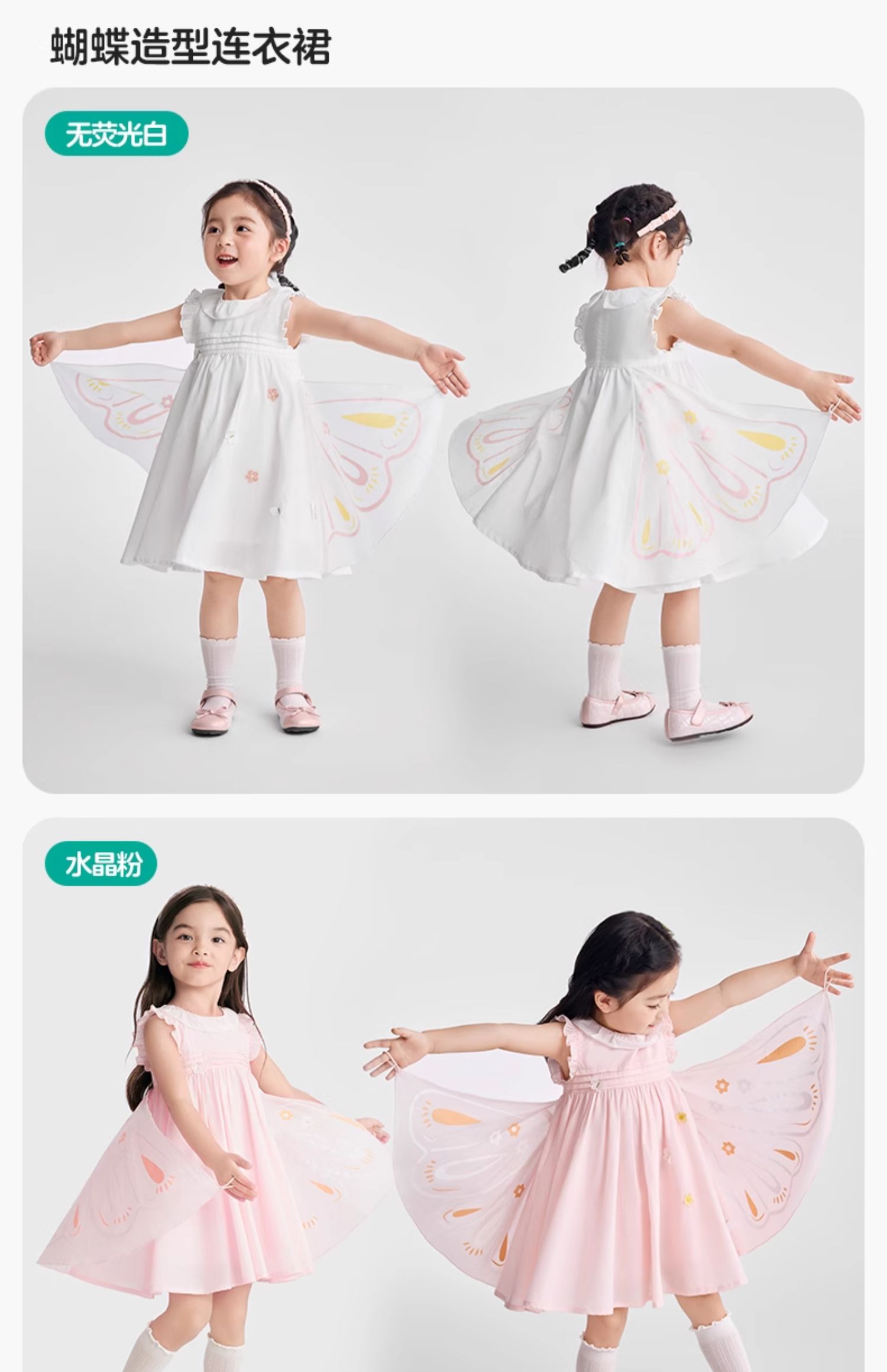 全棉時代女童連衣裙短袖25夏季新款女孩涼感裙子短袖公主裙A字裙