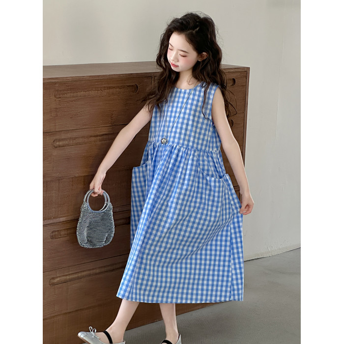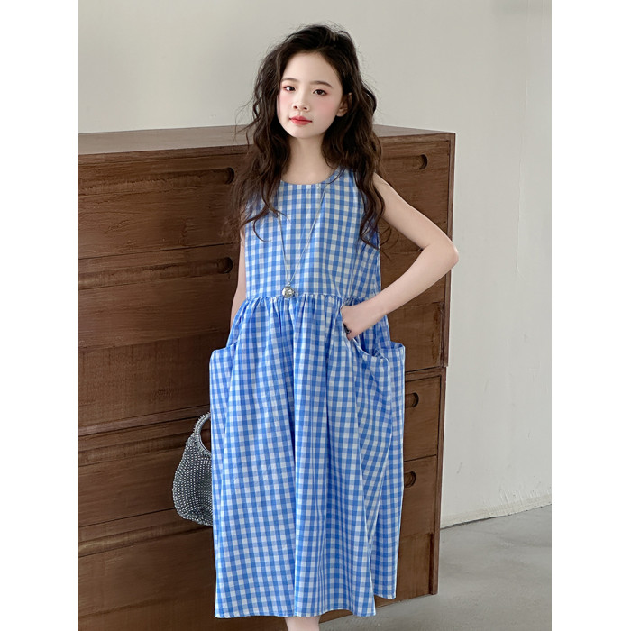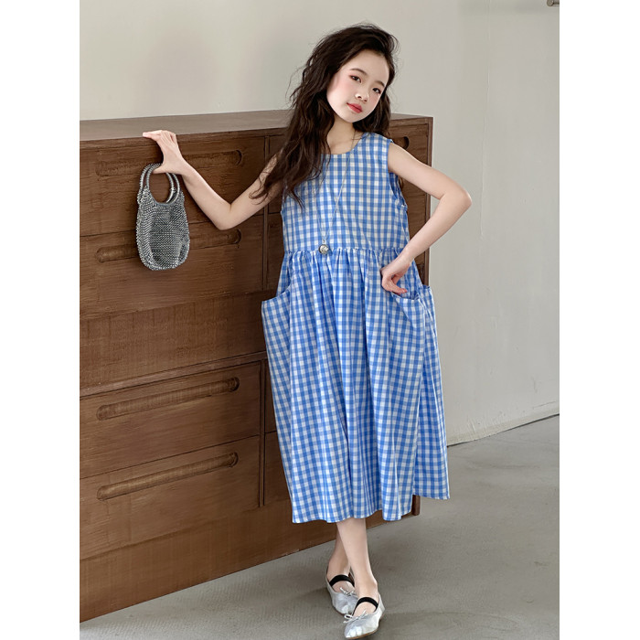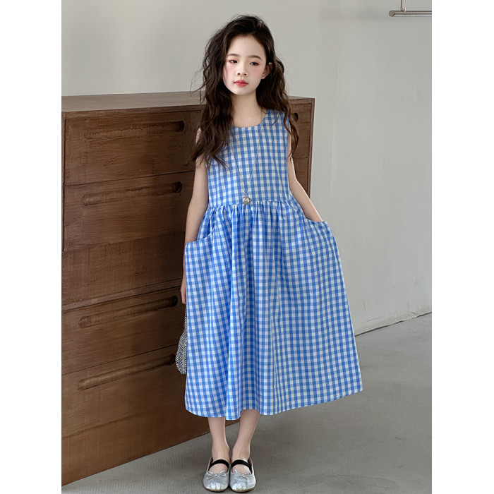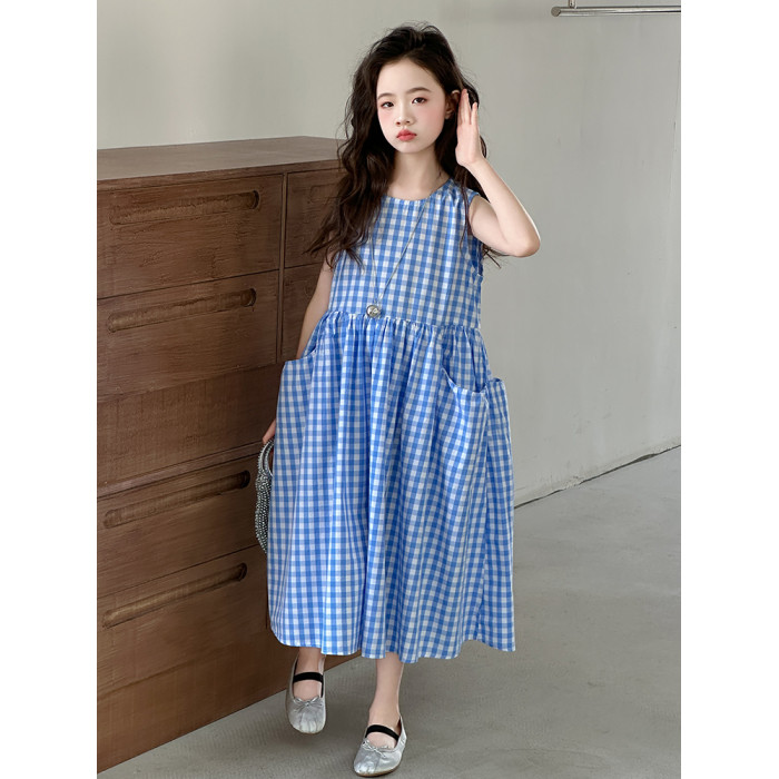 女童格子背心裙子夏季絕美連衣裙2025新款韓系純棉兒童夏裝公主裙