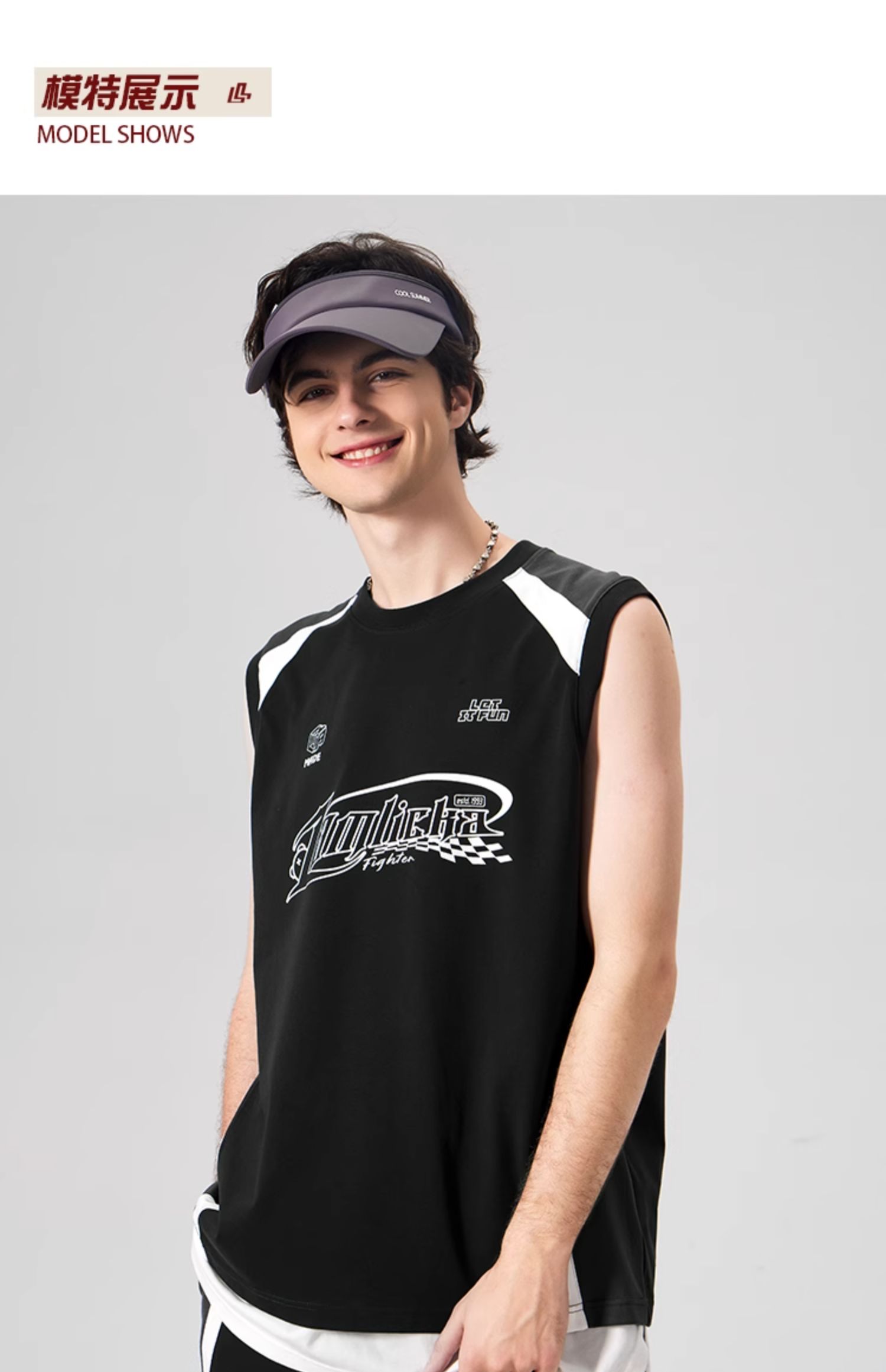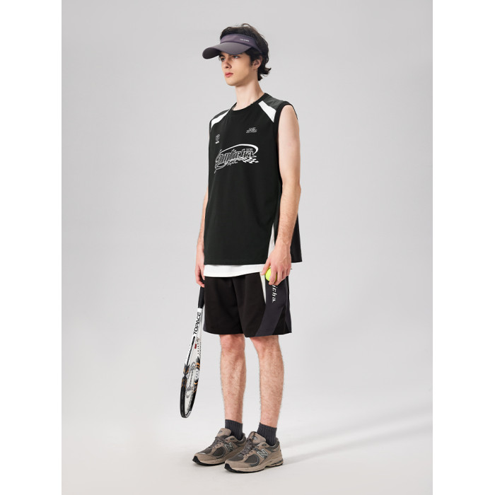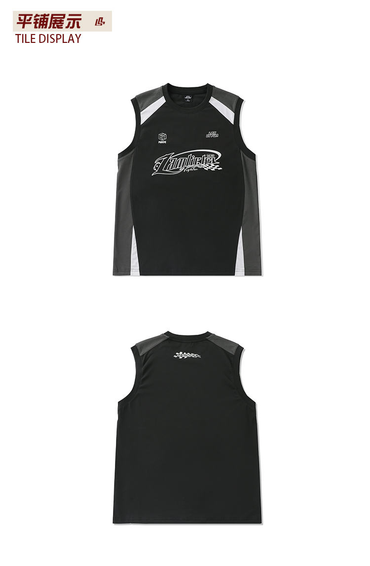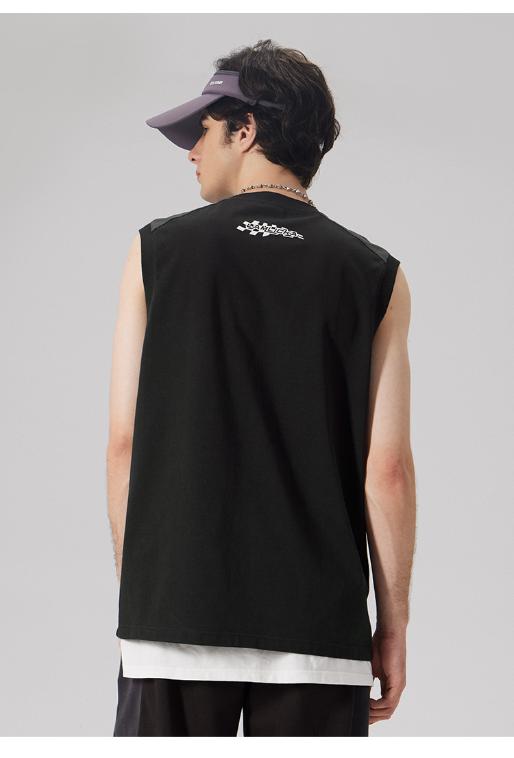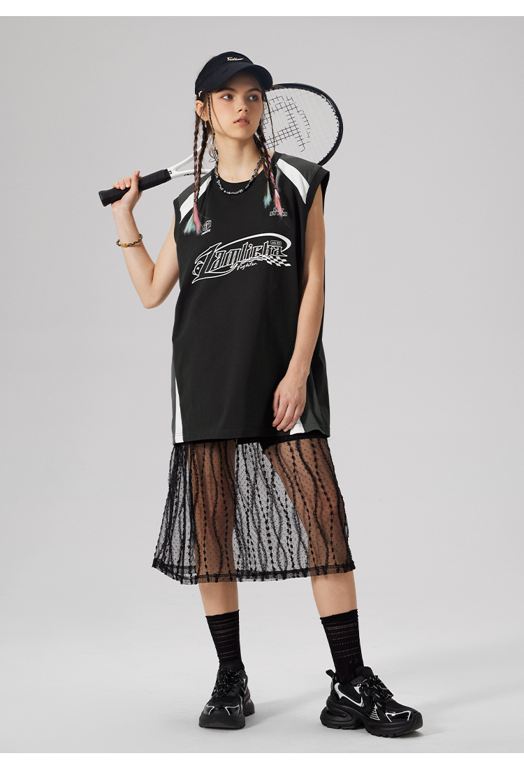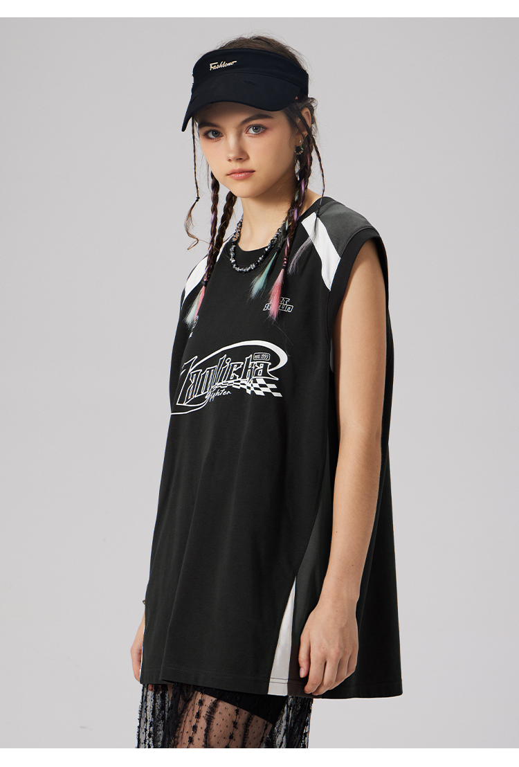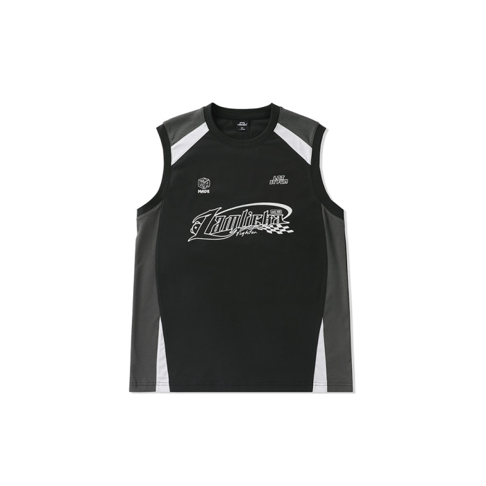 LAMLICKA美式復古字母運動背心男夏季新款拼接情侶裝無袖T恤寬松
