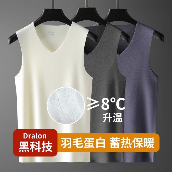 羽毛蛋白保暖背心男士冬季新款加厚磨毛坎肩打底上衣德絨無痕內衣