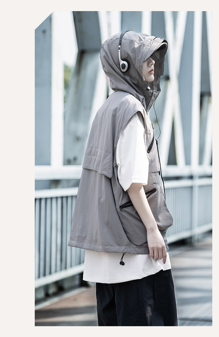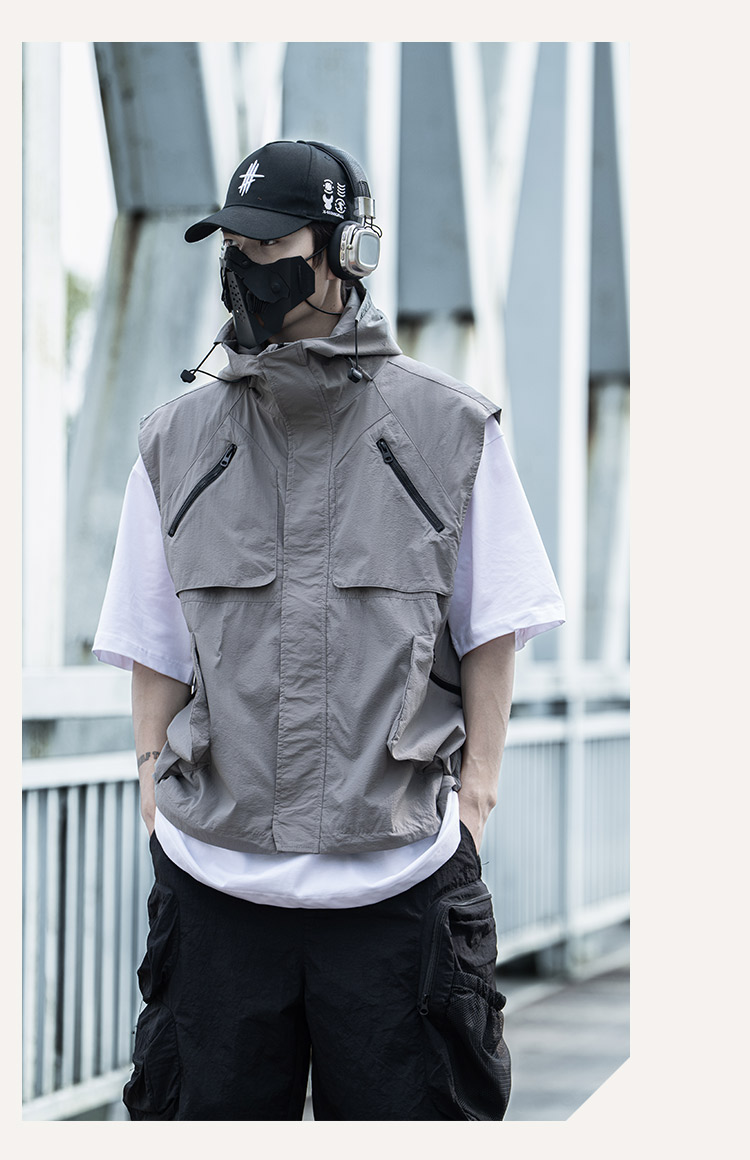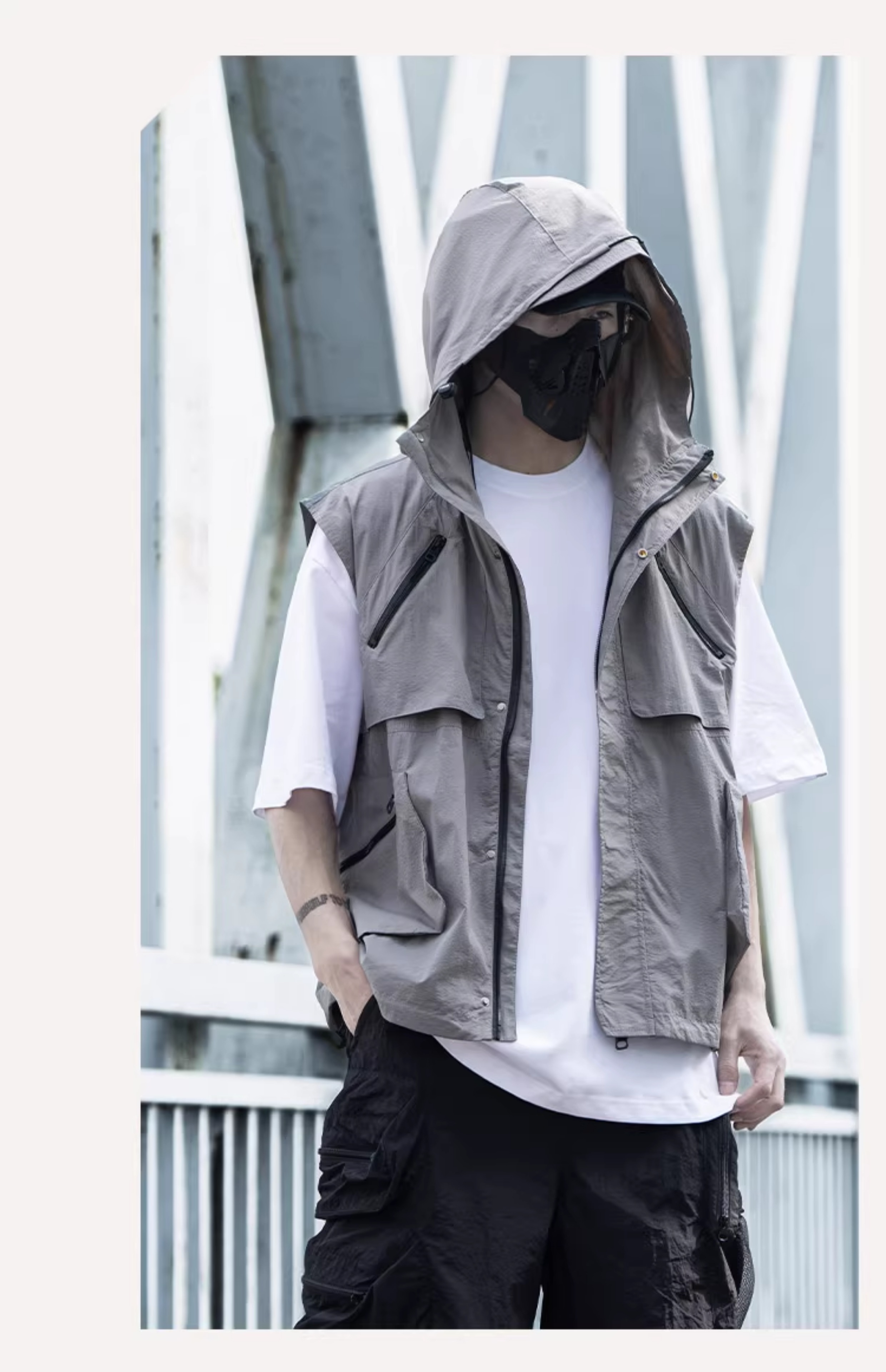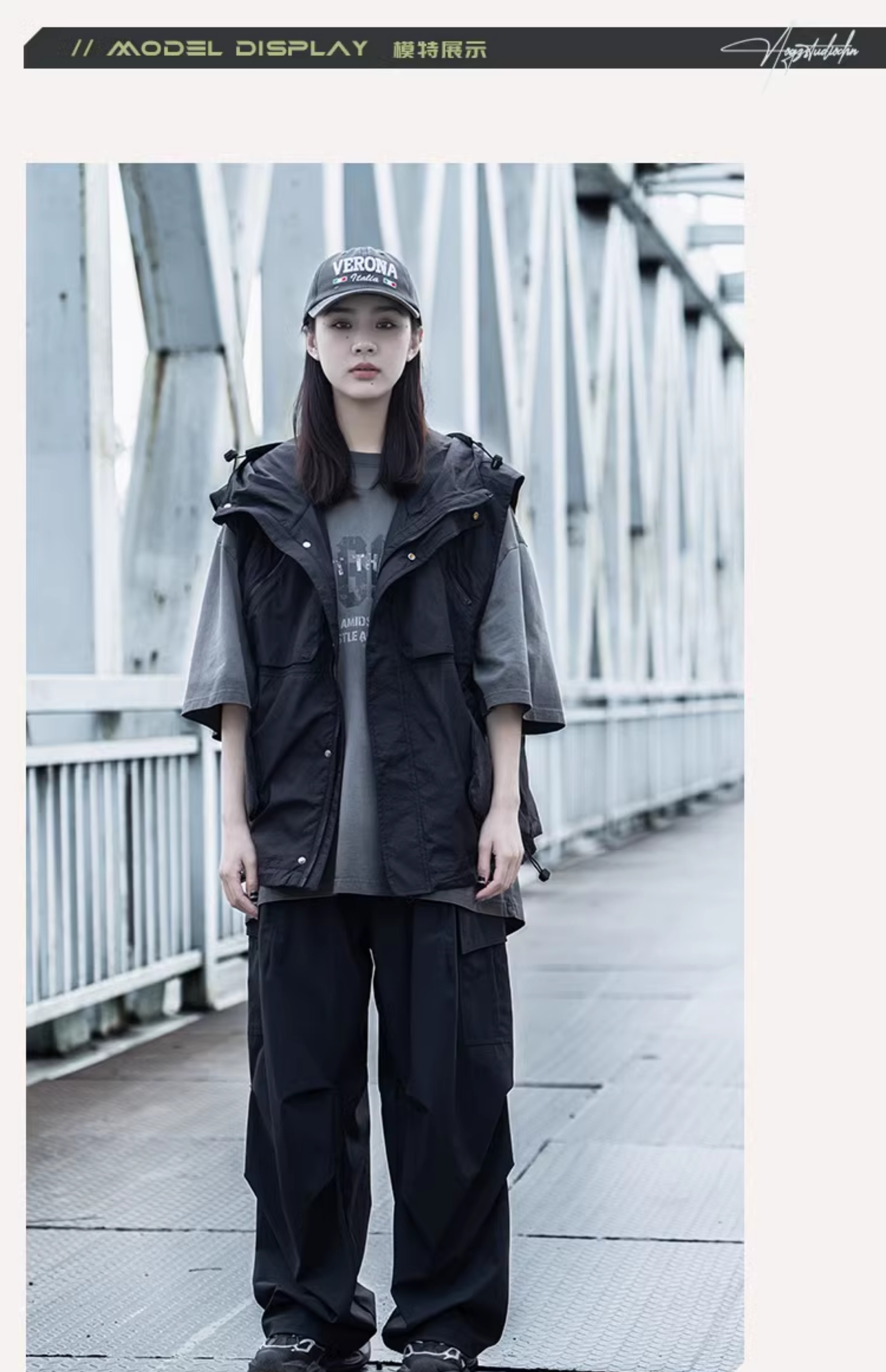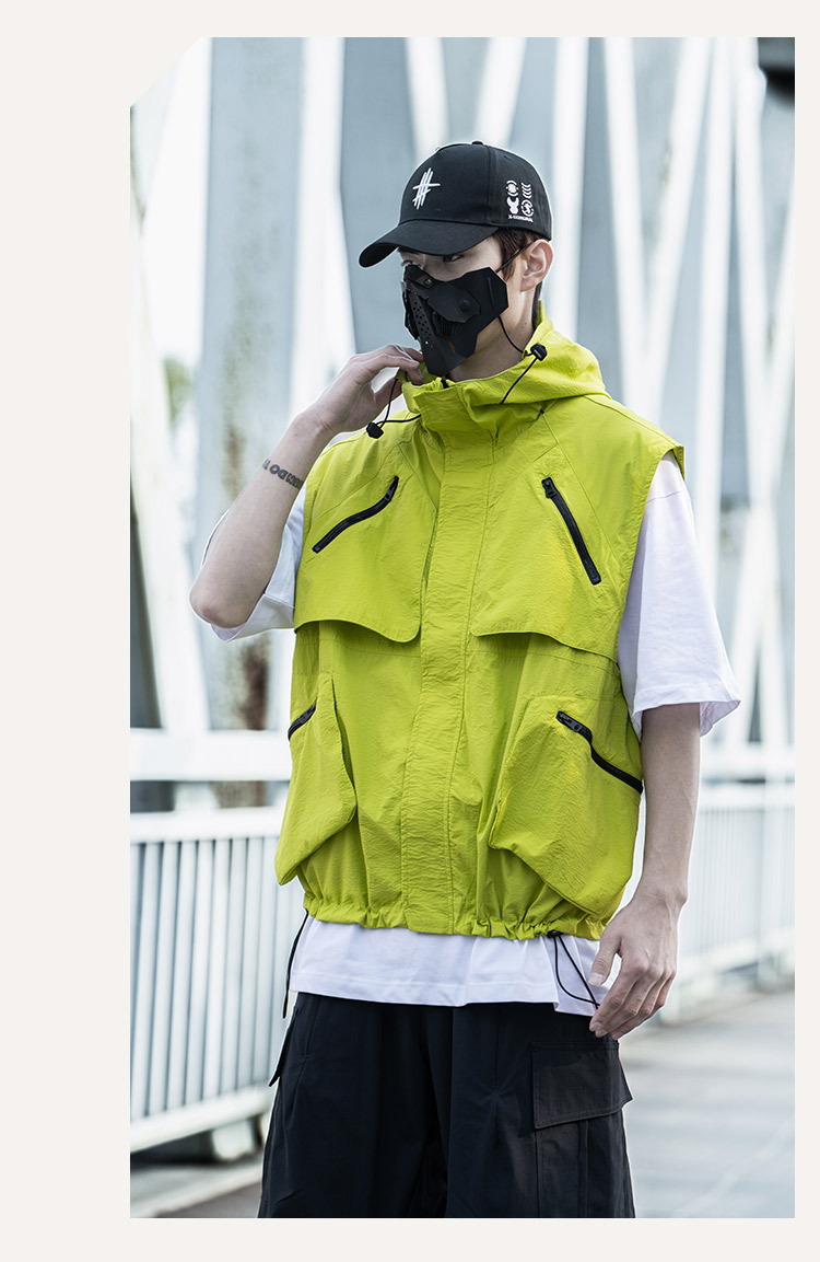 AOGZ戶外潮牌機能風連帽馬甲男女夏季新款多口袋工裝無袖坎肩外套