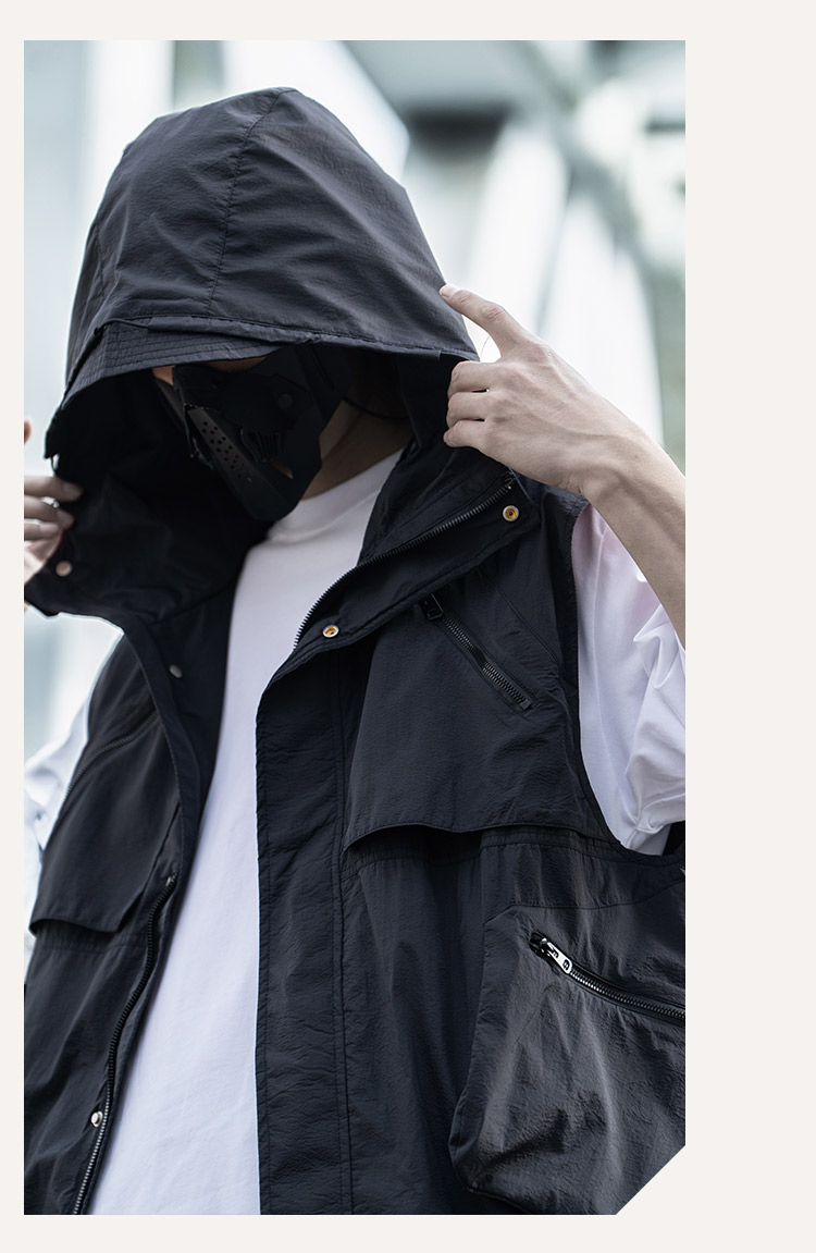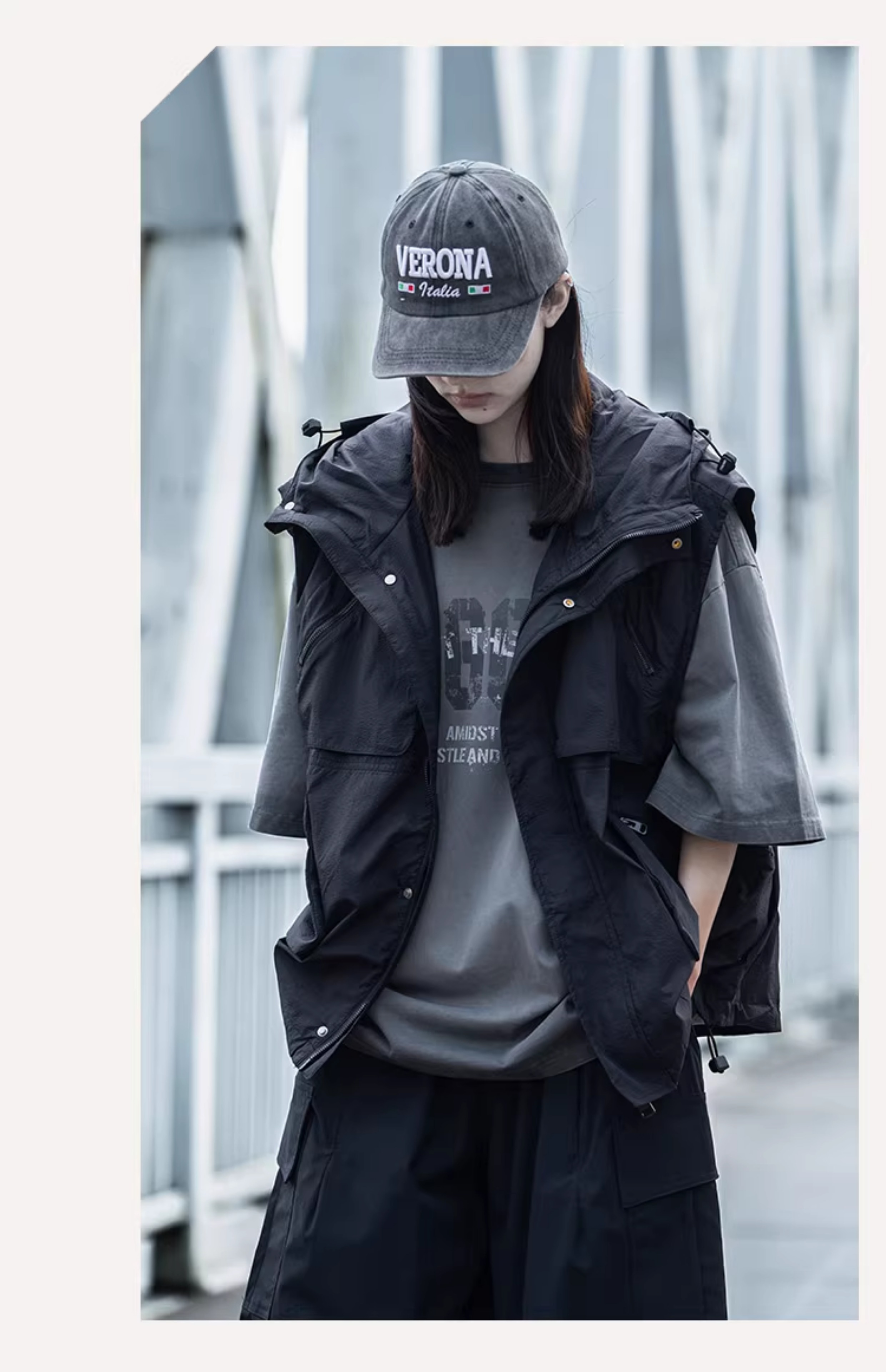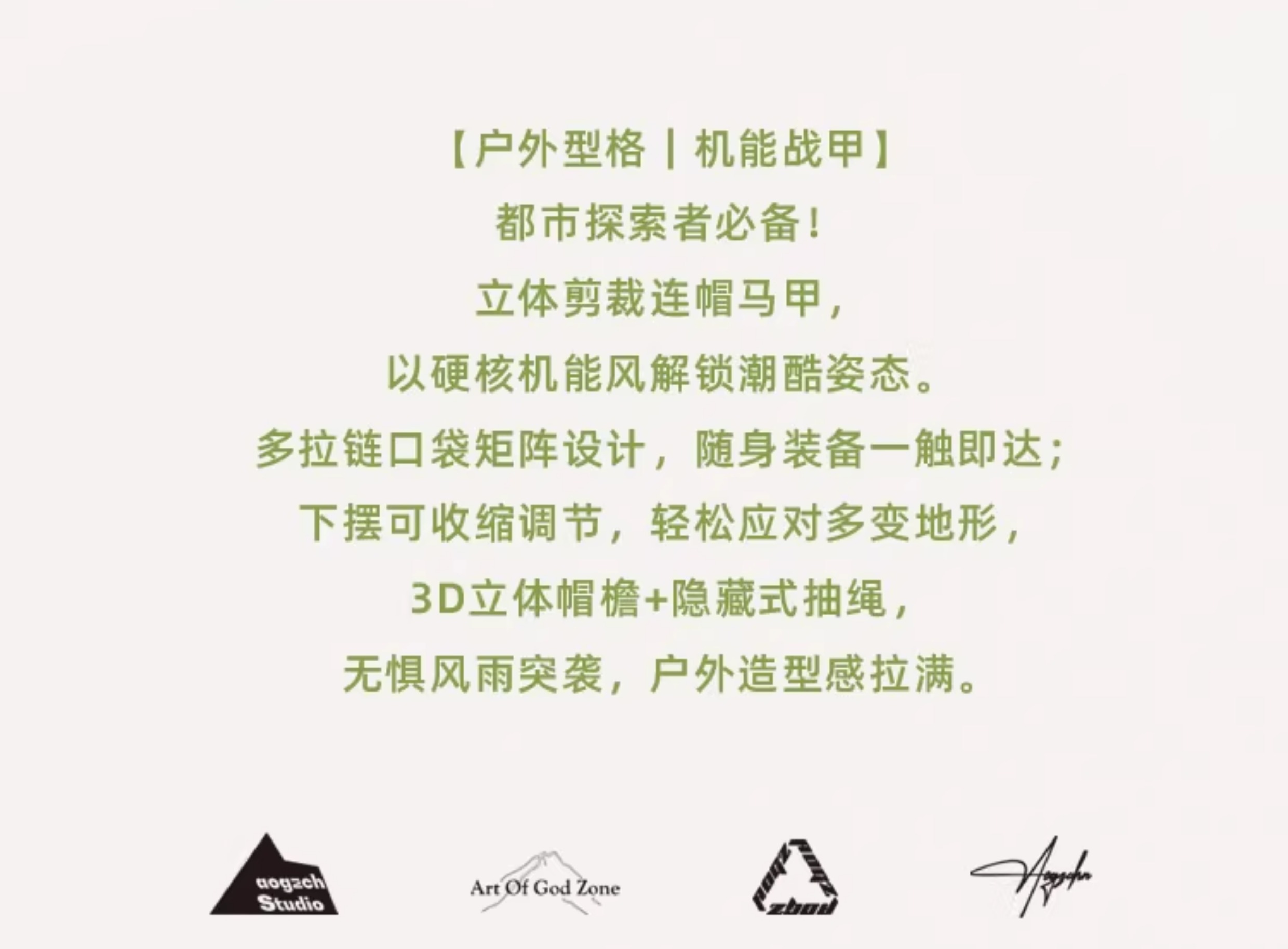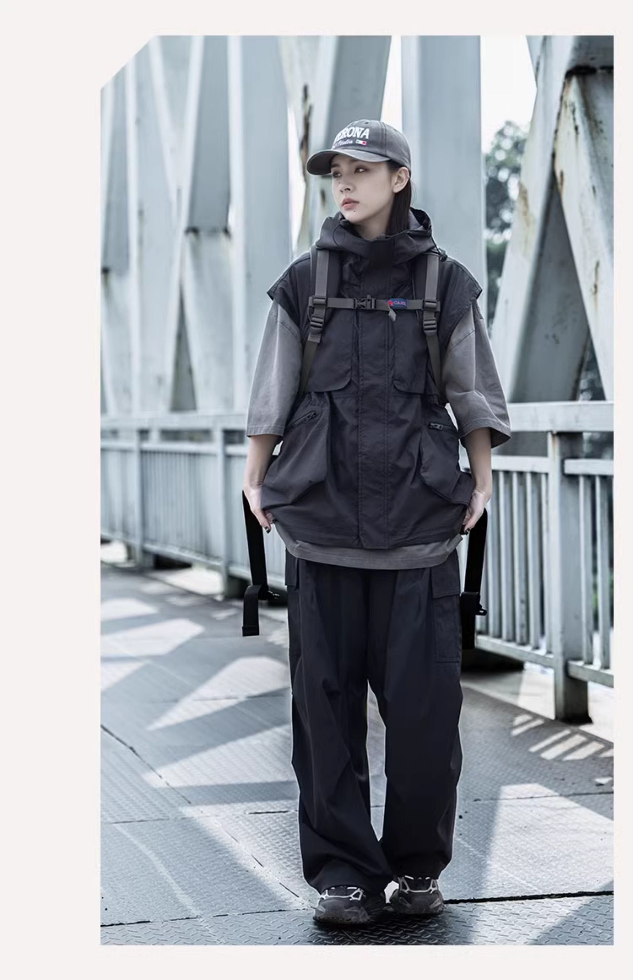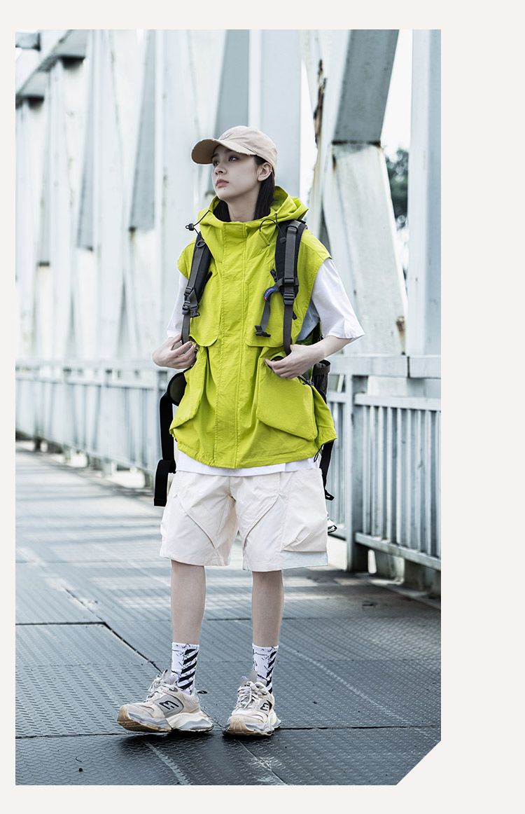 AOGZ戶外潮牌機能風連帽馬甲男女夏季新款多口袋工裝無袖坎肩外套