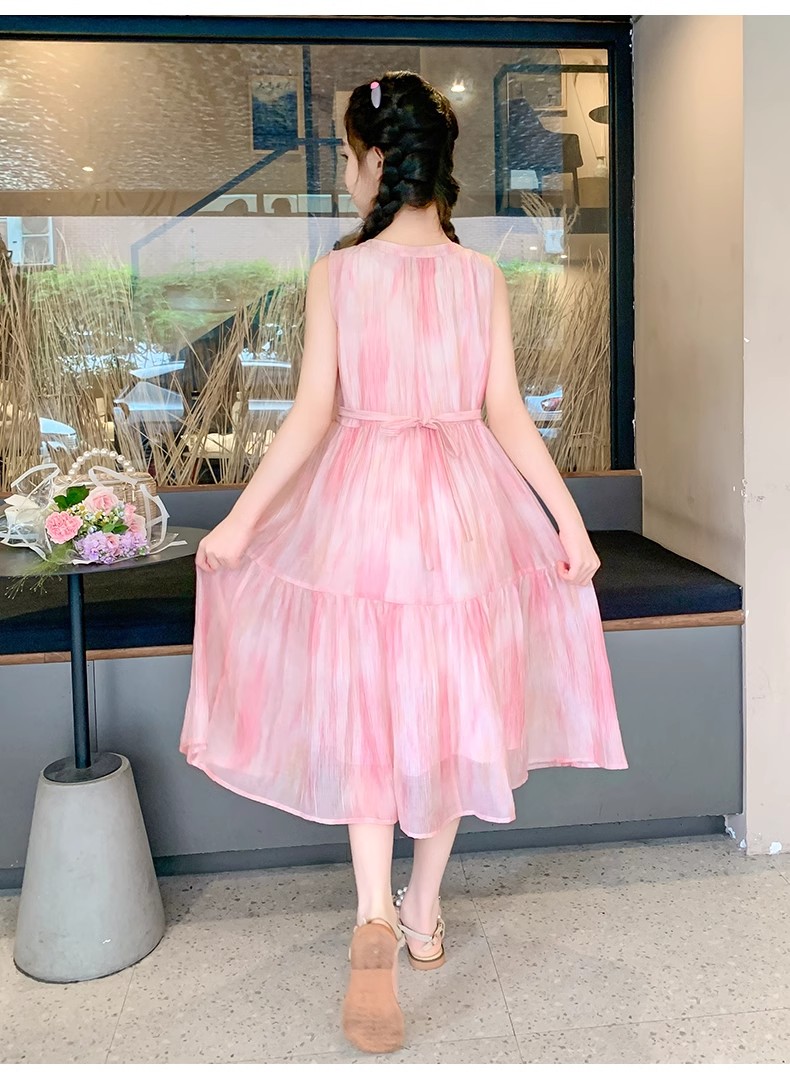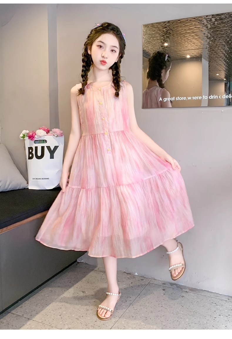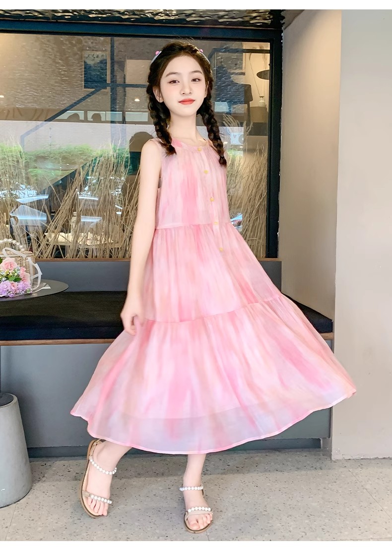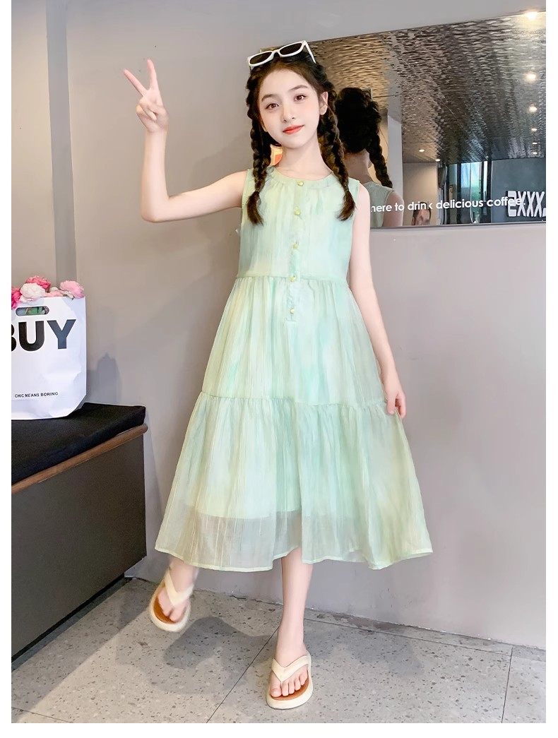 法國女童夏裝裙子2025新款童裝兒童夏天雪紡公主裙女大童夏連衣裙