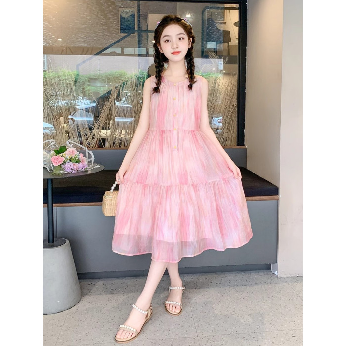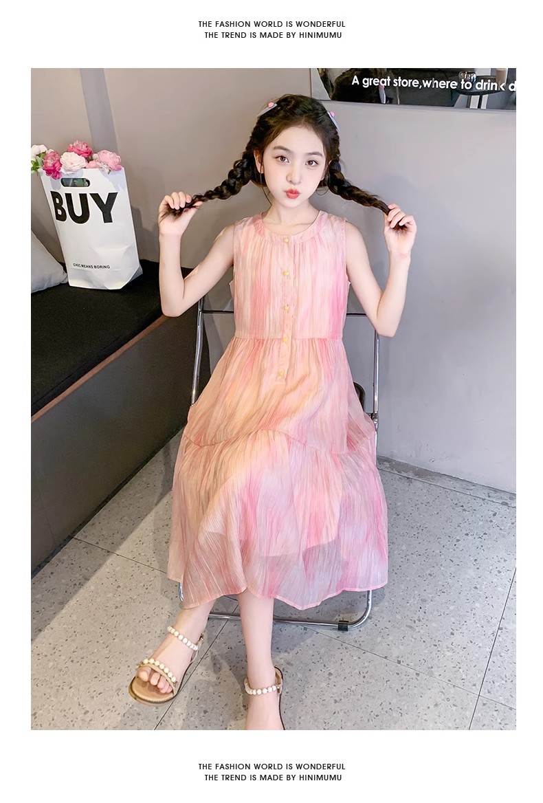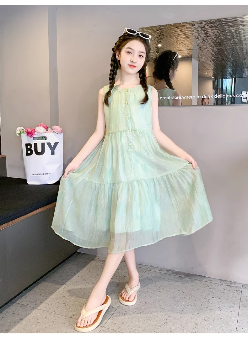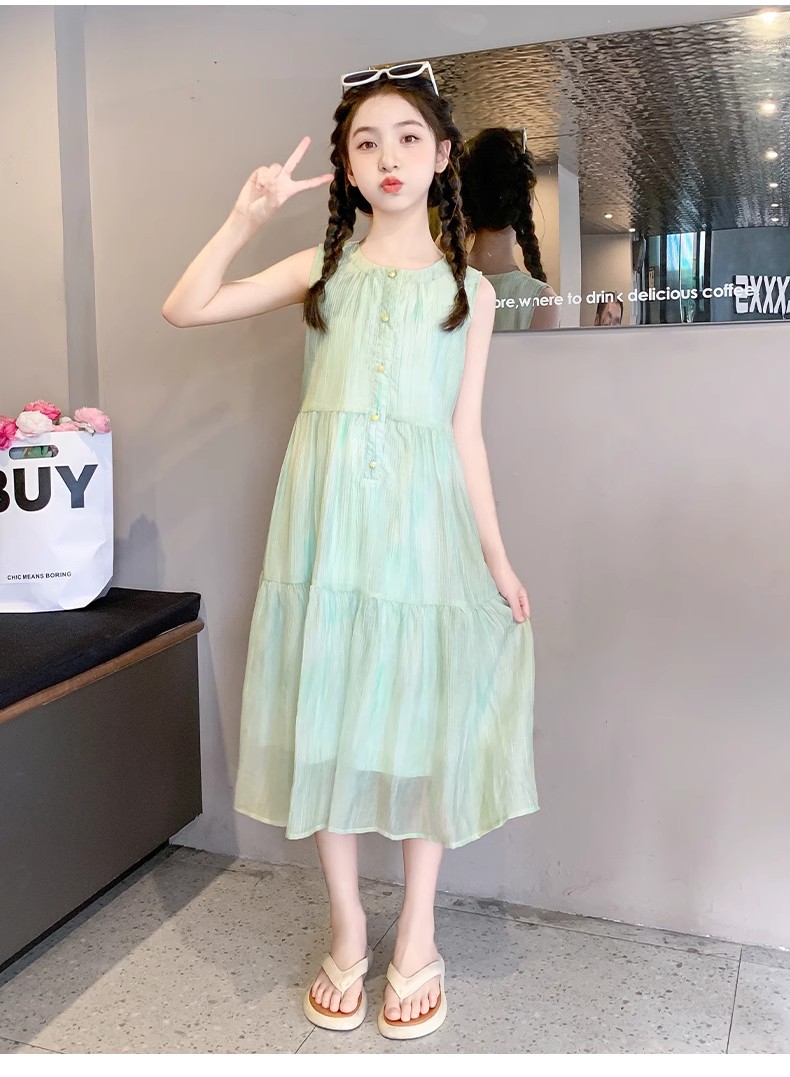 法國女童夏裝裙子2025新款童裝兒童夏天雪紡公主裙女大童夏連衣裙