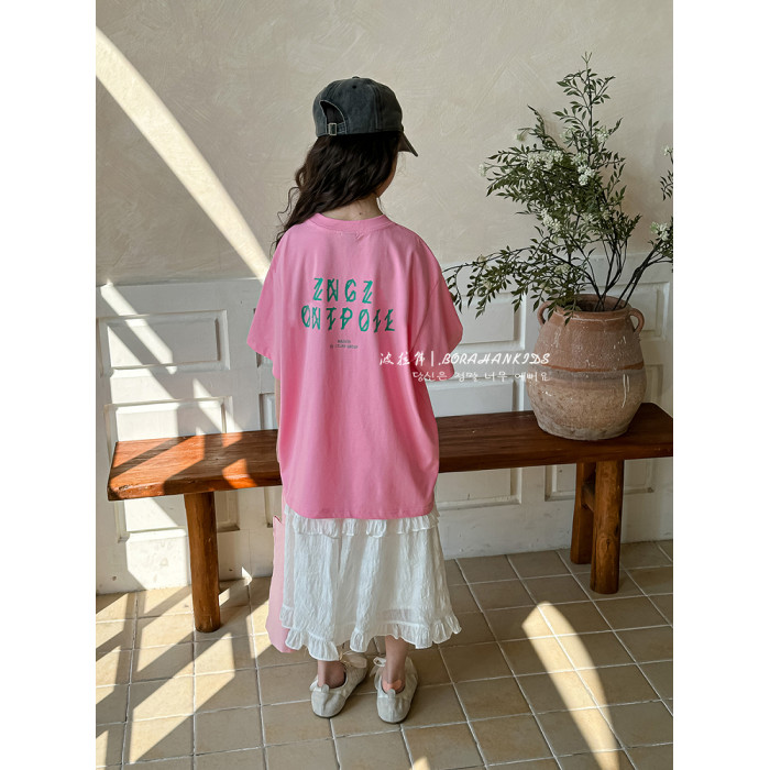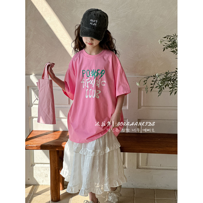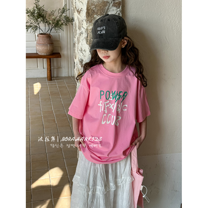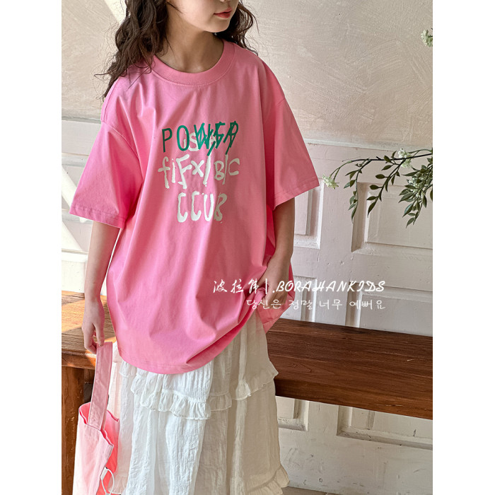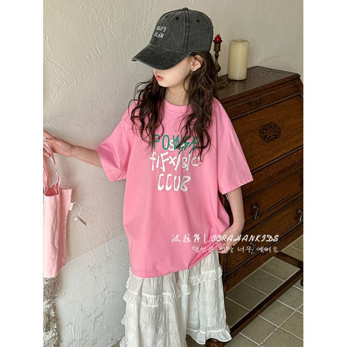 波拉韓童裝女童短袖夏季兒童2025新款寬松T恤中大童洋氣半袖t上衣