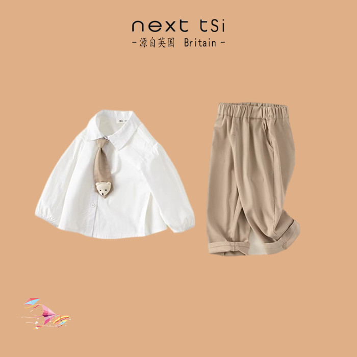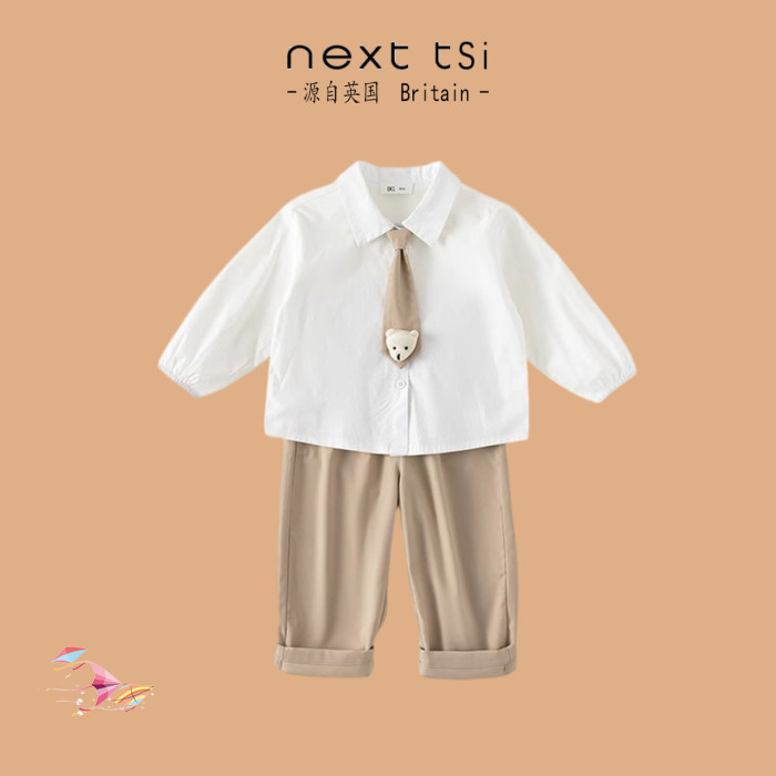 next tsi男童春秋套裝2025新款男寶紳士襯衫長褲休閒兩件套學院風