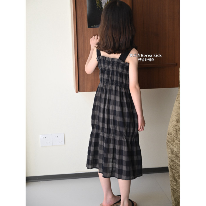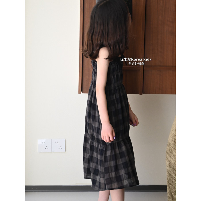 女童連衣裙2025新款夏季兒童洋氣高級格子背心裙子夏裝裙子吊帶裙