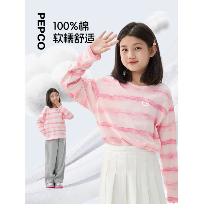 小豬班納女童長袖t恤純棉兒童條紋秋裝小女孩超好看打底衫上衣PC