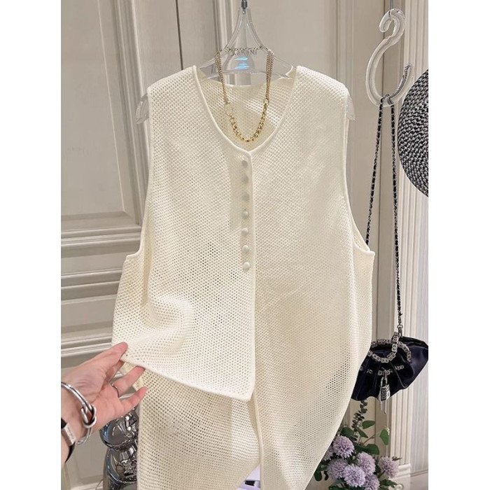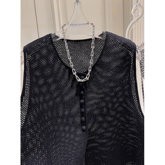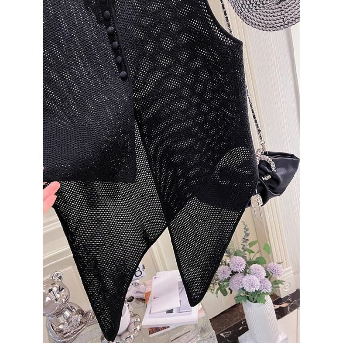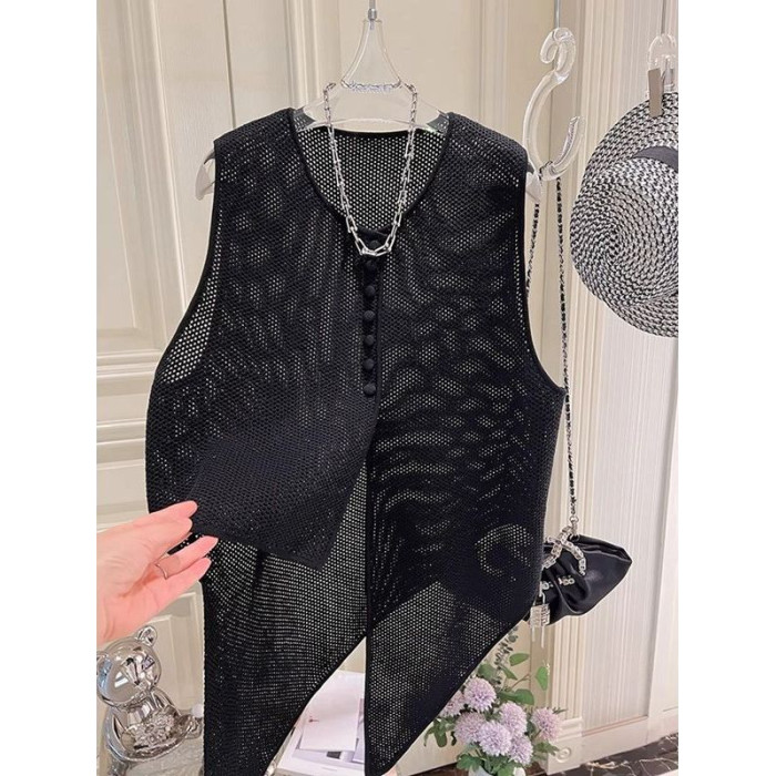 特大碼300斤不規則鏤空坎肩馬甲男女裝夏季寬松百搭薄款純色外套2