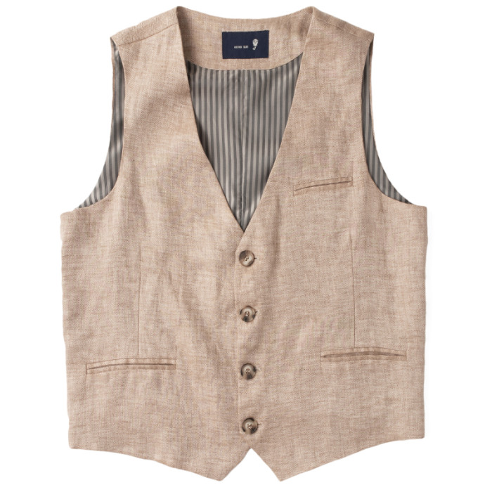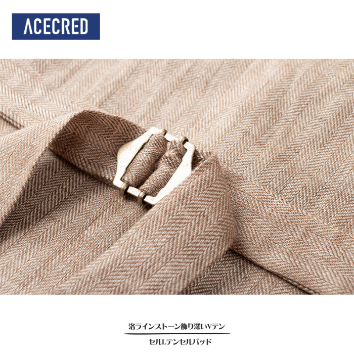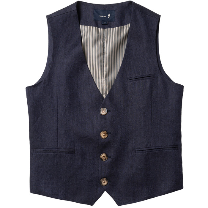 日系潮牌100%亞麻馬甲男秋裝外穿薄款寬松人字紋馬夾帥氣潮流坎肩