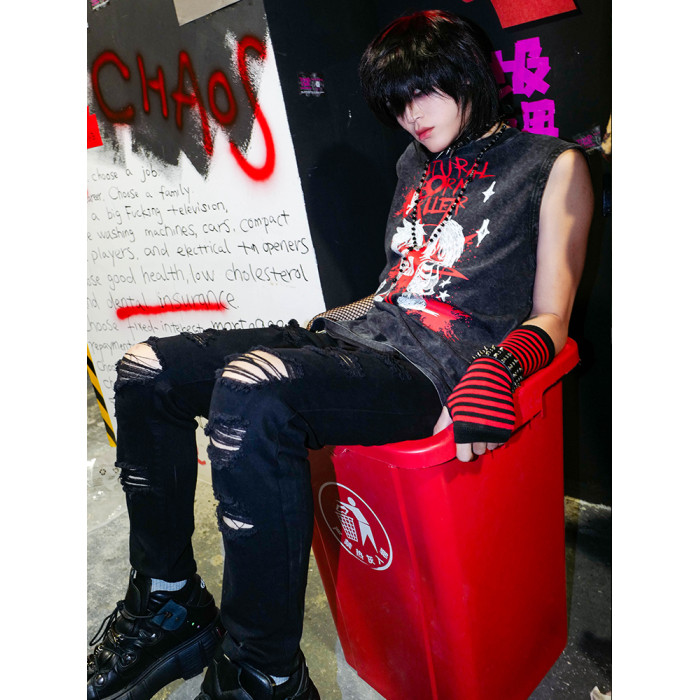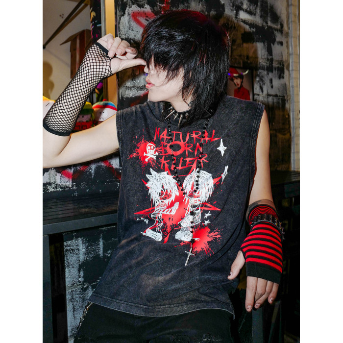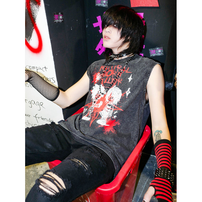 別閙BIZZCUT/emo之戀/千禧亞文化手繪龐克寬松做舊背心無袖T恤