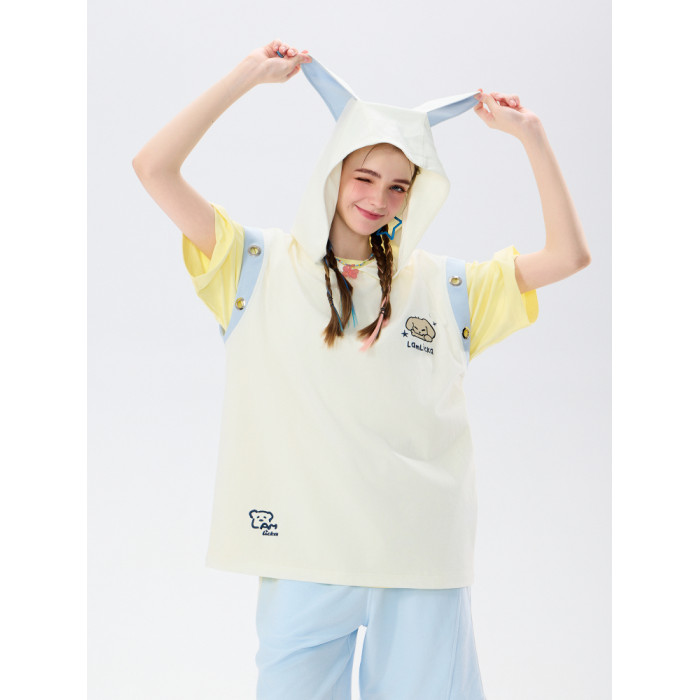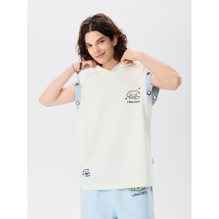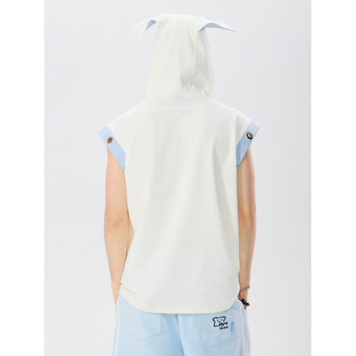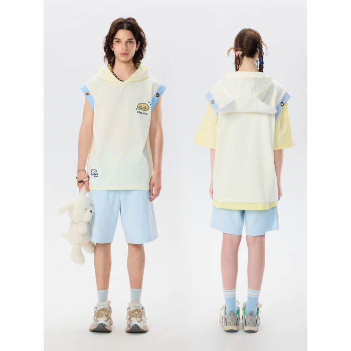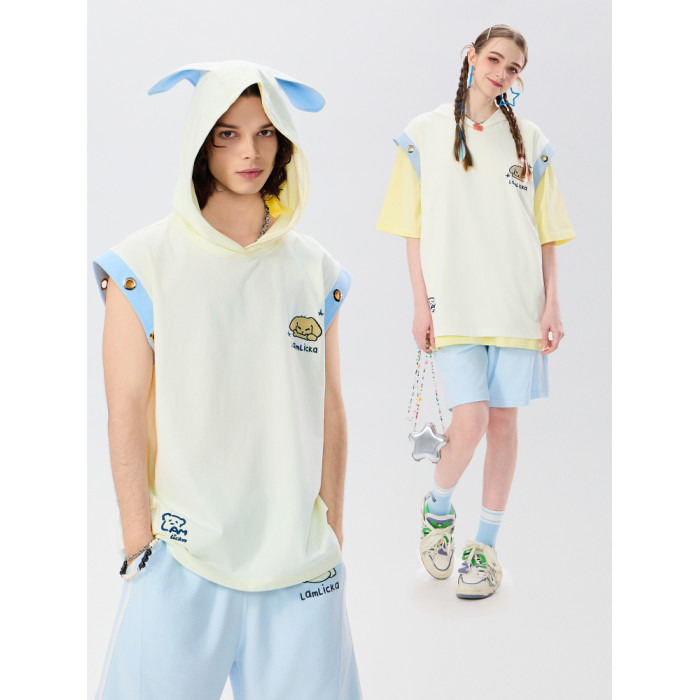 LAMLICKA立體耳朵坎肩背心男夏季外穿潮牌寬松設計感杏色無袖t恤