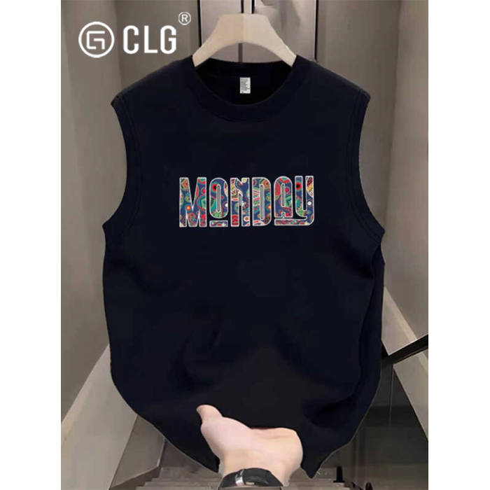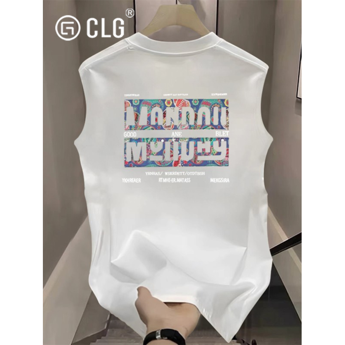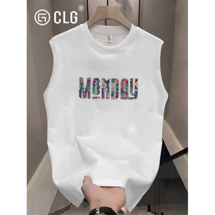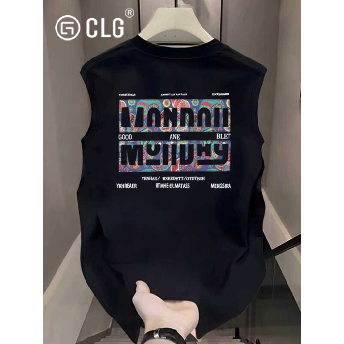 香港CLG潮牌美式男背心夏季字母印花運動無袖T恤坎肩重磅純棉上衣