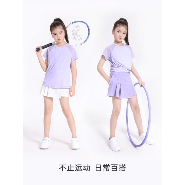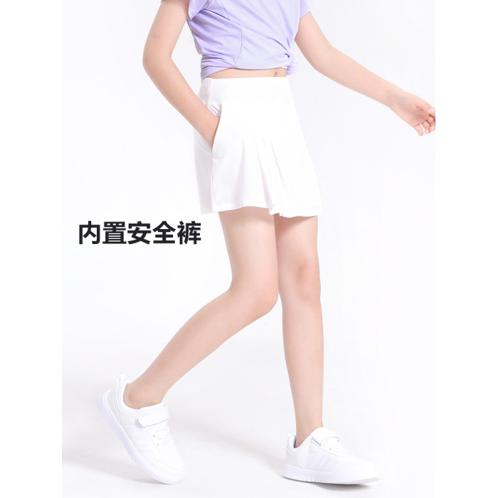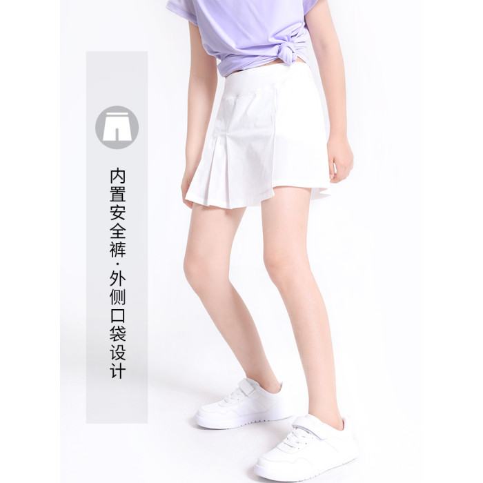 萌格格女童半身裙速乾網球裙兒童白色運動短裙內置安全褲百褶裙