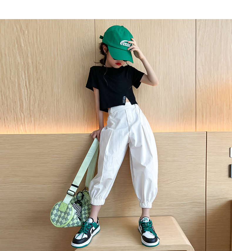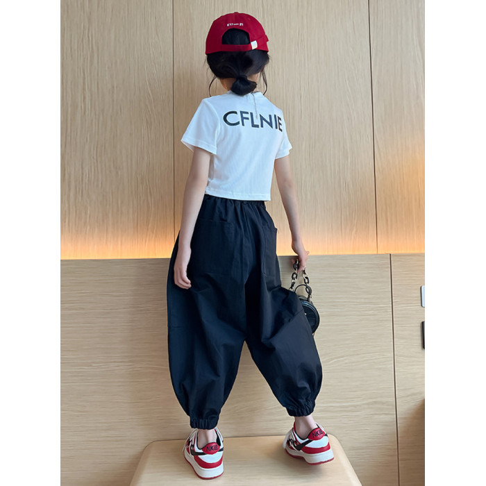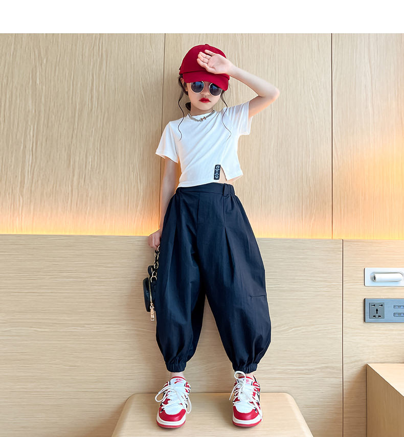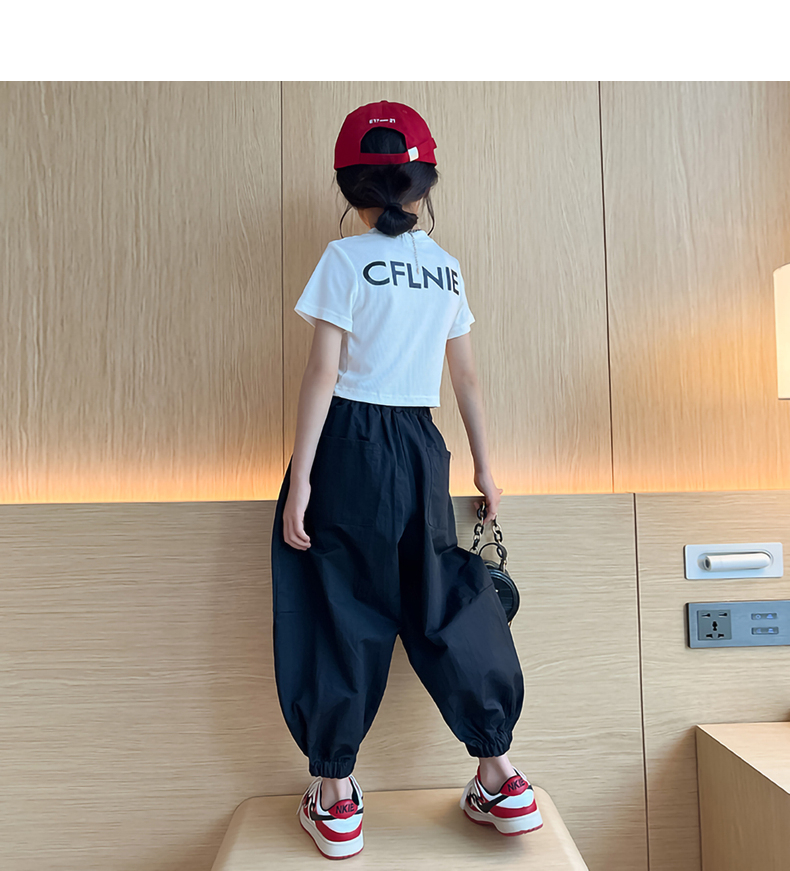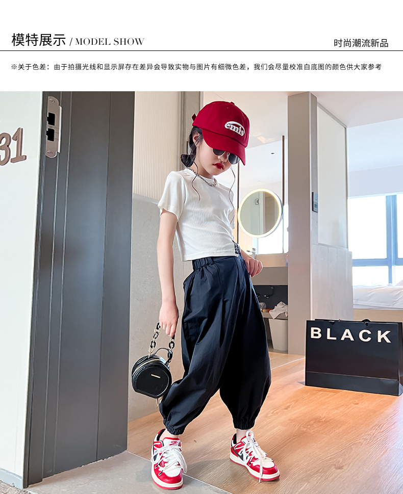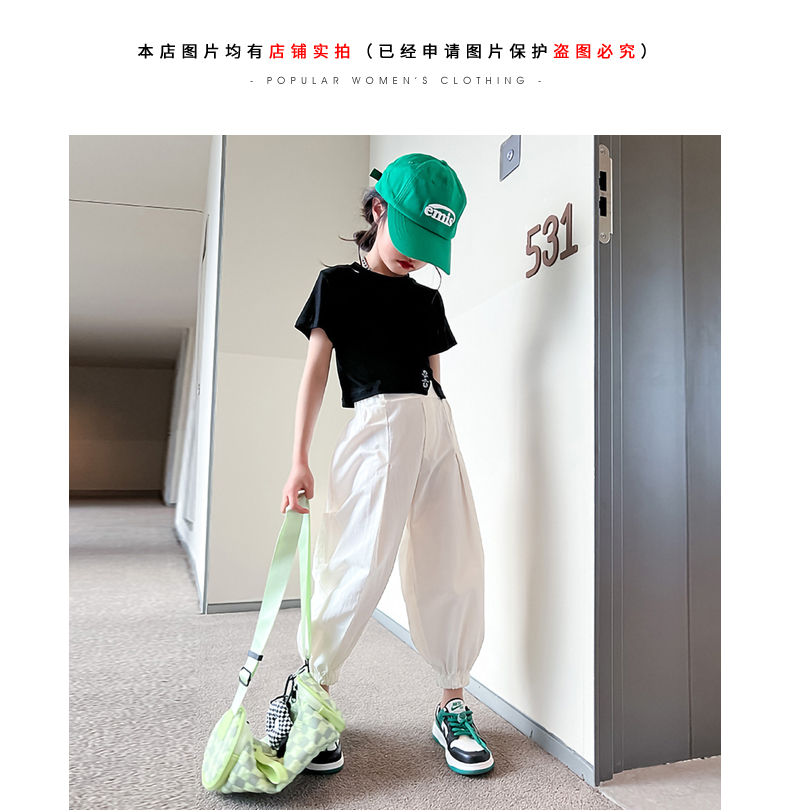 t血女童純棉夏裝2025新款中大童炸街兒童洋氣短袖女孩黑色上衣潮